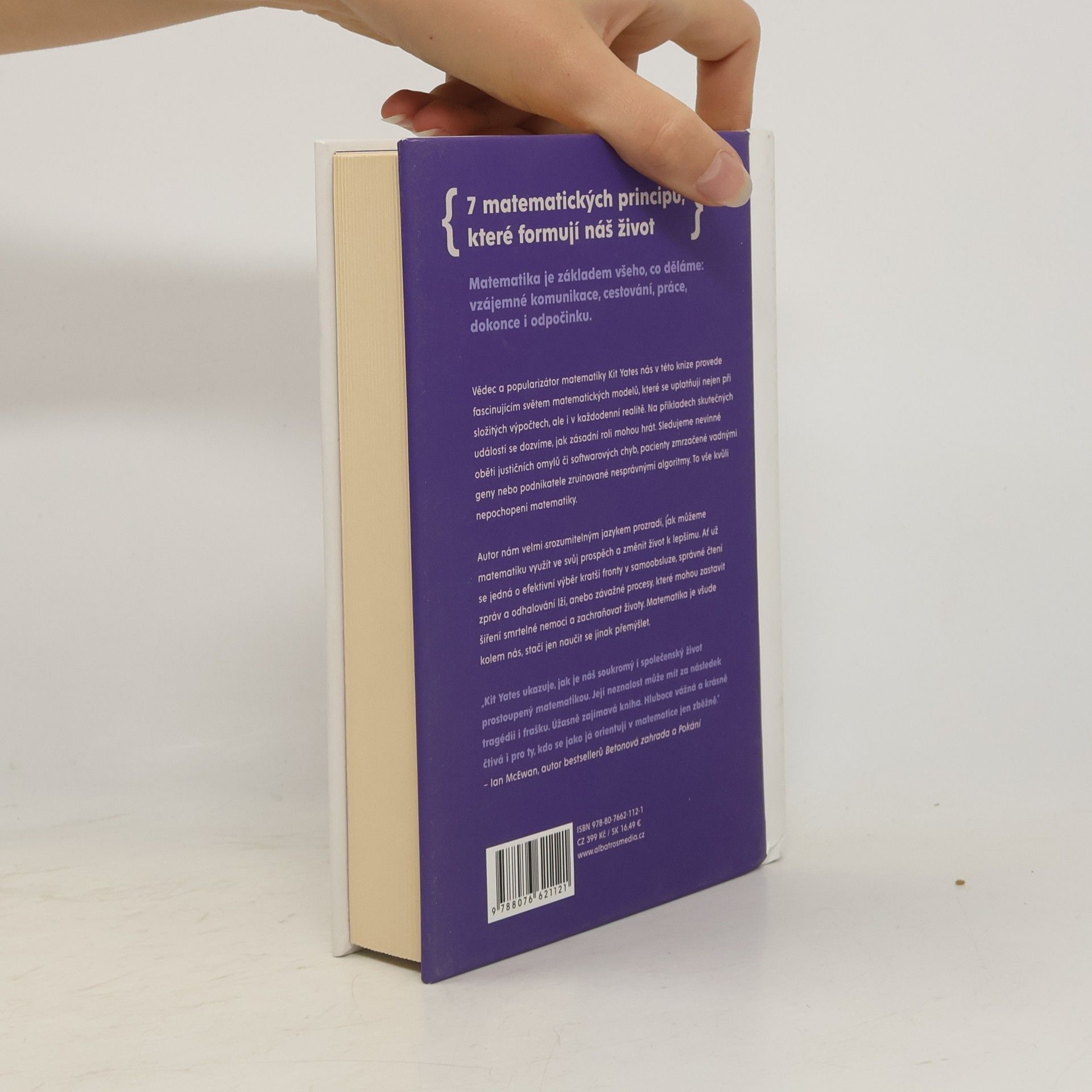 Matematika je všude kolem nás, stačí se jen naučit jinak přemýšlet. Matematika je základem všeho, co děláme. Od způsobu, jakým komunikujeme, jak cestujeme a pracujeme až po způsob, jak odpočíváme. Autor poutavě osvětluje, jaké matematické principy formují naše každodenní životy, a zkoumá jejich mnohdy zásadní roli na příkladech skutečných událostí. Sledujeme nevinné oběti justičních omylů či softwarových chyb, pacienty zmrzačené vadnými geny nebo podnikatele zruinované nesprávnými algoritmy – to vše kvůli nepochopení matematiky. Kit Yates nám v této knize velmi srozumitelným způsobem ukáže, jak můžeme matematiky využít v náš prospěch. Jak nám matematika může změnit život k lepšímu, jak se vyvarovat omylů, jak zachraňovat životy nebo jak číst zprávy a odhalovat lži. Matematika je všude kolem nás, stačí se jen naučit jinak přemýšlet.