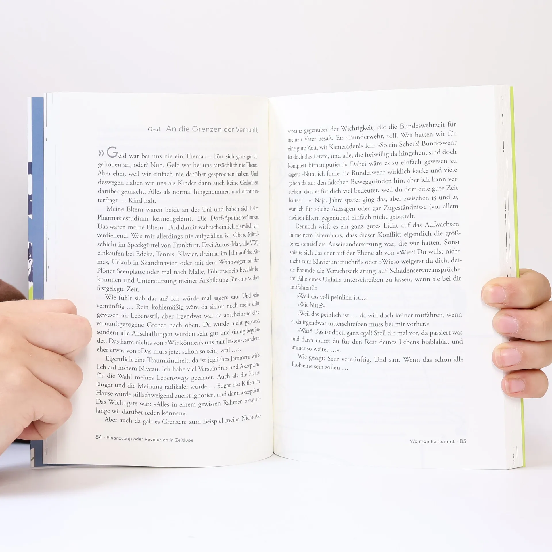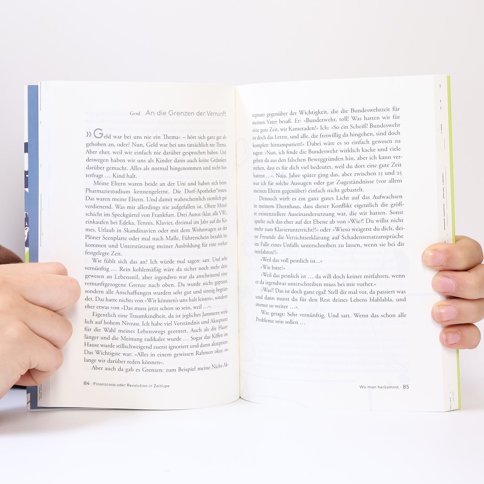 Das Buch stellt eine Gruppe von Menschen vor, die etwas anders machen als der Rest der Gesellschaft: Sie teilen ihr Geld, obwohl sie weder in derselben Stadt leben, noch durch familiäre Bande zusammengehalten werden. Mehrmals im Jahr kommen sie zusammen und regeln ihr finanzielles Auskommen der nächsten Monate. Dieses Modell heißt Finanzcoop. Hervorgegangen aus dem Experiment einer WG im Jahr 1998 ist das gemeinsame Bankkonto für die mittlerweile sieben Mitglieder zum Alltag geworden. Ihr regelmäßiger Austausch über Geld, materielle Werte und vor allem die eigenen Bedürfnisse hat sie zu Expert_innen gemacht. Dafür, was Geld in unserer Gesellschaft bedeutet, was es leistet, aber auch verunmöglicht. Und dafür, welche unentdeckten Freiräume eine andere Art von Ökonomie schaffen kann. In dieser Zwischenbilanz zu ihrem auf Lebenszeit angelegten Experiment geben sie Einblicke, was ihre Neuerfindung einer Solidargemeinschaft, die quer zu Familie und Staat steht, bedeutet: für Partner_innen, Eltern und Kinder, für ihre Einstellung zu Erwerbsarbeit und unbezahlten Tätigkeiten, Nachwuchsplanung, Alterssicherung. Dabei wird deutlich – diese Neuordnung der eigenen Verhältnisse ist gar nicht so radikal und doch auch das: eine Revolution in Zeitlupe.