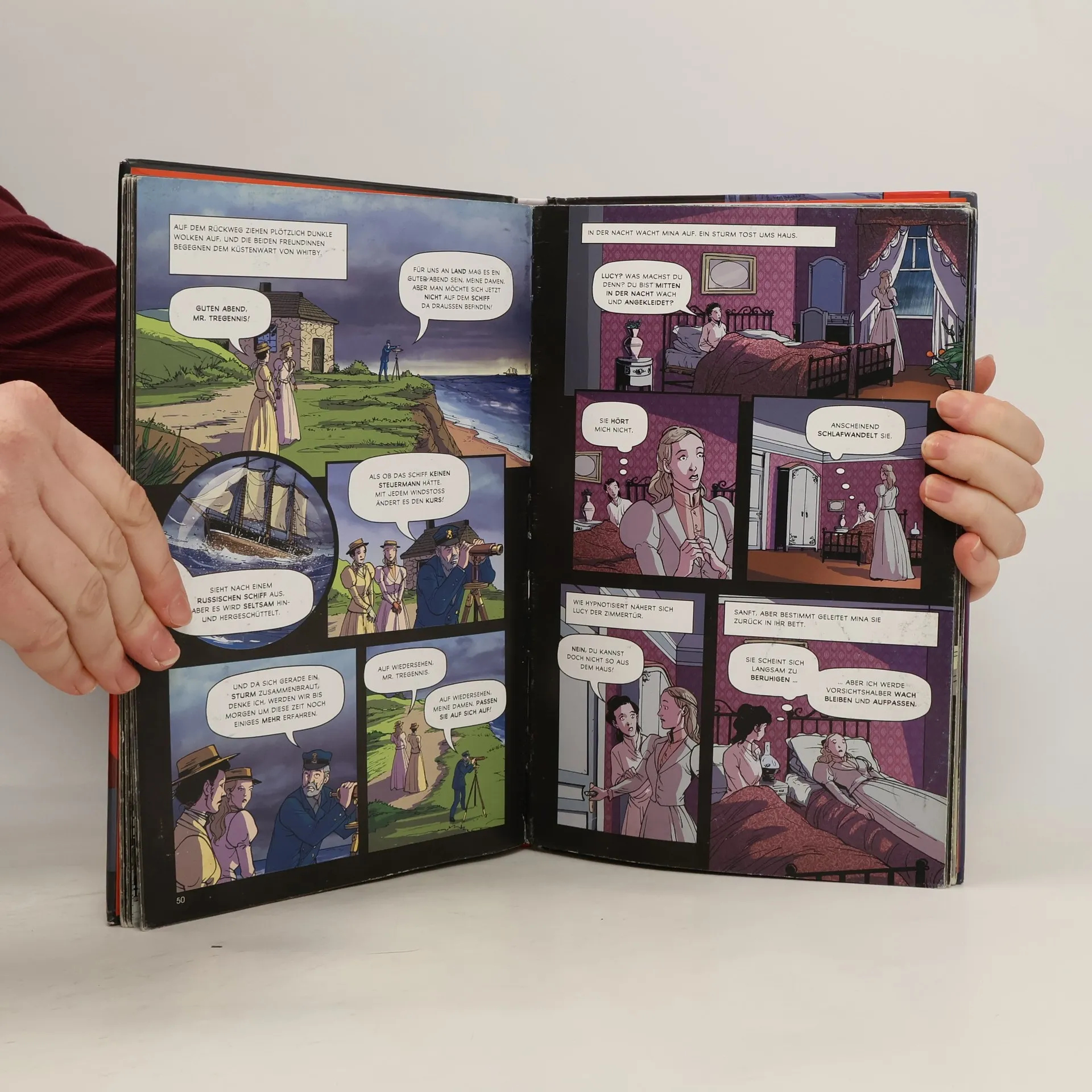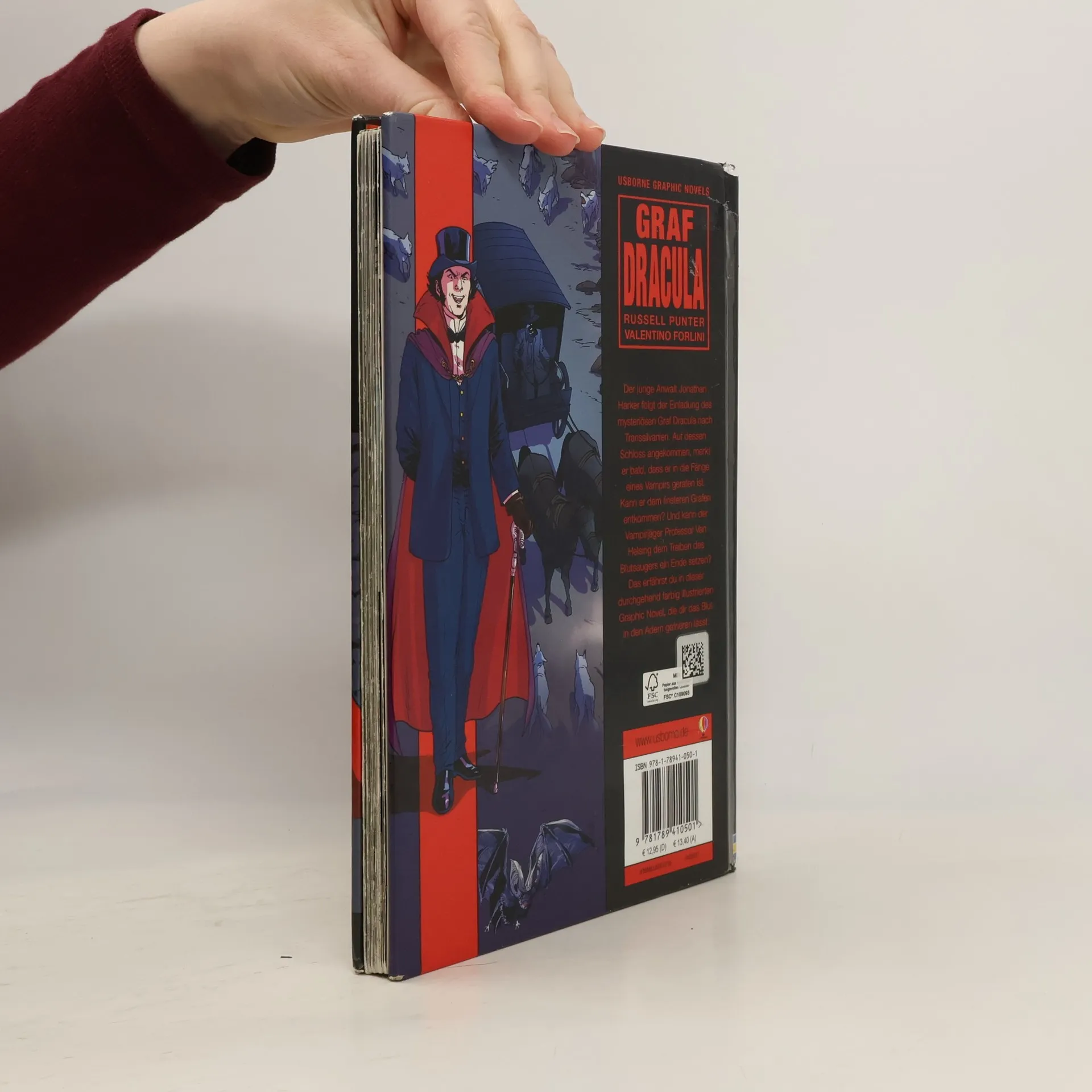 Der junge Anwalt Jonathan Harker folgt der Einladung des mysteriösen Graf Dracula nach Transsilvanien. Auf dessen Schloss angekommen, merkt er bald, dass er in die Fänge eines Vampirs geraten ist. Kann er dem finsteren Grafen entkommen? Und kann der Vampirjäger Professor Van Helsing dem Treiben des Blutsaugers ein Ende setzen? Das erfährst du in dieser durchgehend farbig illustrierten Graphic Novel, die dir das Blut in den Adern gefrieren lässt.