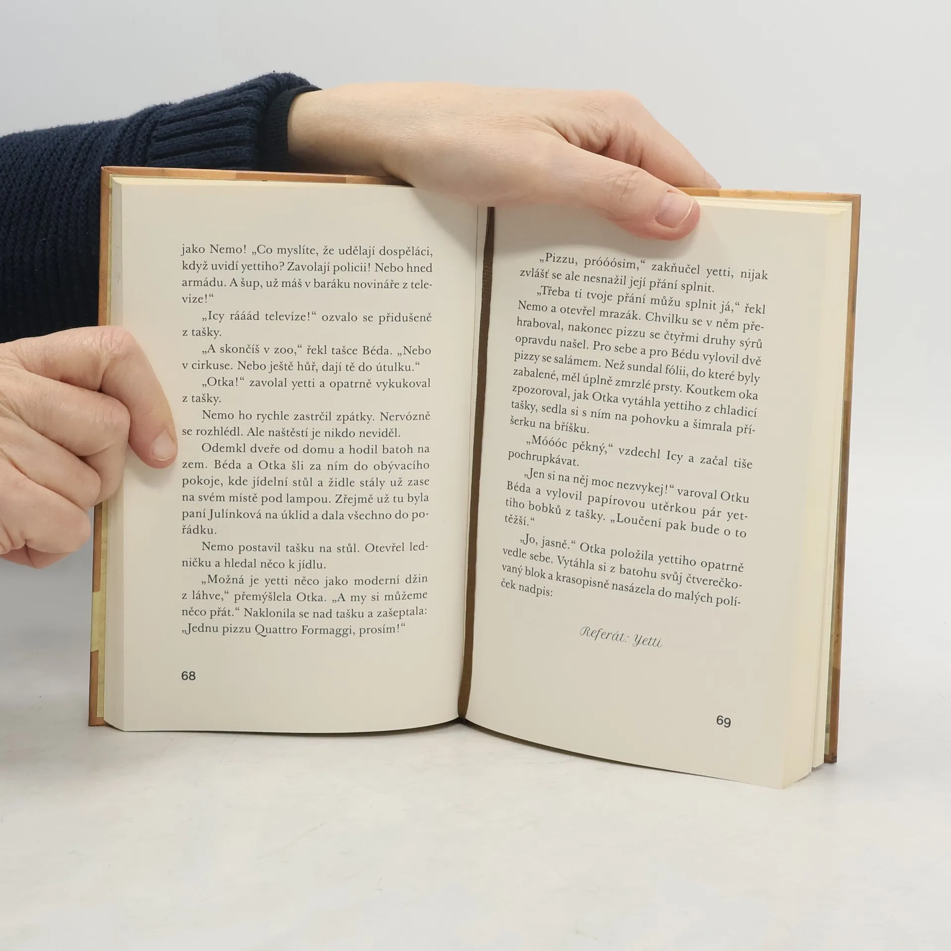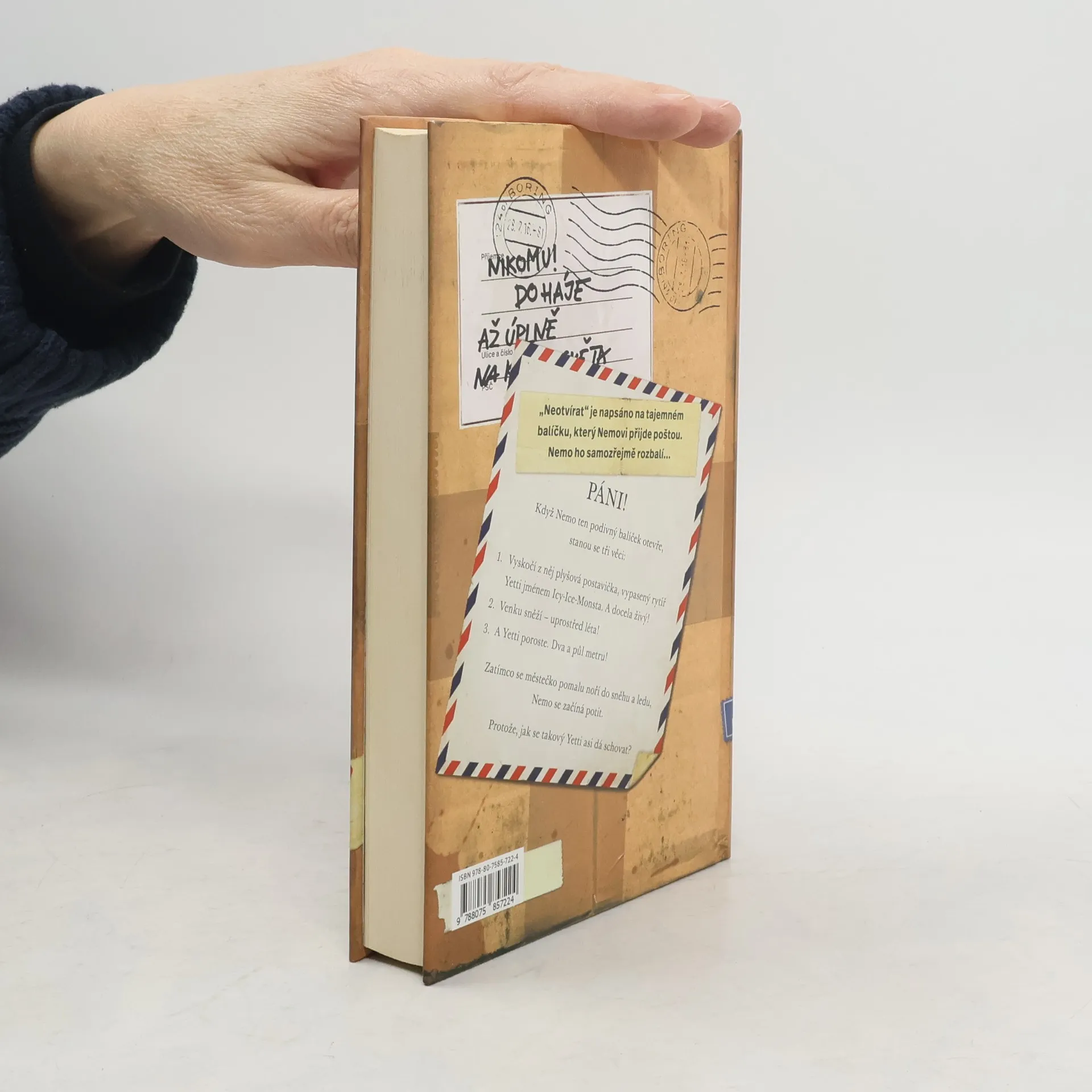 V Horním Suchopáru se téměř nic neděje. Nemo si myslí, že život v městečku je opravdu jedna velká nuda. Všichni jsou tu na sebe pořád hodní, pomáhají si a ještě k tomu je vedro a blíží se konec školního roku. Nemovi ale přijde poštou podivný balíček, na kterém je důrazně napsáno „Neotevírat!“ Nemo ho samozřejmě rozbalí ... Páni! Když tu podivnou zásilku otevře, stanou se tři věci: 1. Vyskočí z něj plyšová postavička, vypasený rytíř Yetti jménem Icy-Ice-Monsta. Zdá se, že je docela živý! 2. Venku sněží – uprostřed léta! 3. A Yetti bude velký. Dva a půl metru. Zatímco se městečko pomalu noří do sněhu a ledu, Nemo se začíná potit. Protože, jak se takový Yetti asi dá schovat? Nemo a jeho přátelé Béda a Otka mají co dělat, aby všechno zvládli. Podaří se jim to? Příběh tří přátel a velkého Yettiho zaujme napínavou zápletkou, spoustou dobrodružství a legrace. Vtipné vyprávění, ve kterém jde v prvé řadě o čas, pobaví i dospělé, třeba při čtení na doboru noc.