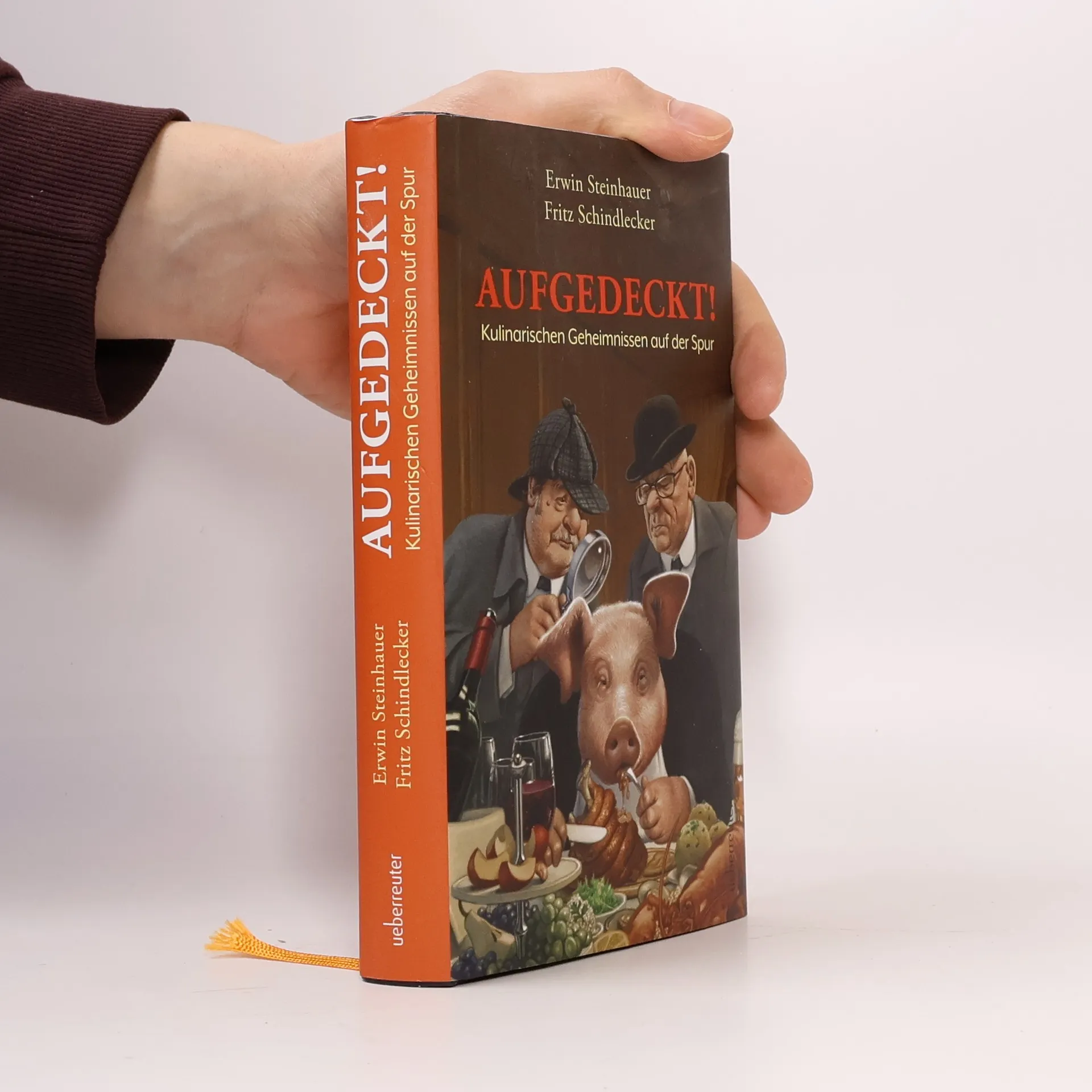 Coverzeichnung von Gerhard Haderer Würden Sie für ein Veggie-Linsengericht auf Ihr Erbe verzichten – wie der alttestamentarische Esau? Wollen Sie endlich wissen, – für wen das Carpaccio erfunden wurde oder – welches mehrgängige Menü der letzte österreichische Thronfolger wegen eines Butterbrotes versäumte? Mit den Bestsellern „Wir sind super!“ und „Fröhliche Weihnachterl“ haben die beiden Austrologen Erwin Steinhauer und Fritz Schindlecker heimische Seelenlandschaften erkundet. In ihrem neuen Buch „Aufgedeckt!“ geht es um das leibliche Wohl – um „Trinkgenuss und Tafelfreuden“. In witzigen Kurzgeschichten lässt das zu Gastrologen mutierte Autoren-Duo Jahrhunderte der Ess- und Trinkkultur Revue passieren. Dabei wird der literarische Spaß durch praxisnahe Kochrezepte ergänzt.