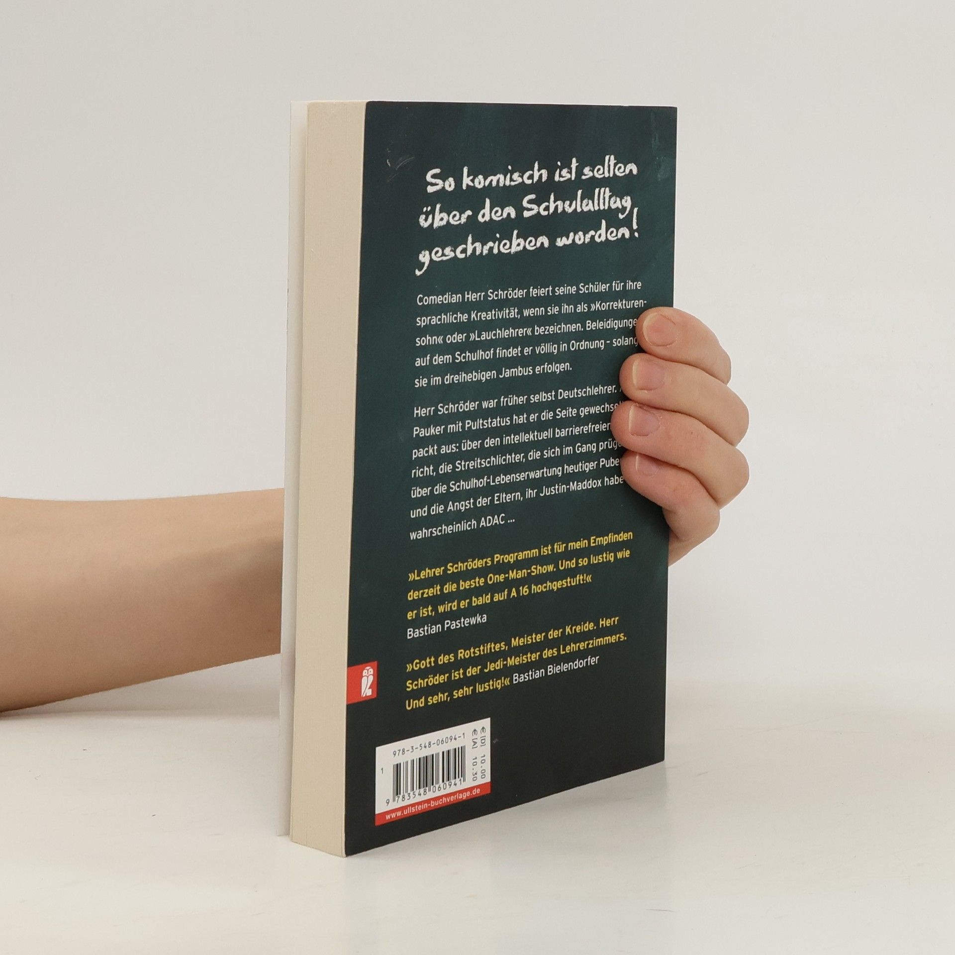 So komisch ist selten über den Schulalltag geschrieben worden! Comedian Herr Schröder feiert seine Schüler für ihre sprachliche Kreativität, wenn sie ihn als „Korrekturensohn“ oder „Lauchlehrer“ bezeichnen. Beleidigungen auf dem Schulhof findet er völlig in Ordnung – solange sie im dreihebigen Jambus erfolgen. Herr Schröder war früher selbst Deutschlehrer. Als Pauker mit Pultstatus hat er die Seite gewechselt und packt aus: über den intellektuell barrierefreien Unterricht, die Streitschlichter, die sich im Gang prügeln, über die Schulhof-Lebenserwartung heutiger Pubertiere und die Angst der Eltern, ihr Justin-Maddox habe wahrscheinlich ADAC …