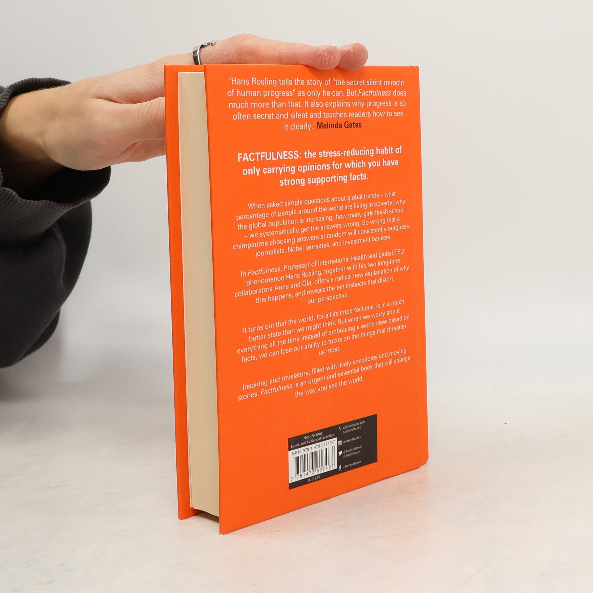 Factfulness: The stress-reducing habit of only carrying opinions for which you have strong supporting facts. When asked simple questions about global trends - why the world's population is increasing; how many young women go to school; how many of us live in poverty - we systematically get the answers wrong. So wrong that a chimpanzee choosing answers at random will consistently outguess journalists, Nobel laureates, and investment bankers. In Factfulness, Professor of International Health and a man who can make data sing, Hans Rosling, together with his two long-time collaborators Anna and Ola, offers a radical new explanation of why this happens, and reveals the ten instincts that distort our perspective. It turns out that the world, for all its imperfections, is in a much better state than we might think. But when we worry about everything all the time instead of embracing a worldview based on facts, we can lose our ability to focus on the things that threaten us most. Inspiring and revelatory, filled with lively anecdotes and moving stories, Factfulness is an urgent and essential book that will change the way you see the world