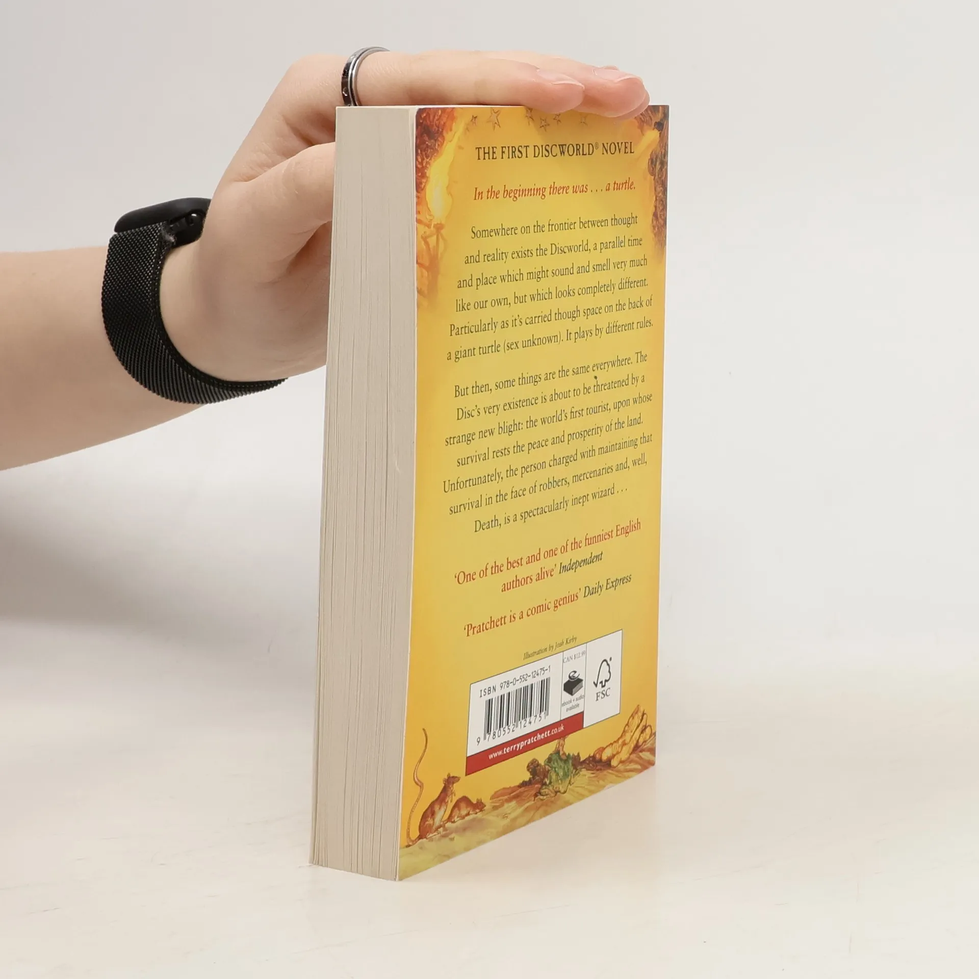 On a world supported on the back of a giant turtle (sex unknown), a gleeful, explosive, wickedly eccentric expedition sets out. There's an avaricious buy inept wizard, a naïve tourist whose luggage moves on hundreds of dear little legs, dragons who only exist ifyou believe in them, and of course THE EDGE of the planet...