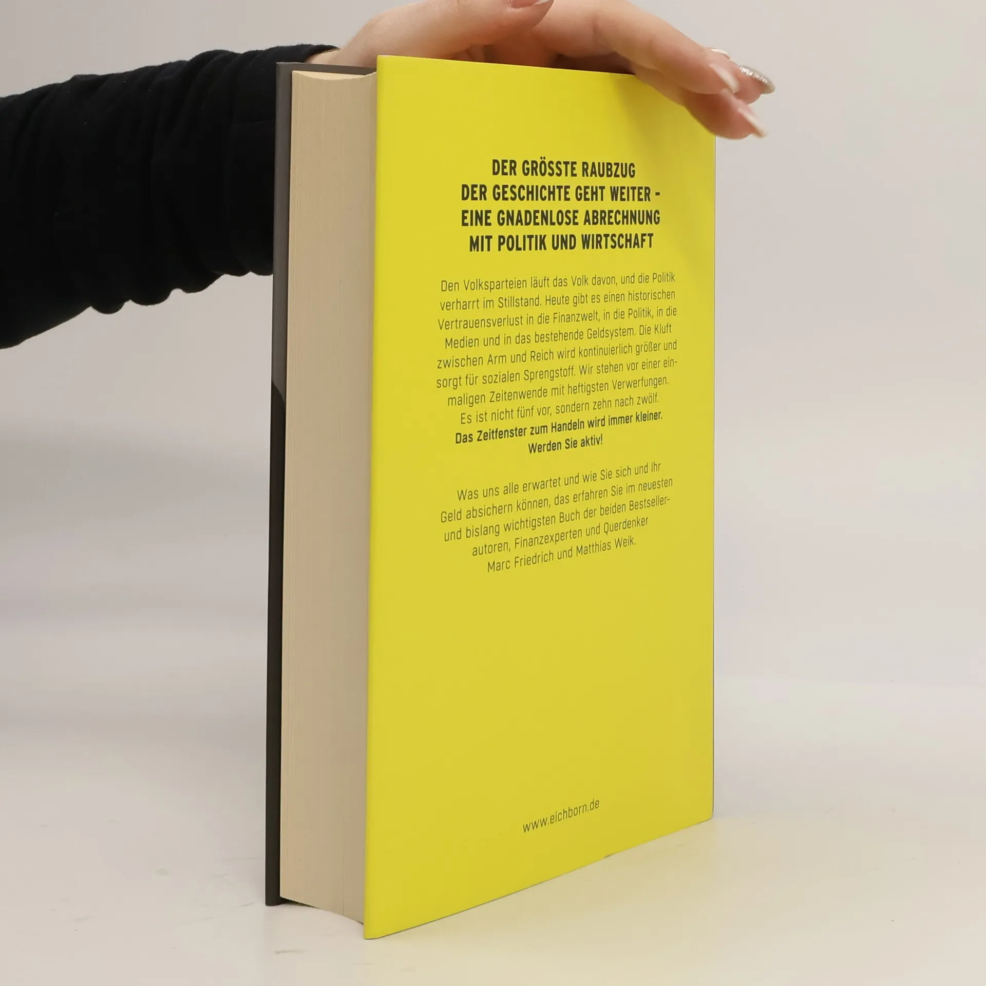 Die Finanzkrise 2008 hat das Fundament unseres Finanzsystems erschüttert und ihre Auswirkungen sind bis heute spürbar. Die massiven Rettungsaktionen der EZB und das historische Experiment mit Nullzinsen enteignen Sparer und Kleinanleger, während eine hohe Steuerlast der Mittelschicht den finanziellen Spielraum nimmt. Zudem wird über Enteignungen nachgedacht, die bald Realität werden könnten. Das Vertrauen in Finanzwelt, Politik und Medien ist seit 2008 drastisch gesunken, und die Kluft zwischen Arm und Reich wächst, was soziale Spannungen verstärkt. Wir stehen vor einer entscheidenden Wende mit enormen Verwerfungen. Das Handlungsfenster schließt sich rasch. Die Bestsellerautoren und Finanzexperten Marc Friedrich und Matthias Weik bieten in ihrem neuesten Werk aktuelle Analysen und scharfe Kritik an den starren Eliten in Wirtschaft und Politik sowie radikale Lösungsvorschläge. Sie zeigen auf, welche Herausforderungen Bürger, Steuerzahler, Sparer und Eigentümer in naher Zukunft erwarten, wenn die Verantwortlichen an ihren gescheiterten Strategien festhalten. Zudem erklären sie verständlich, wie wir unser Geld jetzt schützen können. Seien Sie aktiv und bereiten Sie sich vor!