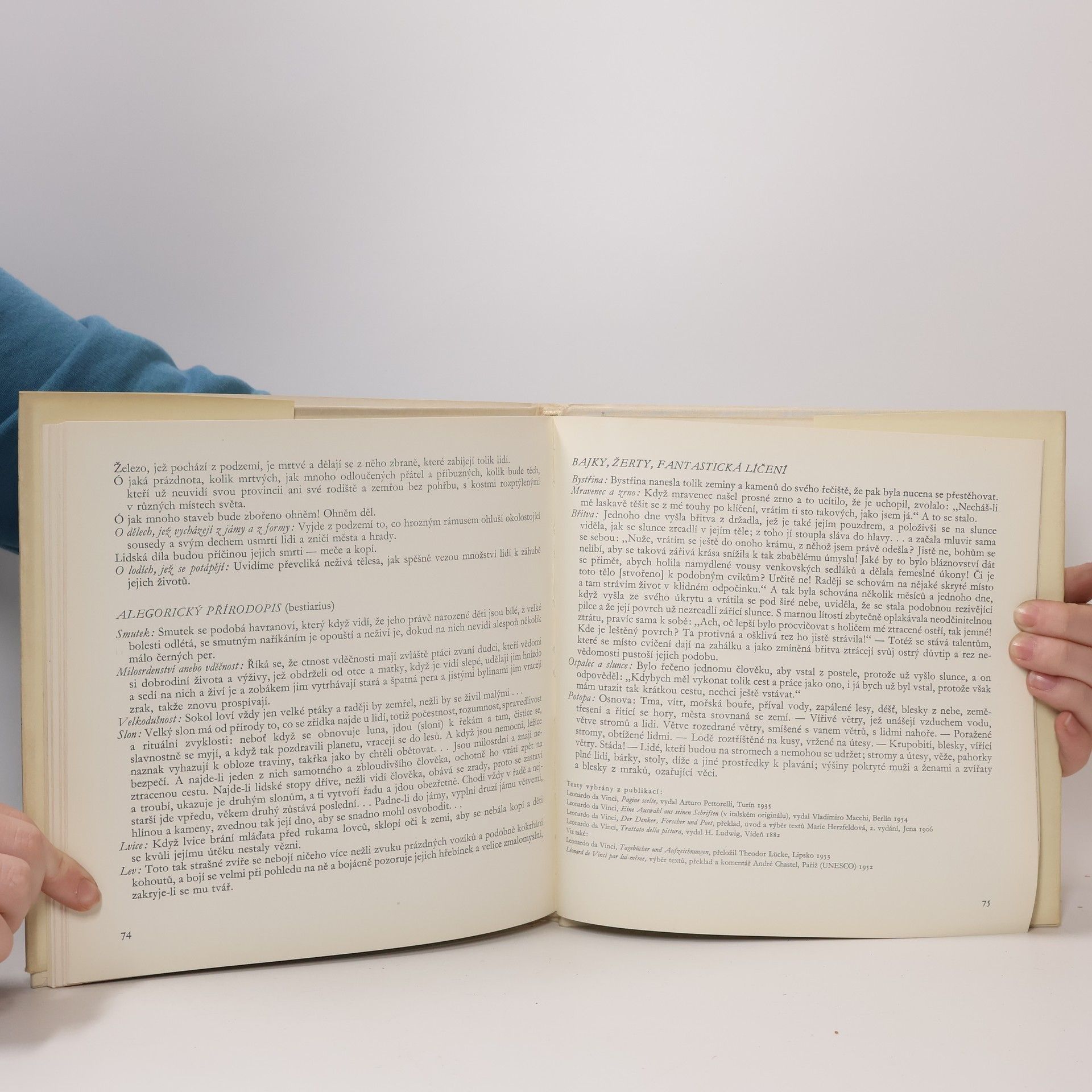Kniha má 47 reprodukcí, z toho 38 barevných. Citáty z Leonardových textů vybrala a přeložila Jarmila Krčálová, která také sestavila obrazovou část