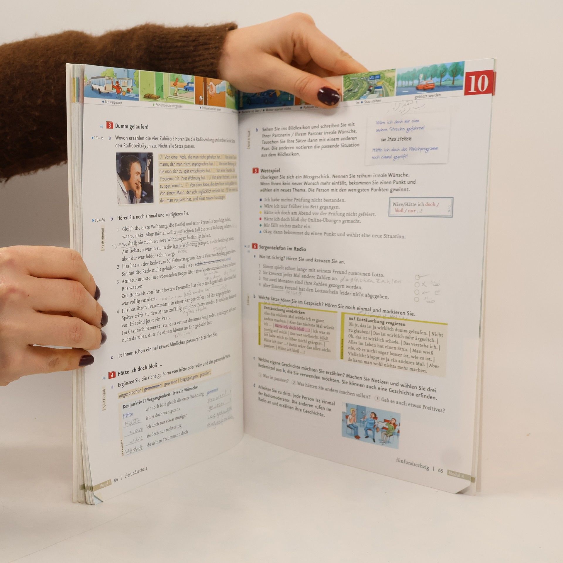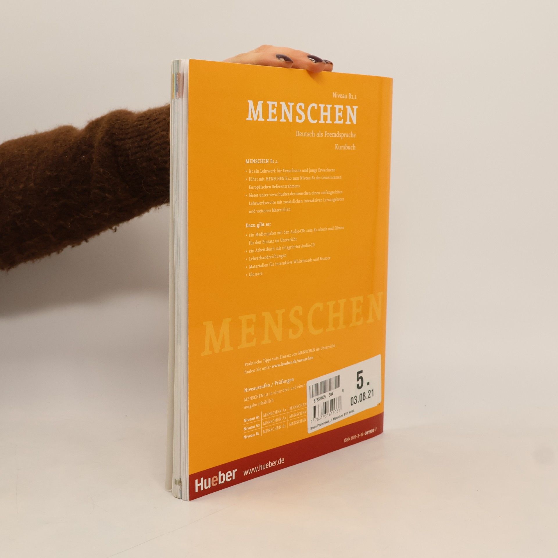 Zielniveau B1 Kursbuch mit Audios online Vollband Niveau B1 - modularer Aufbau: jedes Modul besteht aus drei kurzen Lektionen und vier zusätzlichen Modul-Plus-Seiten - die Lektionen umfassen je vier Seiten und folgen einem transparenten, wiederkehrenden Aufbau: - jede Lektion beginnt mit einer interessanten Einstiegssituation – meist mit einem Hörtext kombiniert –, die in die Thematik der Lektion einführt und Emotionen und Interesse weckt - auf der folgenden Doppelseite werden, ausgehend von der Einstiegssituation, die neuen Wortfelder, die Strukturen und Redemittel anhand von authentischen Lese- und Hörtexten eingeführt und geübt - das neue Wortfeld der Lektion wird in der Kopfzeile prominent und gut memorierbar als Bildlexikon präsentiert - Abschlussseite: Schreibtraining, Sprechtraining oder Mini-Projekte greifen den Lektionsstoff auf und die Strukturen und wichtigen Wendungen werden übersichtlich zusammengefasst - die vier zusätzlichen Modul-Plus-Seiten bieten weitere interessante Informationen: - Lesemagazin: Magazinseite mit vielfältigen zusätzlichen Lesetexten - Film-Stationen: Aufgaben zu den Filmsequenzen - Projekt Landeskunde: Anregung für ein Projekt - Ausklang: Lieder mit Tipps zum kreativen Einsatz im Unterricht - Die Audiodateien stehen als Download im Lehrwerkservice zur Verfügung oder können direkt in der kostenlosen AR-App abgespielt werden.