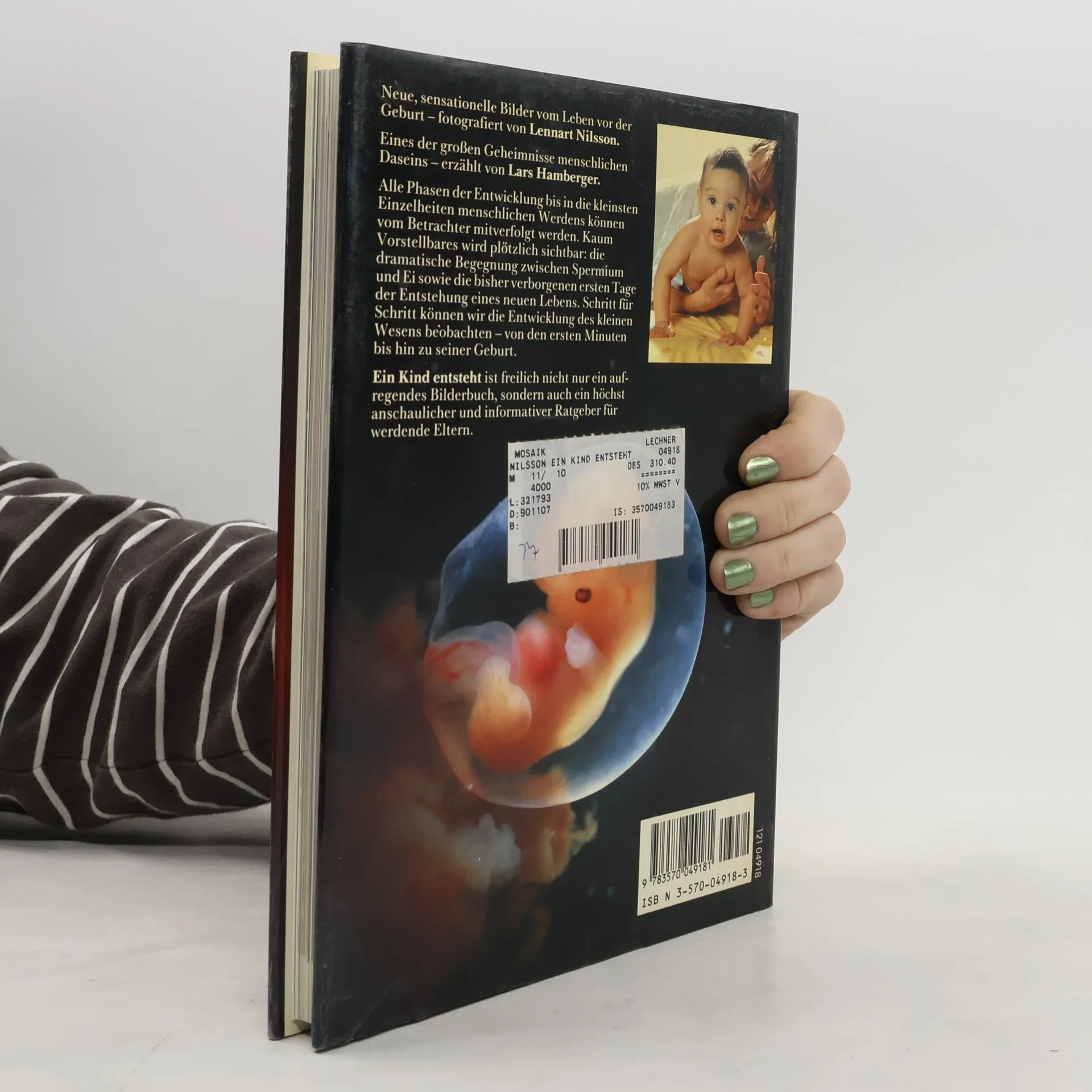 Seit es ihm 1965 zum ersten Mal gelang, einen Fötus im Mutterleib zu fotografieren, hat Lennart Nilsson sich mit Leib und Seele der Entstehung menschlichen Lebens verschrieben. Jetzt erscheint sein neuestes Buch – und wieder sind ihm sensationelle, einzigartige Fotos gelungen, die in faszinierender Weise die Entwicklung eines Babys dokumentieren: von seinen ersten Anfängen bis zur Geburt. Aktuellste wissenschaftliche Erkenntnisse zu den einzelnen Phasen und minutiöse Abbildungen machen „Ein Kind entsteht“ nicht nur zu einem aufregenden Bilderbuch, sondern auch zu einem anschaulichen und informativen Ratgeber für alle werdenden Eltern. Die in Technik und Ästhetik unvergleichliche Bilddokumentation des preisgekrönten Fotografen gewährt Einblicke in Prozesse, die die Wissenschaft erst in den letzten Jahren entschlüsseln konnte. Lennart Nilsson hat sie mit seiner Kamera eingefangen. Ausstattung: durchgehend 4-farbig illustriert, 400 farbige Abbildungen