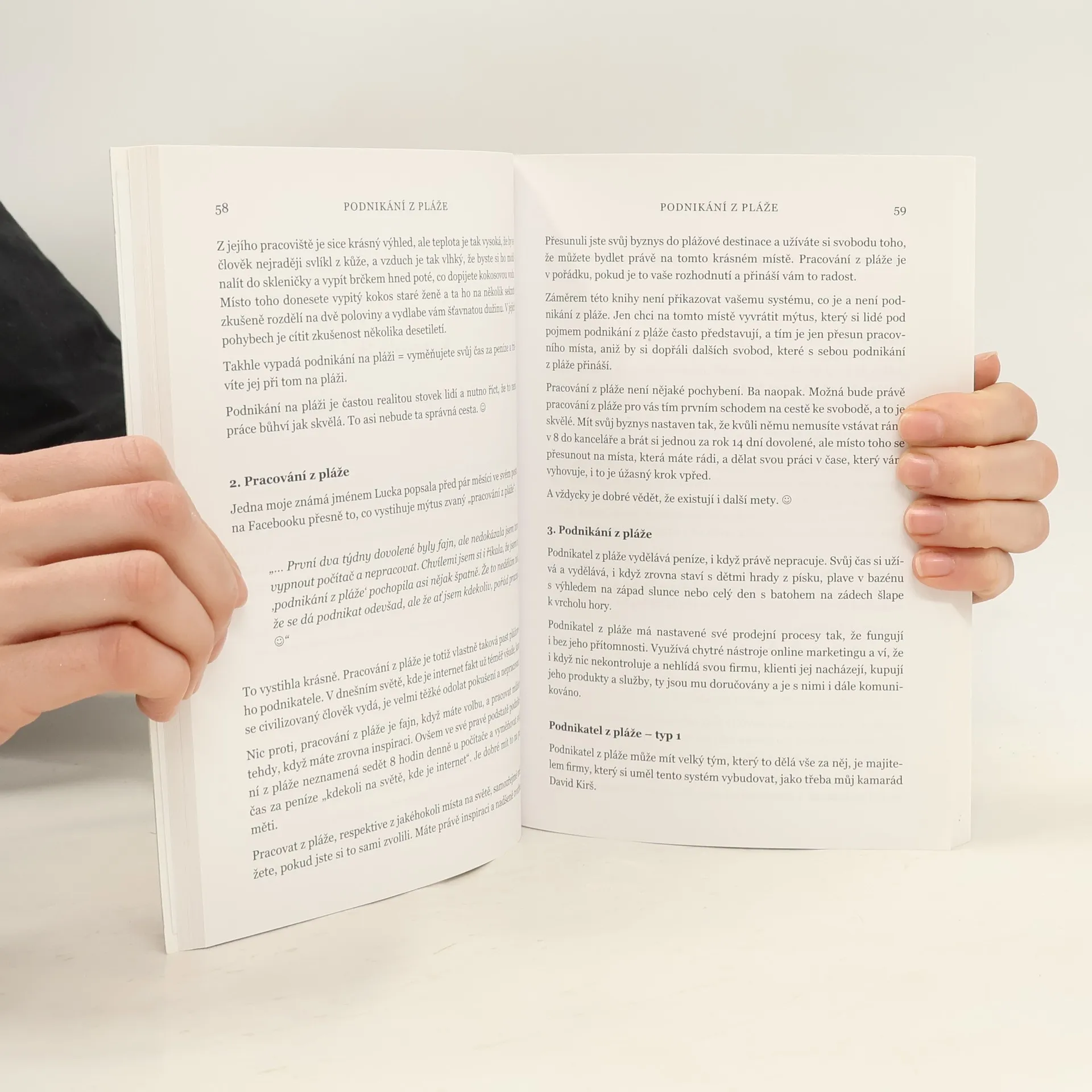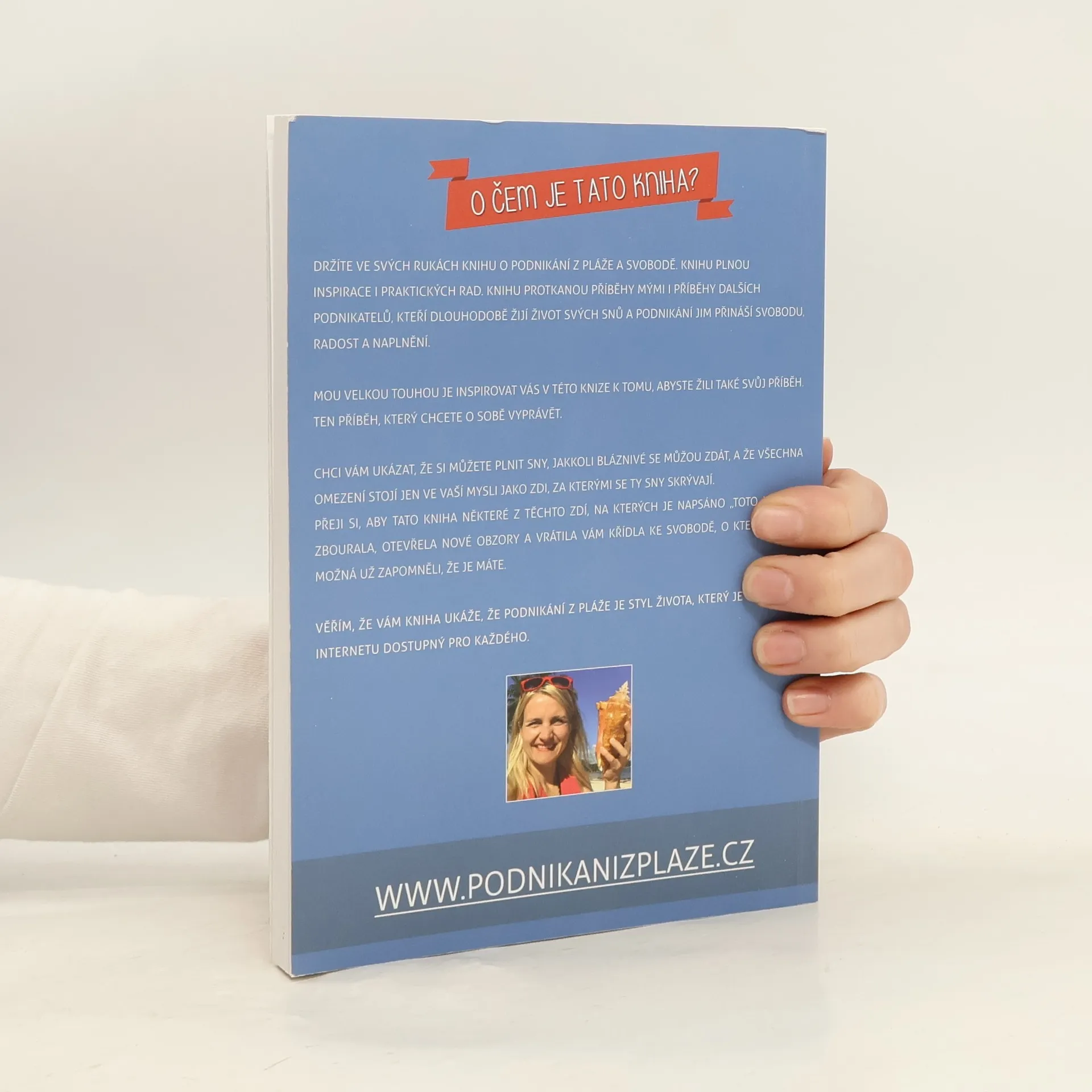 Slovy autorky: "Máte chuť žít život, ze kterého si nemusíte brát dovolenou? Život, ve kterém se ohlédnete a vydechnete úžasem, že toto všechno jste zažili? Život, ve kterém máte svobodu žít svobodně, radostně a naplno? O tom všem je kniha podnikání z pláže... Vítejte v mém světě :) Mou velkou touhou je inspirovat Vás v této knize k tomu, abyste žili také svůj příběh. Ten příběh, který chcete o sobě vyprávět. Chci Vám ukázat, že si můžete plnit sny, jakkoli bláznivé se můžou zdát, a že všechna omezení stojí jen ve Vaší mysli jako zdi, za kterými se ty sny skrývají. Přeji si, aby tato kniha některé z těchto zdí, na kterých je napsáno "Toto nejde!", zbourala, otevřela nové obzory a vrátila Vám křídla ke svobodě, o kterých jste možná už zapomněli, že je máte. Věřím, že Vám kniha ukáže, že podnikání z pláže je styl života, který je dnes díky internetu dostupný pro každého. Knihou se prolínají navíc příběhy podnikatelů a lidí, kteří už žijí život svobodně, radostně a naplno. Jsou to příběhy, které úžasně doplňují tu praktickou část podnikání z pláže a dávají inspiraci i naději, že žít život svých snů dokáže každý, kdo se rozhodne :) "