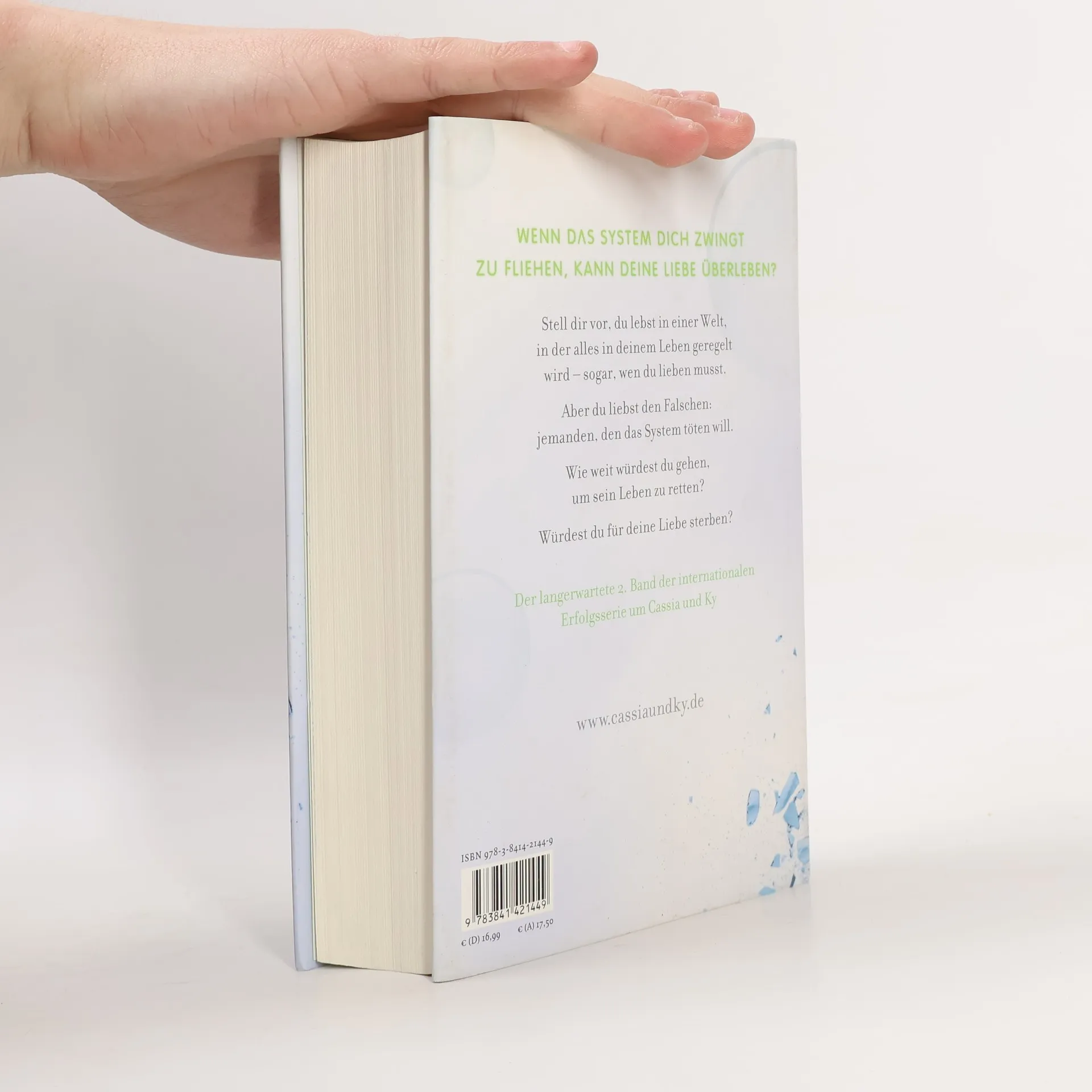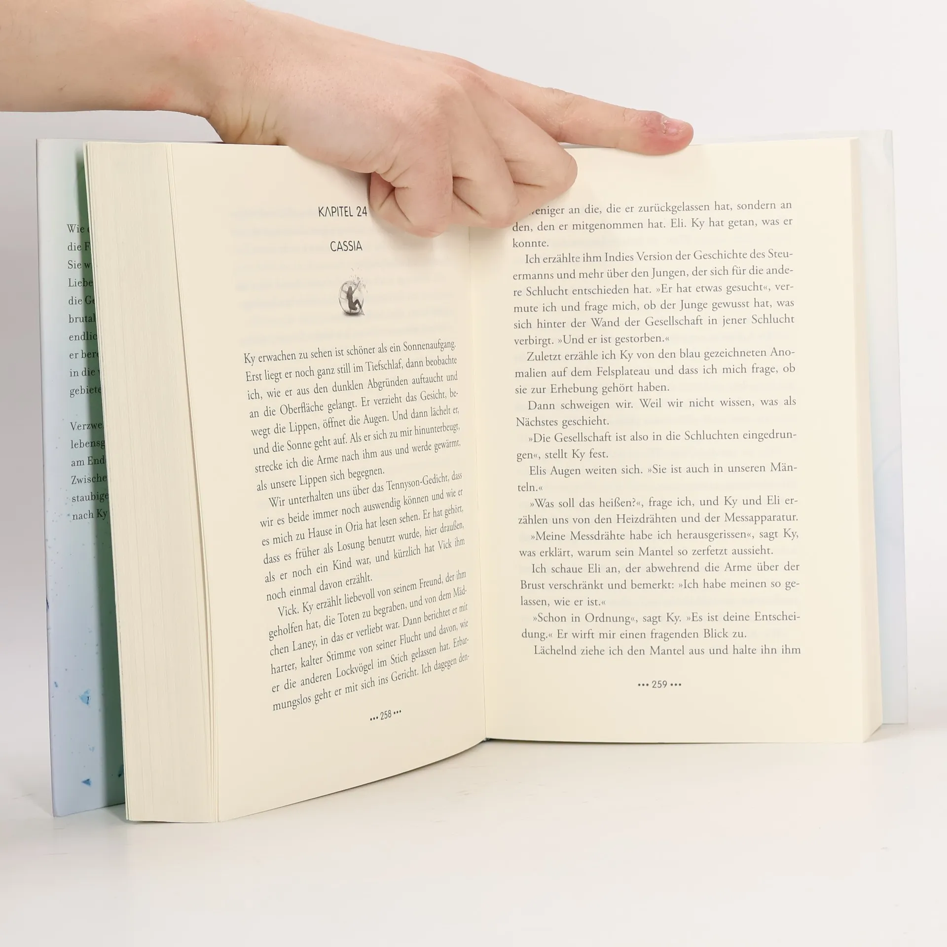 Wie durch ein Wunder gelingt Cassia die Flucht in die Äußeren Provinzen. Sie will nach Ky suchen, ihrer großen Liebe.Dort kämpft Ky als Soldat für die Gesellschaft und ist ununterbrochen brutalen Angriffen ausgesetzt. Als Cassia endlich auf eine Spur von Ky stößt, ist er bereits entkommen und auf dem Weg in die wilden Canyons in den Grenzgebieten. Verzweifelt macht sich Cassia auf den lebensgefährlichen Weg. Was wird sie am Ende der ihr bekannten Welt finden? Zwischen steinigen Schluchten und staubigen Pfaden sucht Cassia nicht nur nach Ky – sondern auch nach sich selbst. »›Cassia‹, sagt die Funktionärin. ›Bitte kommen Sie mit mir ins Hauptgebäude. Wir haben einen Kontakt für Sie.‹ Die anderen Mädchen starren mich überrascht an.Mir läuft es kalt den Rücken hinunter. Ich kann mir denken, wer es ist. Meine Funktionärin, die mich über das Terminal überprüfen will.Ich sehe ihr Gesicht ganz deutlich vor mir, jeden eiskalten Zug.Ich will sie nicht sehen!›Cassia‹, mahnt die Funktionärin. Ich drehe mich um und betrachte die anderen Mädchen und die Unterkunft, die mir plötzlich warm und gemütlich erscheint. Die Funktionärin geht mir auf dem Weg zum Hauptgebäude voraus, und ich höre schon beim Durchqueren der Eingangshalle das Terminal auf der anderen Seite summen.Einen Augenblick lang senke ich die Augen, bevor ich den Blick zum Terminal hebe.