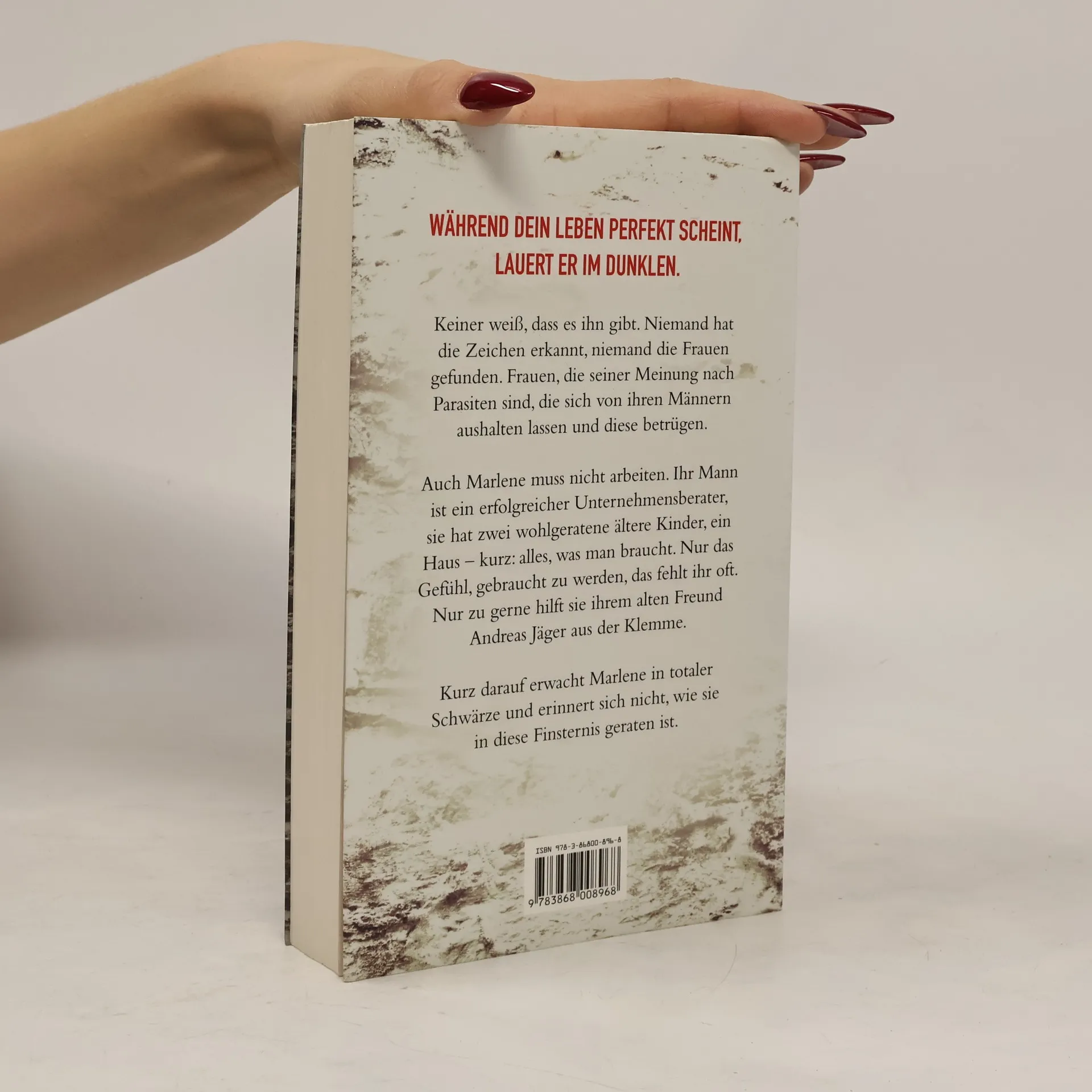 Dein Leben ist perfekt. Doch er lauert schon im Dunklen. Keiner weiß, dass es ihn gibt. Niemand hat die Zeichen erkannt, niemand die Frauen gefunden. Frauen, die seiner Meinung nach Parasiten sind. Die sich von ihren Männern aushalten lassen und diese betrügen. Auch Marlene muss nicht arbeiten. Ihr Mann ist erfolgreicher Unternehmensberater, sie hat zwei wohlgeratene Kinder, ein Haus – kurz: alles, was man braucht. Nur das Gefühl, gebraucht zu werden, fehlt ihr oft. Nur zu gerne hilft Marlene daher einem alten Freund aus der Klemme. Kurz darauf erwacht sie in totaler Finsternis ... «Petra HamMesfahrschafft Spannung mit Andeutungen, mit raffinierter Erzählweise und fesselnden Geschichten.» (Stern)