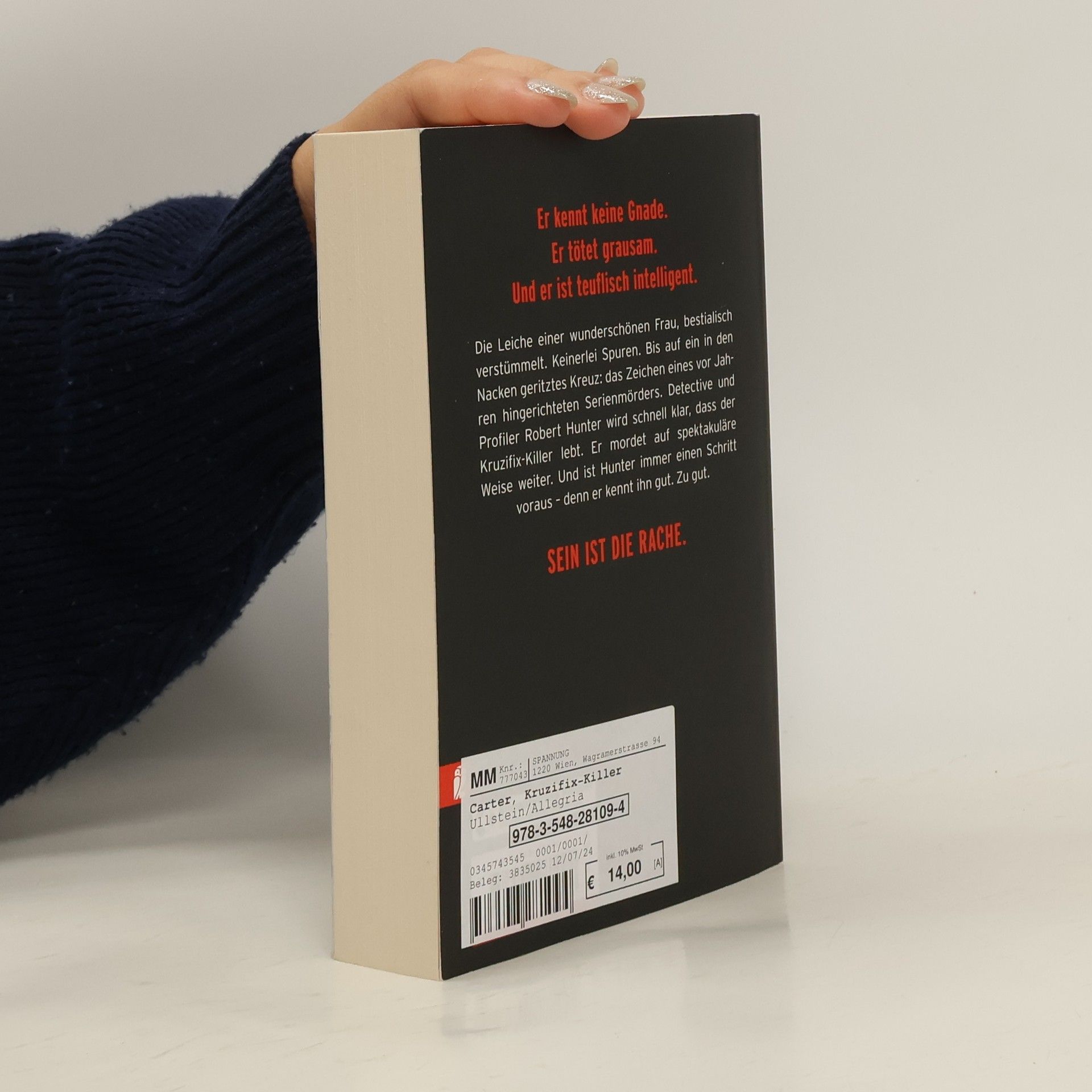 Ein grausamer Killer fordert Profiler Robert Hunter heraus Los Angeles: Die Leiche einer jungen Frau wird gefunden, zu Tode gequält und bestialisch verstümmelt. Keinerlei Spuren. Bis auf ein in den Nacken geritztes Kreuz: das Erkennungszeichen eines hingerichteten Serienmörders. Detective und Profiler Robert Hunter wird schnell klar, dass der Kruzifix-Killer lebt. Er mordet auf spektakuläre Weise weiter. Und er ist Hunter immer einen Schritt voraus - denn er kennt ihn gut. Zu gut.