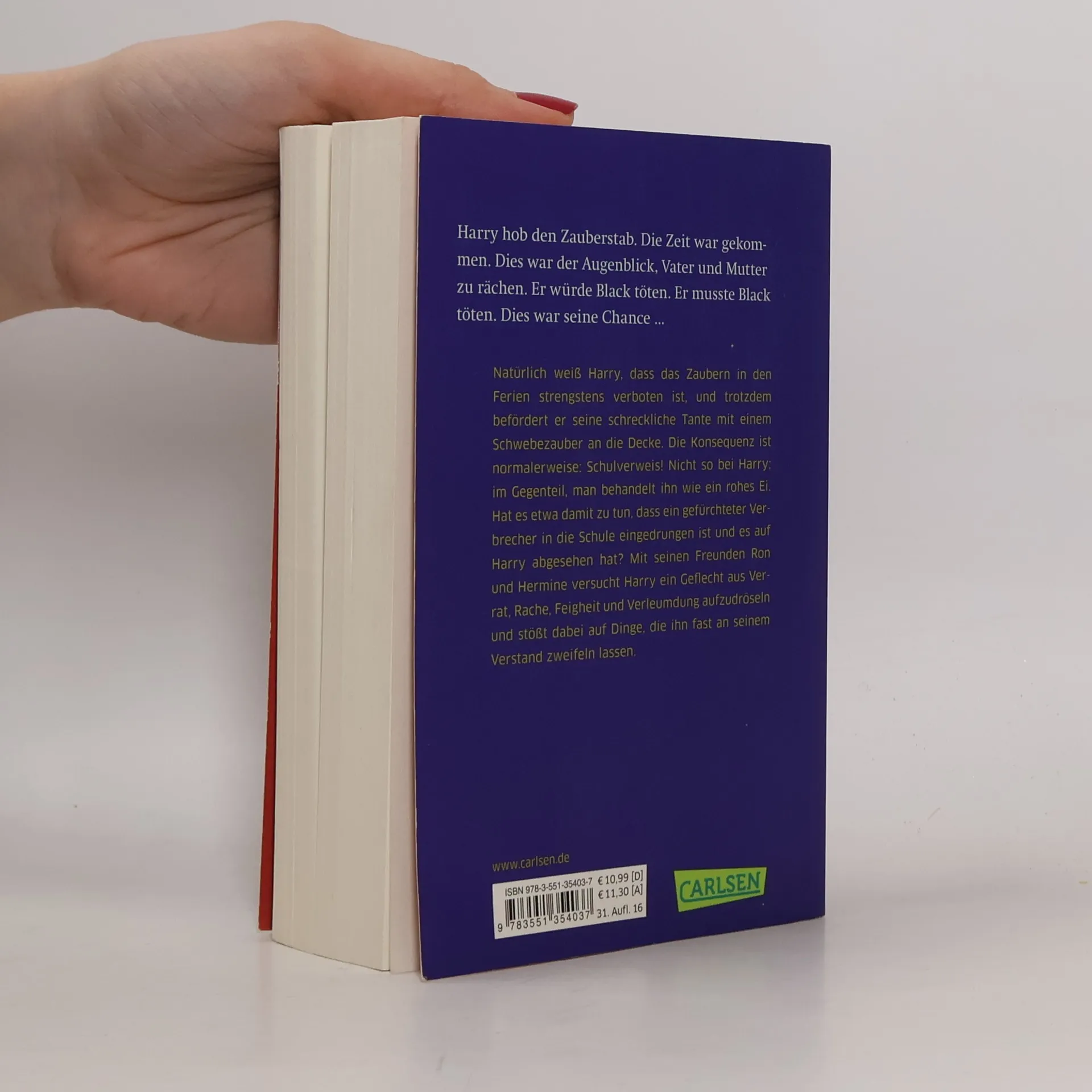Natürlich weiß Harry, dass das Zaubern in den Ferien strengstens verboten ist, und trotzdem befördert er seine schreckliche Tante mit einem Schwebezauber an die Decke. Die Konsequenz ist normalerweise: Schulverweis! Doch Harry wird behandelt wie ein rohes Ei. Hat es etwa damit zu tun, dass ein gefürchteter Verbrecher es auf Harry abgesehen hat? Mit Ron und Hermine versucht Harry ein Geflecht aus Verrat und Rache aufzudröseln und stößt dabei auf Dinge, die ihn fast an seinem Verstand zweifeln lassen. Dies ist der dritte Band der international erfolgreichen Harry-Potter-Serie, die Generationen geprägt hat. Alle Bände der Serie: Harry Potter und der Stein der WeisenHarry Potter und die Kammer des SchreckensHarry Potter und der Gefangene von AskabanHarry Potter und der FeuerkelchHarry Potter und der Orden des PhönixHarry Potter und der HalbblutprinzHarry Potter und die Heiligtümer des Todes Die Harry-Potter-Serie ist abgeschlossen.