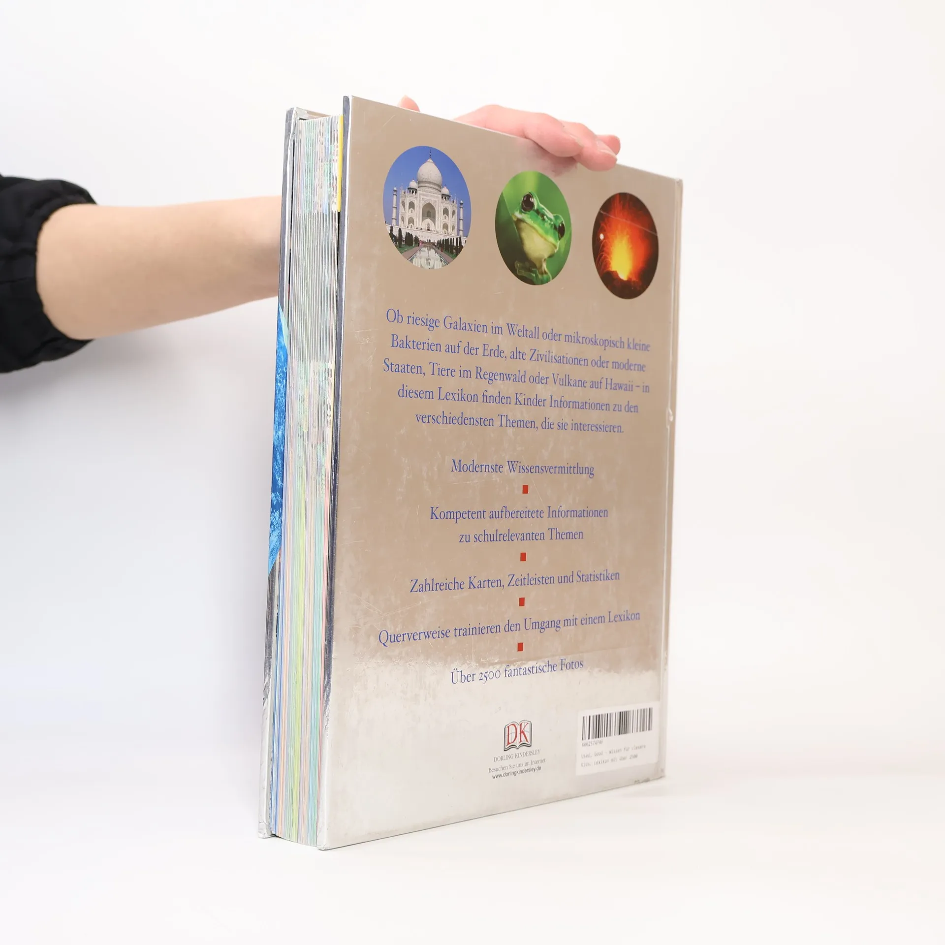 Dieses Lexikon der Extraklasse stillt den Wissensdurst und lässt keine Frage unbeantwortet. Ob Informationen zu Bereichen wie Erdkunde, Geschichte, Naturwissenschaften oder aktuellen und brisanten Themen wie Nanotechnologie, Genetik oder Klimawandel - „Wissen für clevere Kids“ deckt viele unterrichtsrelevante Bereiche ab und ist ein kompetenter Begleiter für den Schulalltag. Über 2.500 beeindruckende Fotografien und ein modernes, ansprechendes Design machen dieses Lexikon zudem zu einem einmaligen visuellen Ereignis im typischen DK-Stil. Übersichtliche Karten, Themen-Kästen, Zeitleisten und Statistiken sorgen für leicht zugängliche Informationen während Querverweise neugierigen Kindern dazu verhelfen ihr Wissen zu vertiefen. „Wissen für clevere Kids“ - attraktiv, fundiert, umfassend und spannend! Ab 8 Jahren.