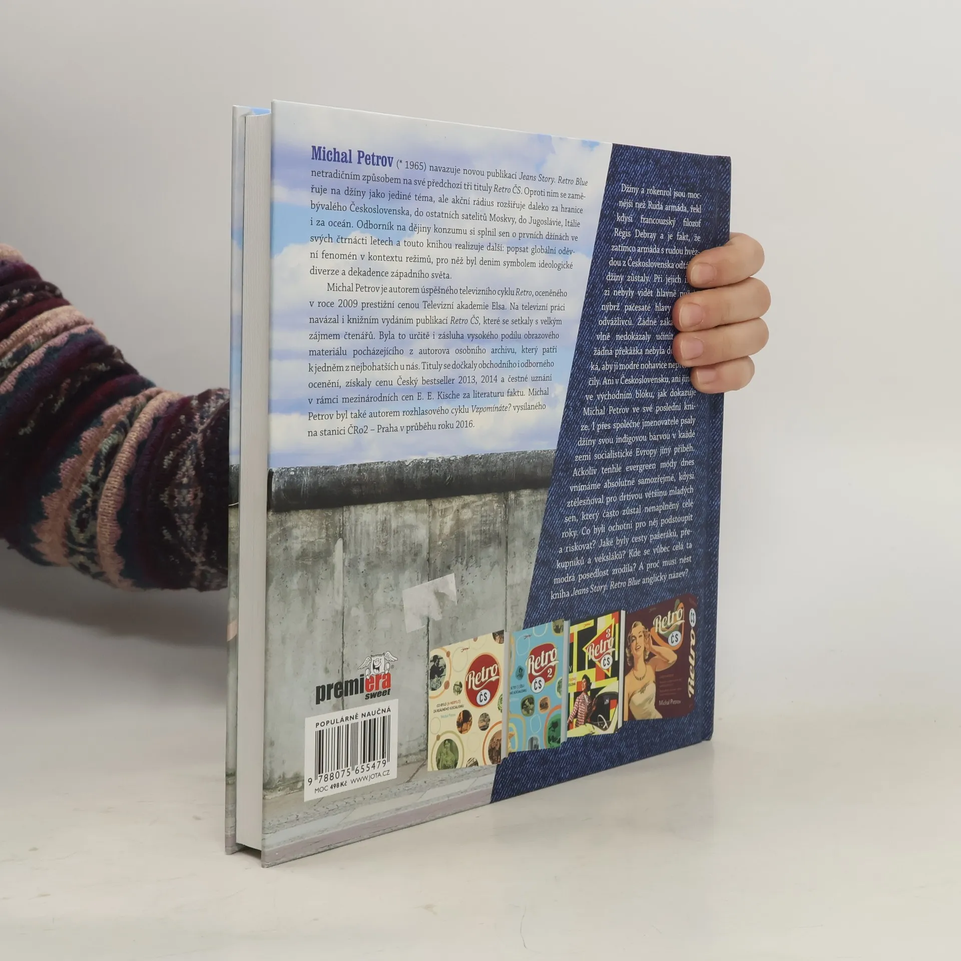 Retro Blue. Jak se obyčejné džíny dokázaly probít železnou oponou – dokonce i do Sovětského svazu. Džíny a rokenrol jsou mocnější než Rudá armáda, řekl kdysi francouzský filozof Régis Debray a je fakt, že zatímco armáda s rudou hvězdou z Československa odtáhla, džíny zůstaly. Při jejich invazi nebyly vidět hlavně pušek, nýbrž pačesaté hlavy prvních odvážlivců. Žádné zákazy téhle vlně nedokázaly učinit přítrž, žádná překážka nebyla dost vysoká, aby ji modré nohavice nepřekročily. Ani v Československu, ani jinde ve východním bloku, jak dokazuje Michal Petrov ve své poslední knize. I přes společné jmenovatele psaly džíny svou indigovou barvou v každé zemi socialistické Evropy jiný příběh. Ačkoliv tenhle evergreen módy dnes vnímáme absolutně samozřejmě, kdysi ztělesňoval pro drtivou většinu mladých sen, který často zůstal nenaplněný celé roky. Co byli ochotni pro něj podstoupit a riskovat? Jaké byly cesty pašeráků, překupníků a veksláků? Kde se vůbec celá ta modrá posedlost zrodila? A proč musí nést kniha Jeans Story. Retro Blue anglický název? Schválně, co nosíte vy? Rifle nebo džíny?