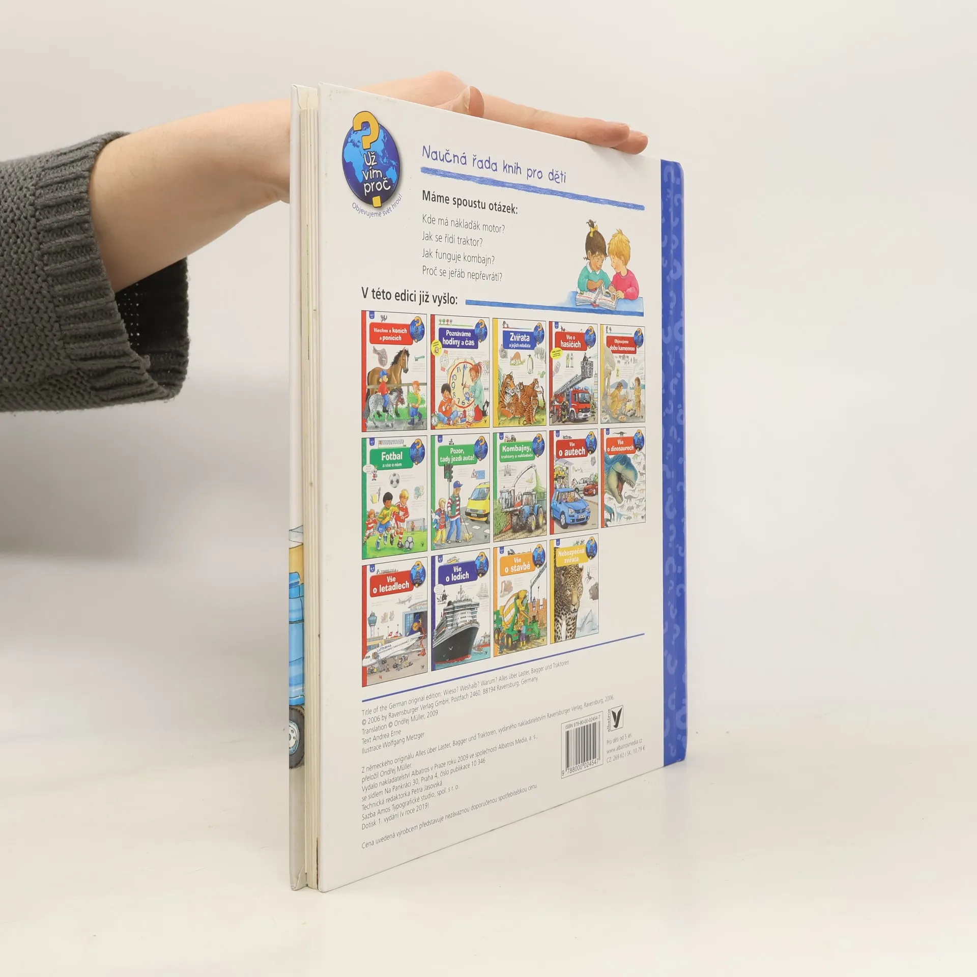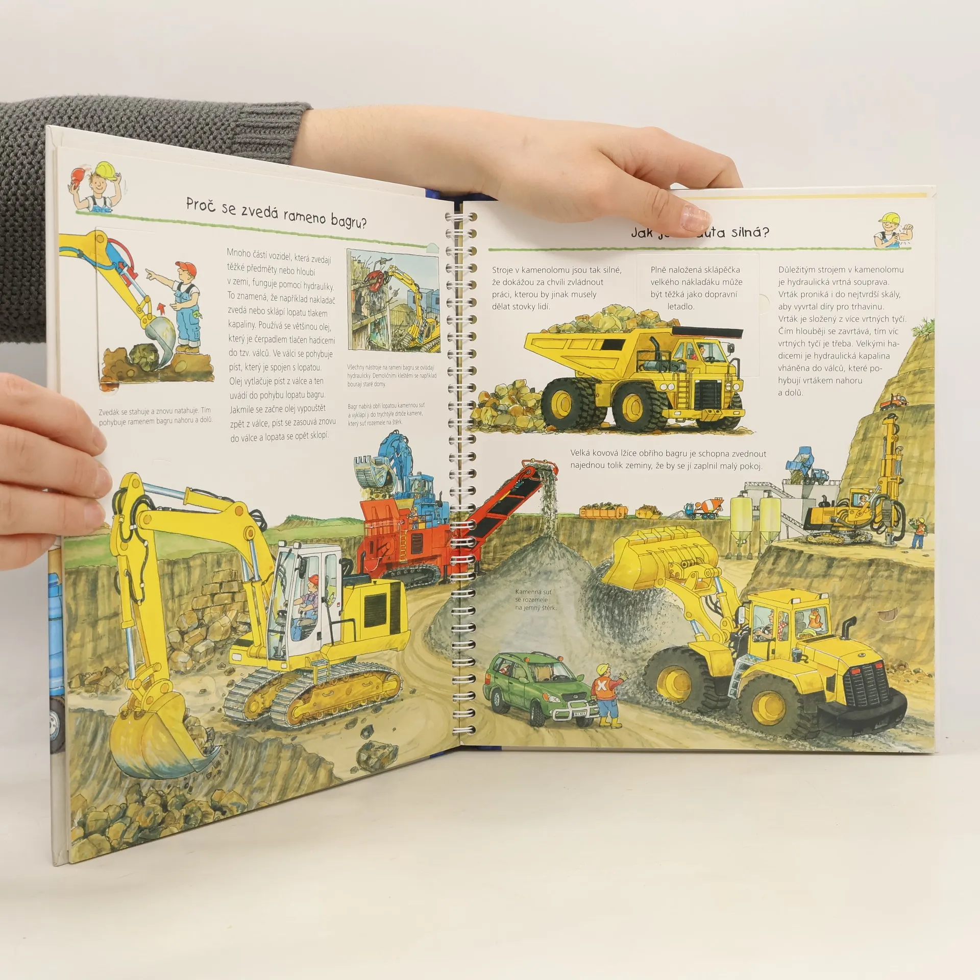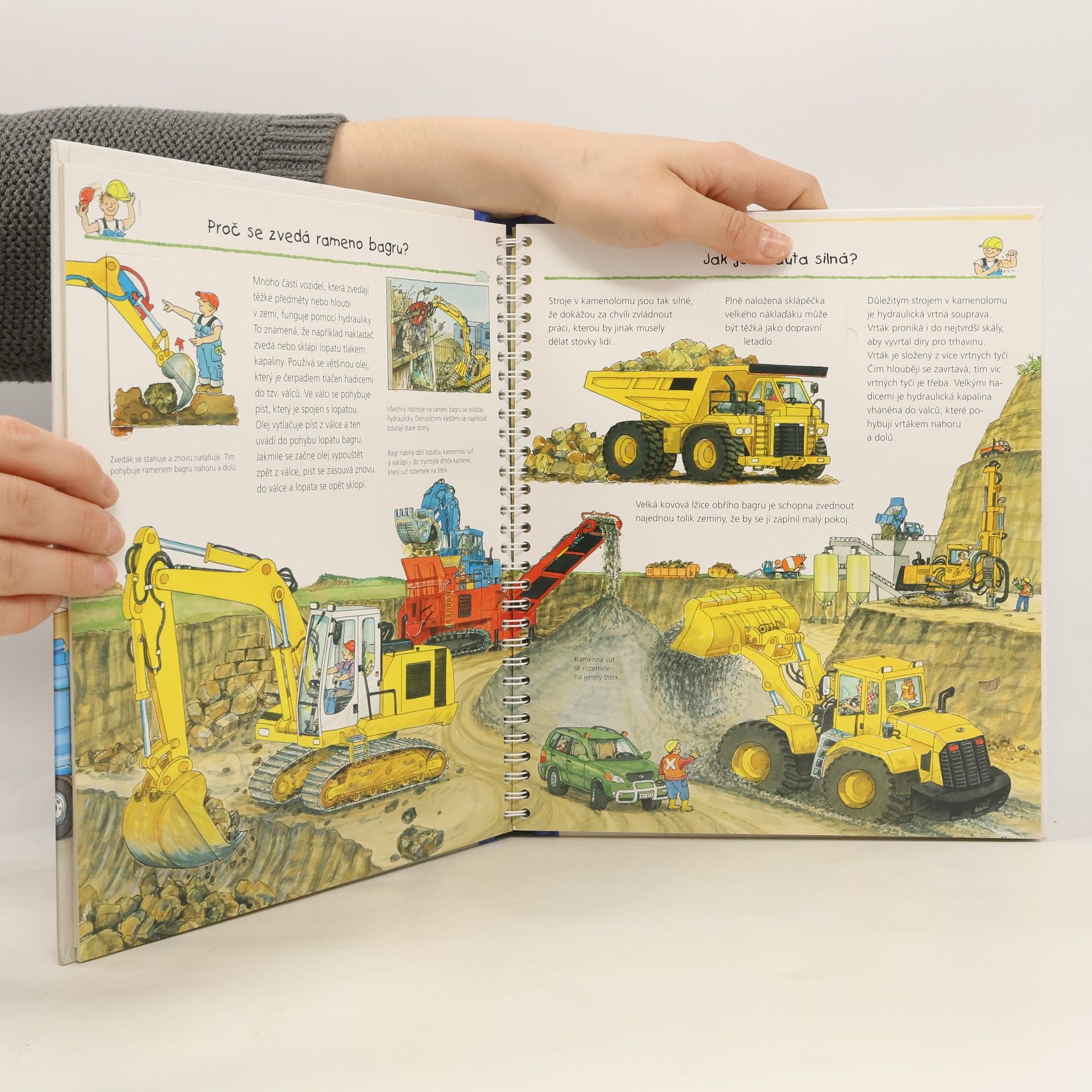 Na několika stránkách mnoho informací podaných slovy, a především obrázky! Dítě - v tomto případě většinou kluci, se seznámí se spoustou nových technických pojmů, které názorně vidí před sebou. Najde tu celou řadu zajímavostí a odpovědi na otázky, s nimiž si rodič často neví rady. Zkrátka vše o strojích na čtyřech, ale i více kolech v důsledném propojení textu s ilustracemi.