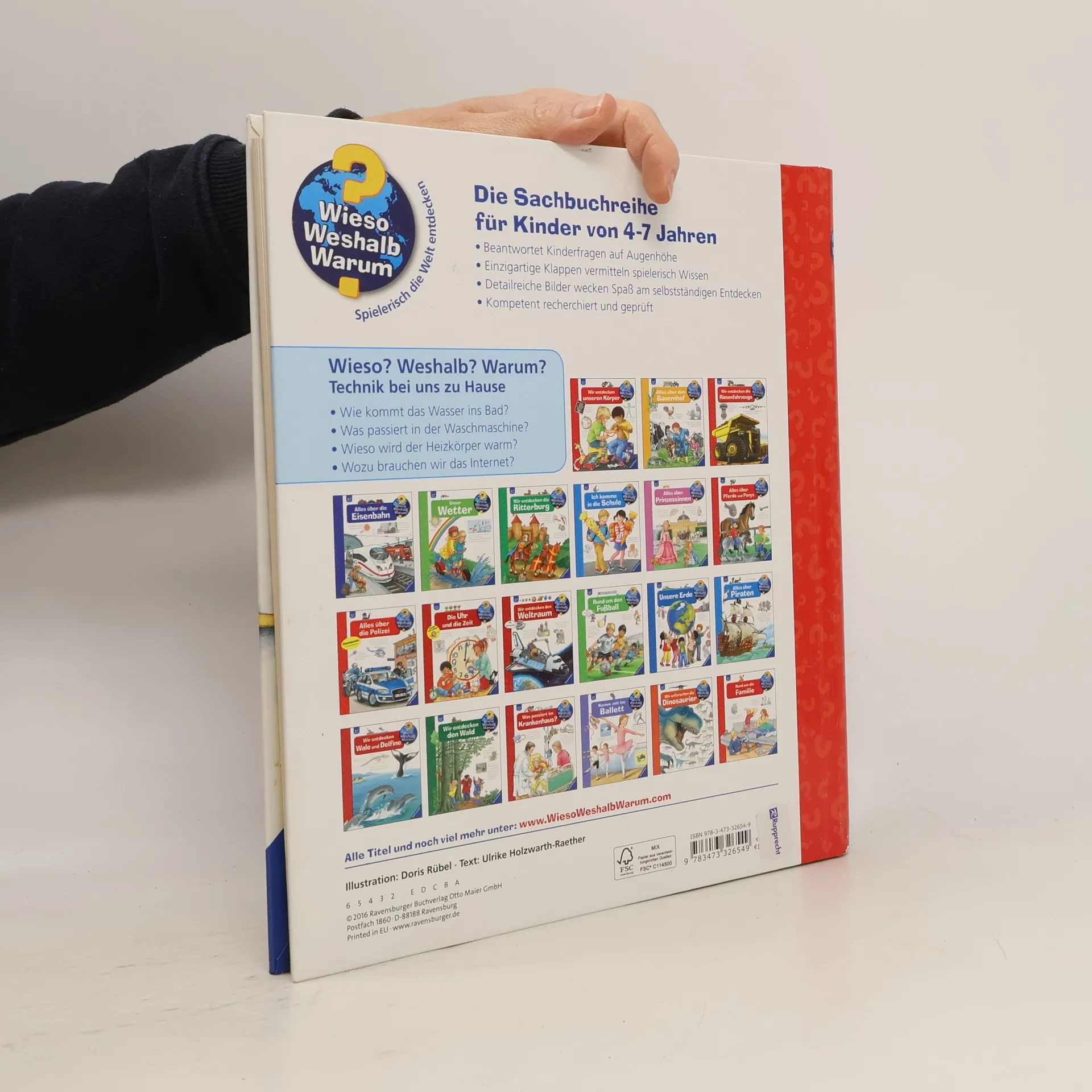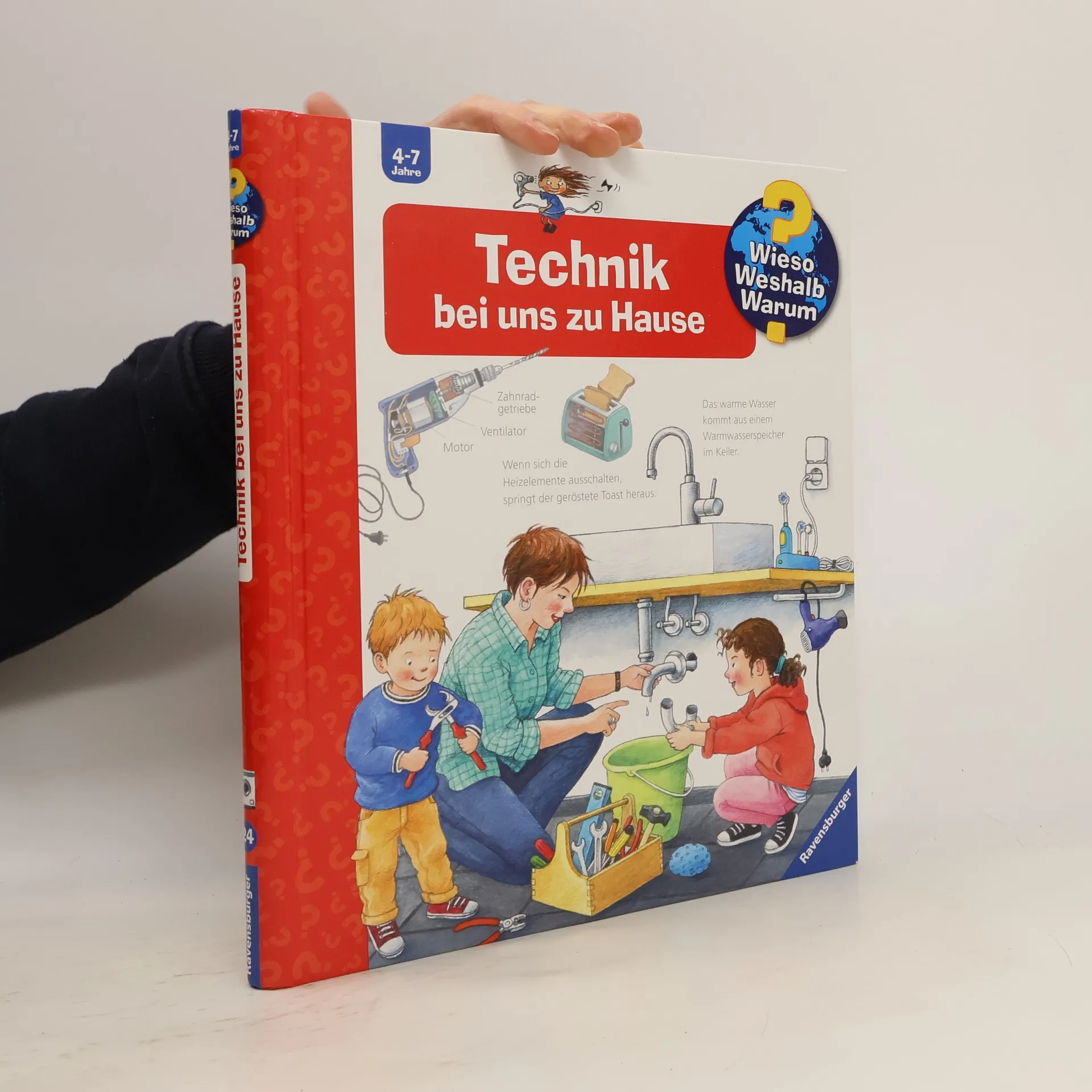 Ob Staubsauger, Bohrmaschine oder Kühlschrank – zu Hause helfen uns viele technische Geräte beim Saubermachen, Heimwerken und Kochen. Aber wie funktionieren Föhn, Waschmaschine und Telefon? Und wie kommen Strom, Wasser, Wärme und Internet überhaupt ins Haus? Dieser Band ermöglicht Kindern von 4-7 Jahren mithilfe spannender Klappen Einblicke ins Innere zahlreicher Haushaltsgeräte und erläutert leicht verständlich deren Funktionen. Wieso? Weshalb? Warum? Die Sachbuchreihe für Kinder von 4–7 Jahren Jeden Tag entdecken Kinder etwas Neues – da kommen viele Fragen auf. Warum sind die Dinosaurier ausgestorben? Wo ist die Sonne in der Nacht? Wozu brauchen wir das Blut? Die beliebte Sachbuchreihe Wieso? Weshalb? Warum? gibt Kindern Antworten auf Augenhöhe. Dabei werden die unterschiedlichsten Themen aus der Alltags- und Interessenswelt der Kinder altersgerecht und mit viel Liebe zum Detail unter die Lupe genommen. Detailreiche Bilder, verständliche Sachtexte und überraschende Klappen, die Bewegungen oder Abläufe veranschaulichen und hinter die Dinge blicken lassen, ermöglichen Kindern, sich ihre Themen selbst zu erschließen. Der Spaß am eigenhändigen Entdecken, die liebevolle Umsetzung und die qualitativ hochwertige Ausstattung garantieren langanhaltende Freude an jedem einzelnen Buch.