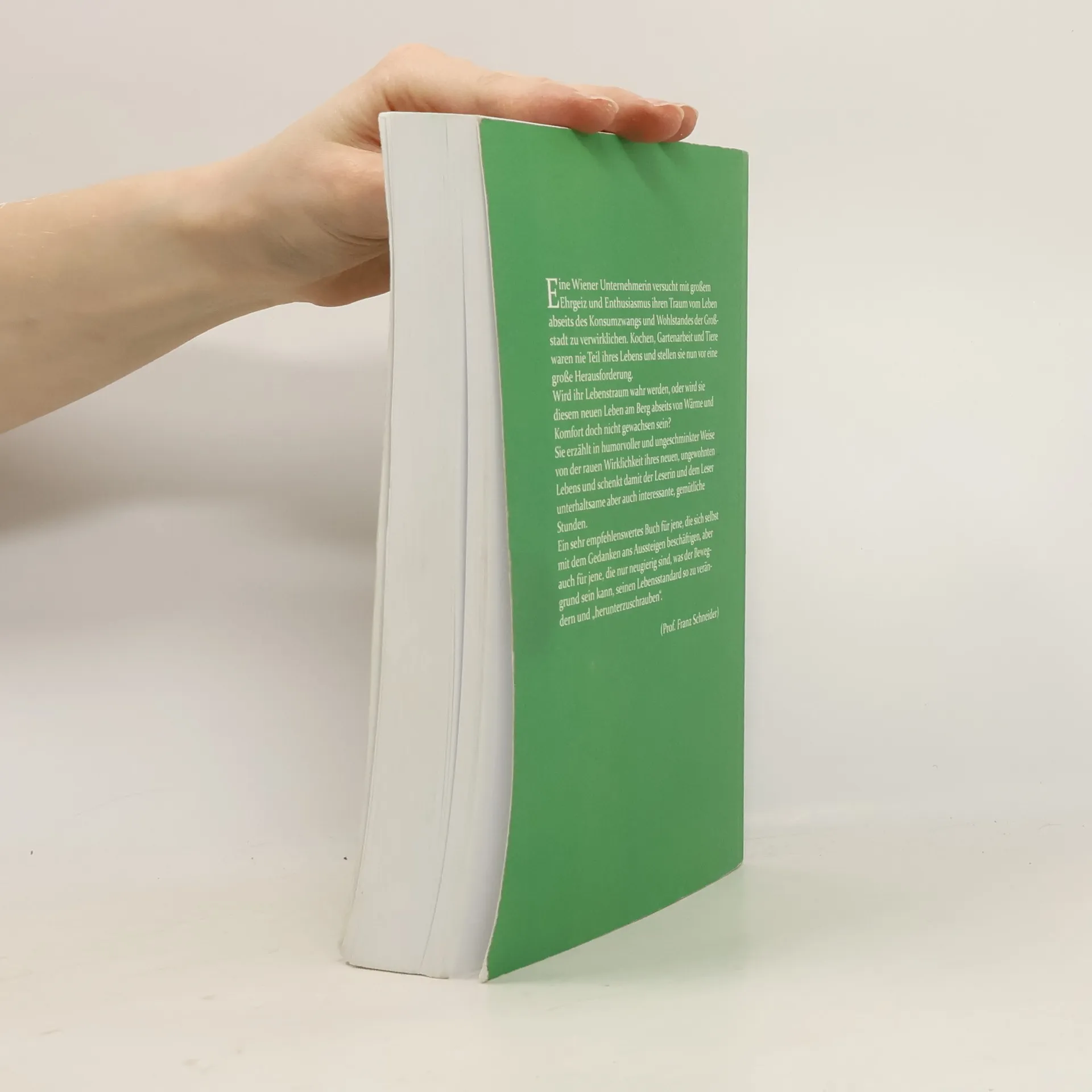 Eine Wiener Unternehmerin versucht mit großem Ehrgeiz und Enthusiasmus ihren Traum vom Leben abseits des Konsumzwangs und Wohlstandes der Großstadt zu verwirklichen. Kochen, Gartenarbeit und Tiere waren nie Teil ihres Lebens und stellen sie nun vor eine große Herausforderung. Wird ihr Lebenstraum wahr werden, oder wird sie diesem neuen Leben am Berg abseits von wärme und Komfort doch nicht gewachsen sein? Sie erzählt in Humorvoller und ungeschminter Weise von der rauen Wirklichkeit ihres neuen, ungewohnten Lebens und schenkt damit der Leserin und dem Leser unterhaltsame aber auch interessante, gemütliche Stunden. Ein sehr empfehlenswertes Buch für jene, die sich selbst mit dem Gedanken ans Aussteigen beschäftigen, aber auch für jene, die nur neugierig sind, was der Beweggrund sein kann, seinen Lebensstandard so zu verändern und „herunterzuschrauben“.