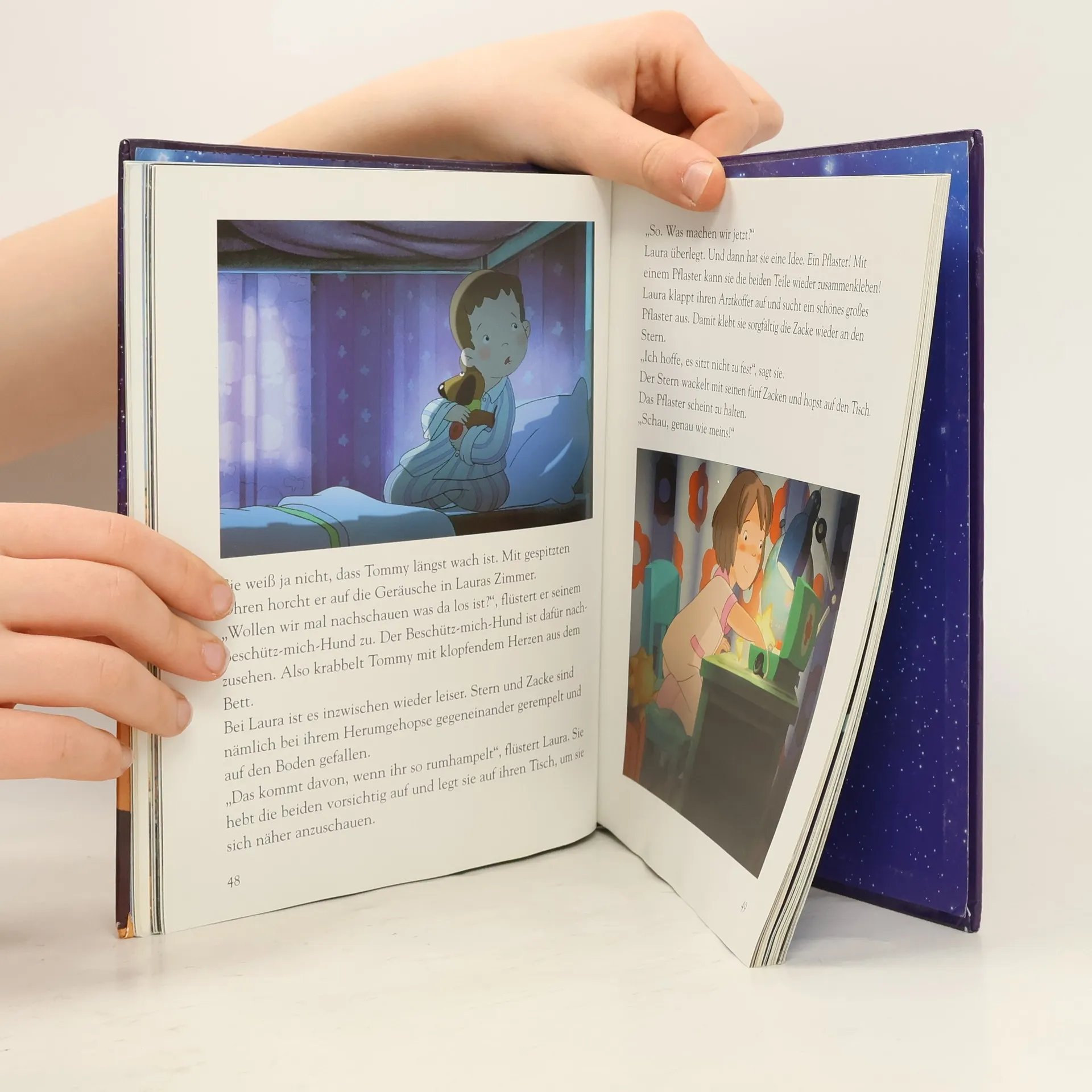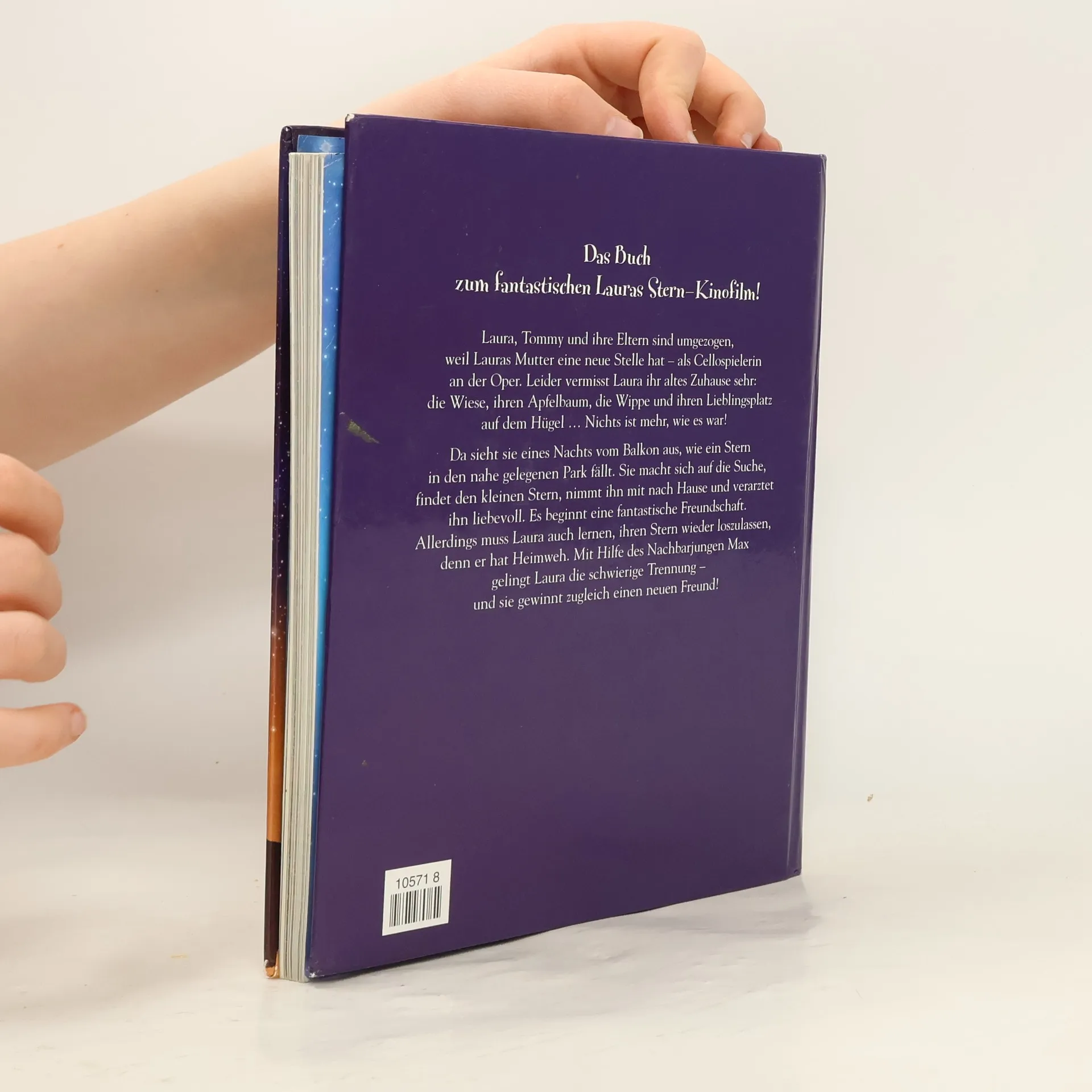 Laura, Tommy und ihre Eltern sind umgezogen, weil Lauras Mutter eine neue Stelle hat – als Cellospielerin an der Oper. Leider kommentiert Laura den Umzug ziemlich ungnädig: „Mein Apfelbaum ist nicht da! Die Wiese fehlt auch! Und das Vogelhäuschen! Meine Wippe! Meine Blumen …“ Und Tommy ist beim Umzug auch noch sein Beschütz-mich-Hund verloren gegangen! Am liebsten würde Laura gleich morgen wieder zurück in ihr altes Zuhause ziehen. In der Nacht entdeckt sie von ihrer Dachterrasse aus, wie ein kleiner Stern in den nahe gelegenen Park fällt. Sie nimmt ihn mit in ihr Zimmer, verarztet ihn liebevoll und versteckt ihn vor den Eltern. Es beginnt eine phantastische Freundschaft. Allerdings ahnt Laura, dass der Stern Heimweh hat. Und tatsächlich: Er verliert seine Leuchtkraft und Laura muss lernen, ihn wieder loszulassen. Mit Hilfe des Nachbarjungen Max, der die beiden beobachtet hat, gelingt Laura die Trennung – und sie gewinnt zugleich einen neuen Freund…