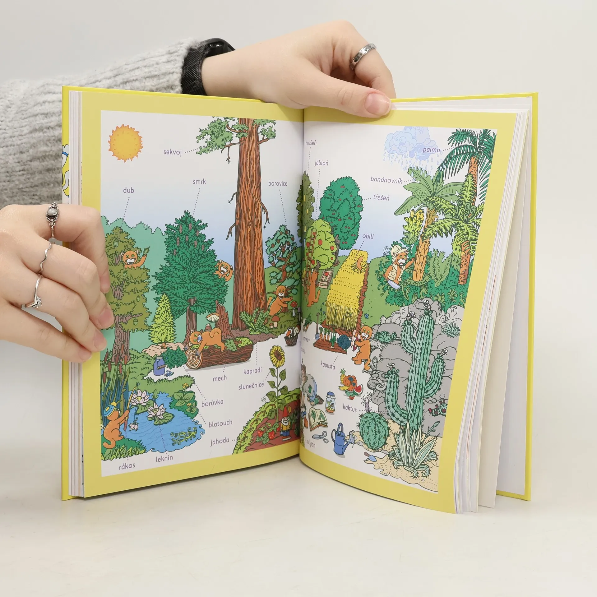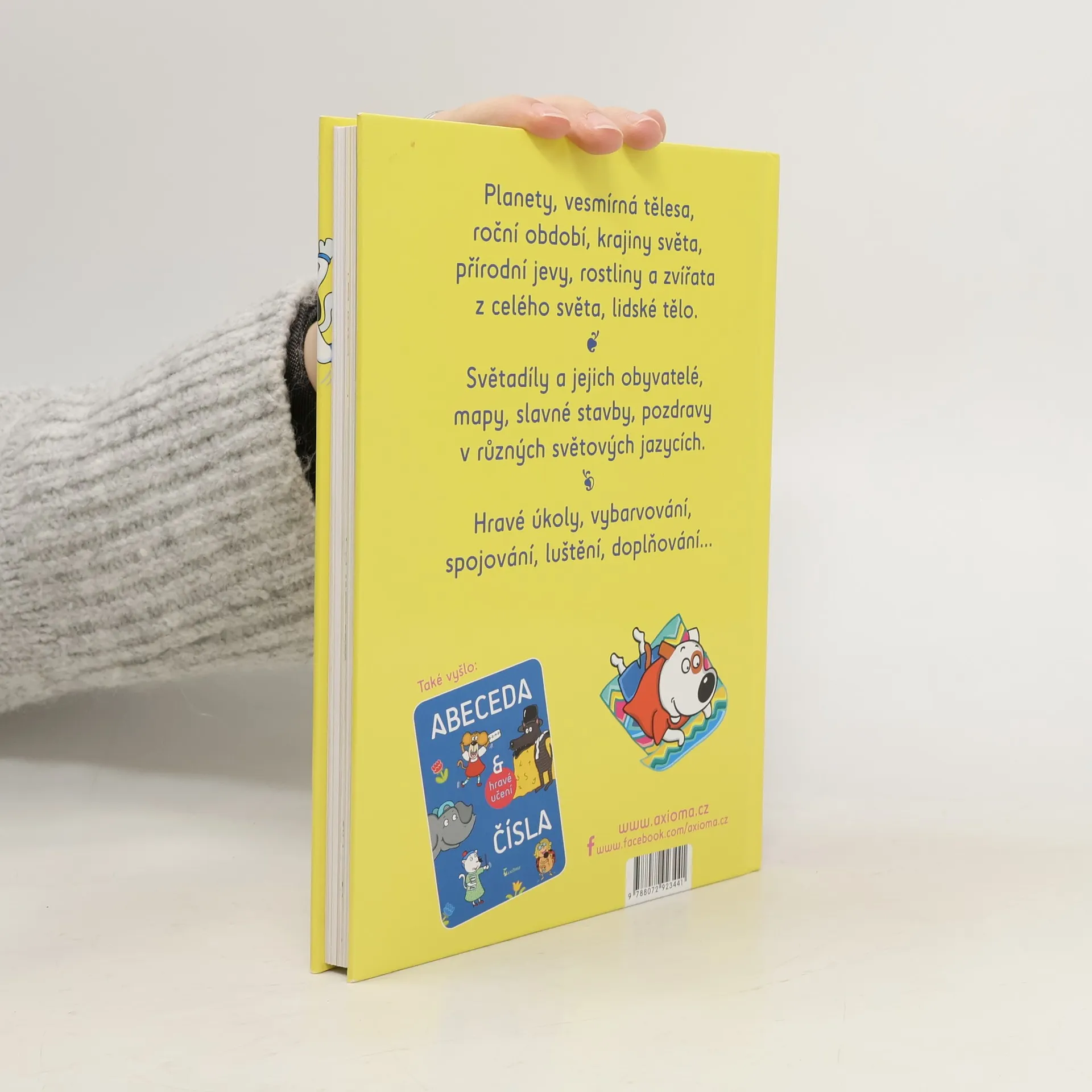 Planety, vesmírná tělesa, roční období, krajiny světy, přírodní jevy, rostliny a zvířata z celého světa, lidské tělo. Světadíly a jejich obyvatelé, mapy, slavné stavby, pozdravy v různých světových jazycích. Hravé úkoly, vybarvování, spojování, luštění, doplňování...