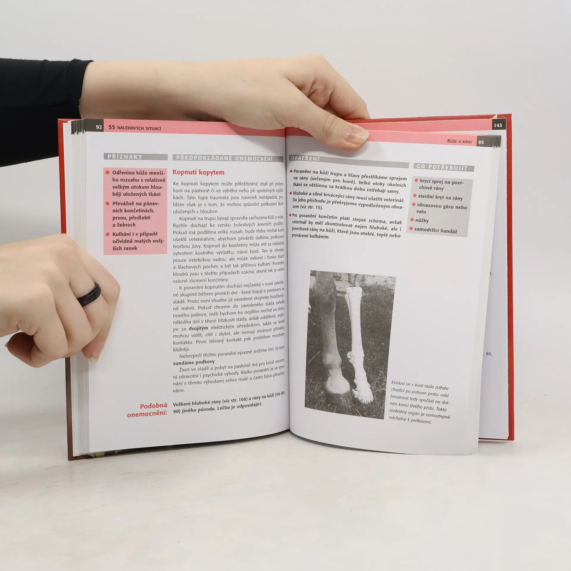 Příručka nabízí pomoc při řešení zdravotních krizových situací, do kterých se mohou dostat koně. Péče o postiženého koně před příchodem veterináře může mít na průběh onemocnění zásadní vliv, může dokonce rozhodnout o jeho životě. Kapitola o první pomoci je sestavena podle výrazných příznaků tak, aby mohl každý druh onemocnění snadno rozpoznat. Další kapitoly knihy se zabývají nejčastějšími onemocněními jednotlivých částí těla koně a jejich léčením.