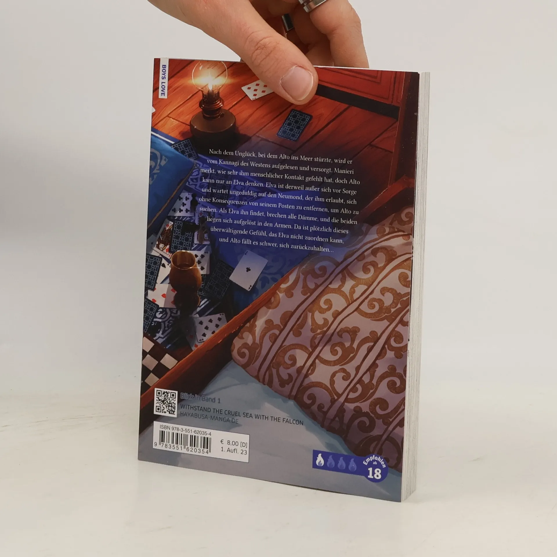 Ein verfluchtes Leben und eine Liebe, die alles verändert... Nach dem Unglück, bei dem Alto ins Meer stürzte, wird er vom Kannagi des Westens aufgelesen und versorgt. Manieri merkt, wie sehr ihm menschlicher Kontakt gefehlt hat, doch Alto kann nur an Elva denken. Elva ist derweil außer sich vor Sorge und wartet ungeduldig auf den Neumond, der ihm erlaubt, sich ohne Konsequenzen von seinem Posten zu entfernen, um Alto zu suchen. Als Elva ihn findet, brechen alle Dämme, und die beiden liegen sich aufgelöst in den Armen. Da ist plötzlich dieses überwältigende Gefühl, das Elva nicht zuordnen kann, und Alto fällt es schwer, sich zurückzuhalten… Dies ist der zweite Band der Serie. Weitere Informationen: Spice-Level: 1 von 4 Flammen. Erotik spielt in diesem Boys-Love-Titel eine kleinere Rolle. Ideal für Einsteiger*innen. Die Serie gilt als noch nicht abgeschlossen Ein gefühlvoller, epischer Boys-Love-Manga in einem facettenreichen Fantasy-Setting.