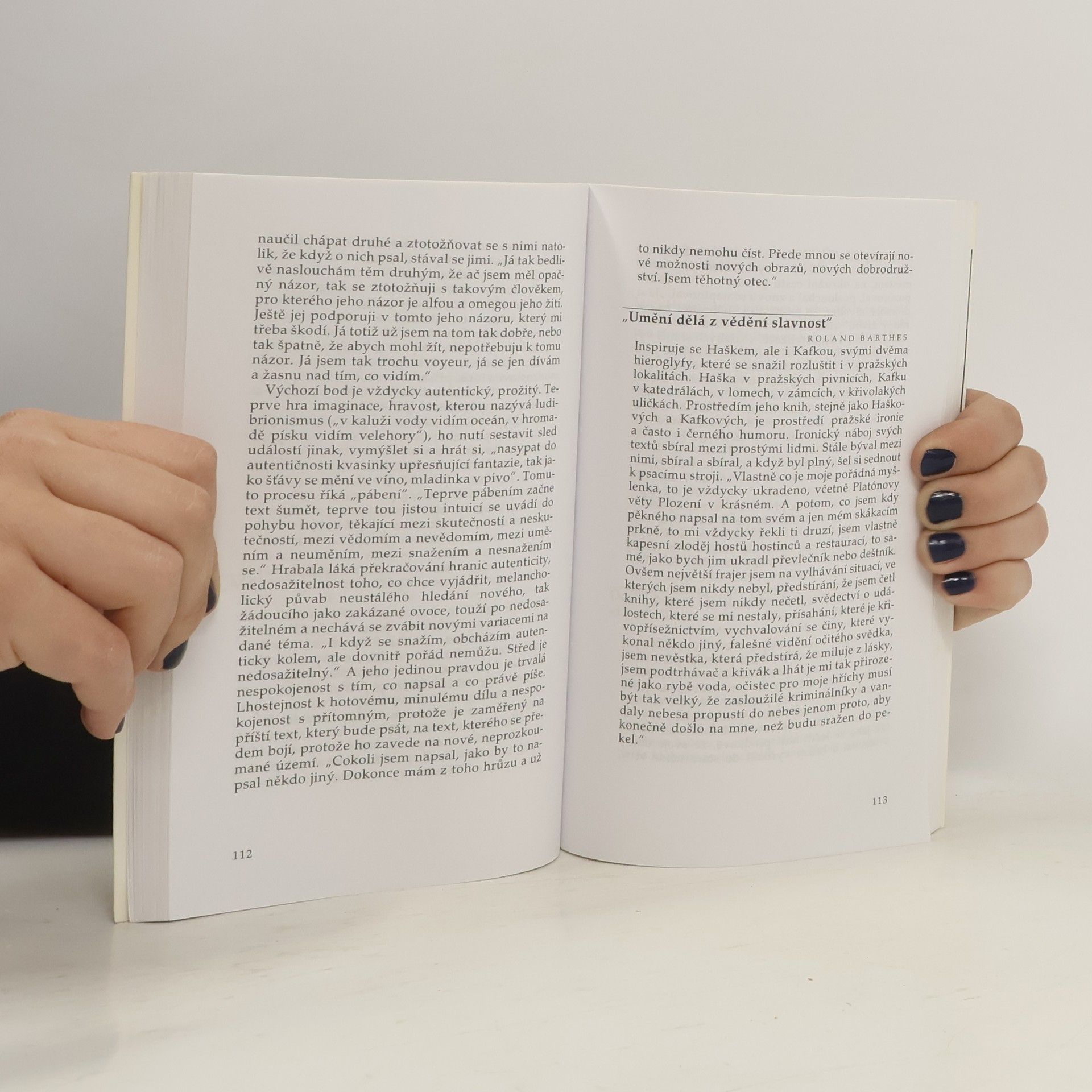 Románový životopis Bohumila Hrabala (1914 1997) vznikl ještě za jeho života; čtyři roky se Zgustová s Hrabalem setkávala a naslouchala jeho vyprávění, a tak nás provází jeho dětstvím a mládím, meziválečným obdobím v Nymburce, druhou světovou válkou, prvními roky po komunistickém převratu ve slévárnách na Kladně a ve Sběrných surovinách v Praze. Zároveň dává nahlédnout do prvních Hrabalových básnických pokusů, do jeho nitra v době slávy v šedesátých letech i v pozdějším období depresí. Vzpomínkami Hrabalovými, jeho přátel i jeho odpůrců, ale především vlastním vyprávěním autorka vykreslila pozoruhodný portrét spisovatele, který zavrhuje jakékoli kázání či moralizování a jehož dílo se stalo jedinečným poselstvím nejen pro českého čtenáře. Kniha vychází při příležitosti 90. výročí Hrabalova narození a je doplněna unikátními, většinou dosud nepublikovanými fotografiemi.