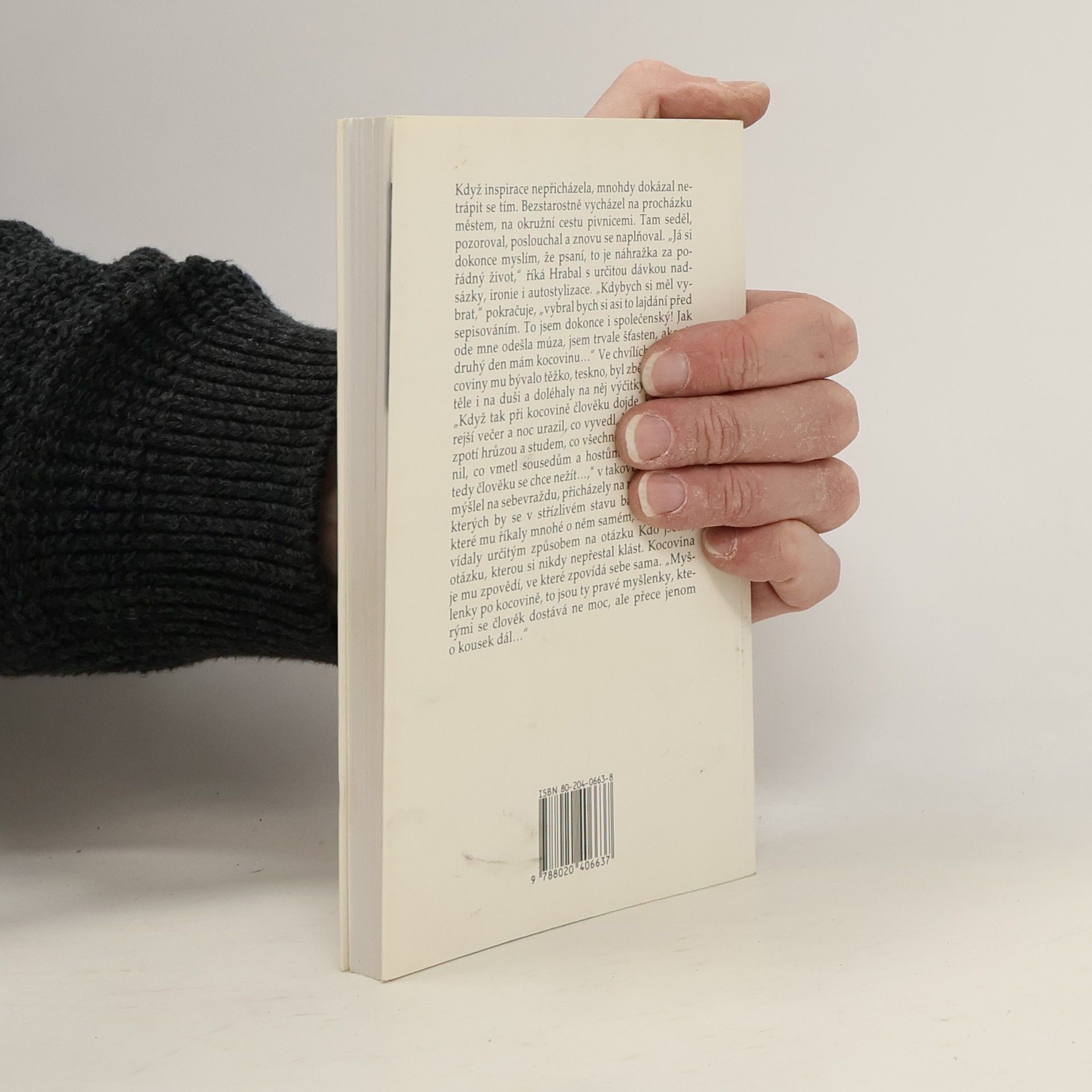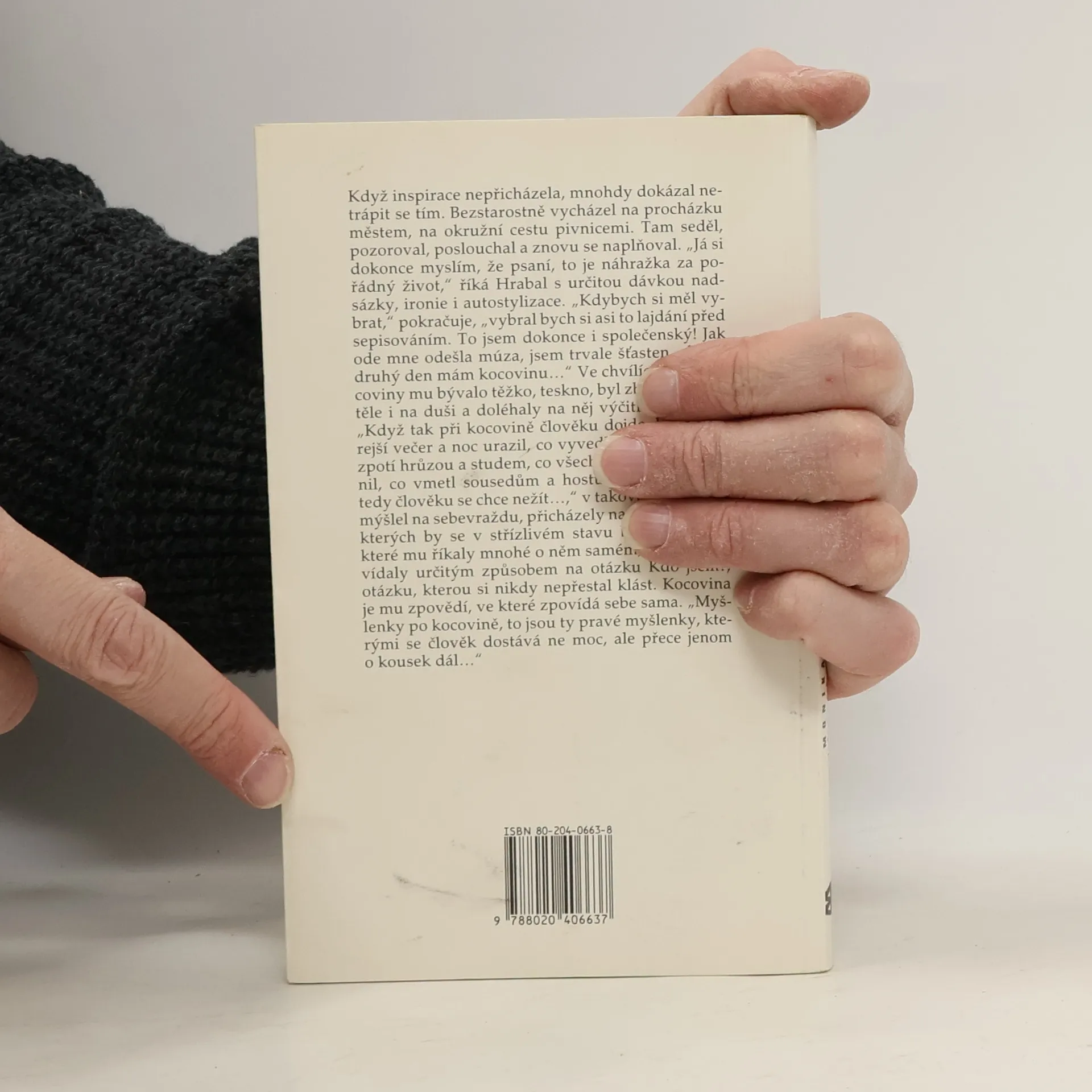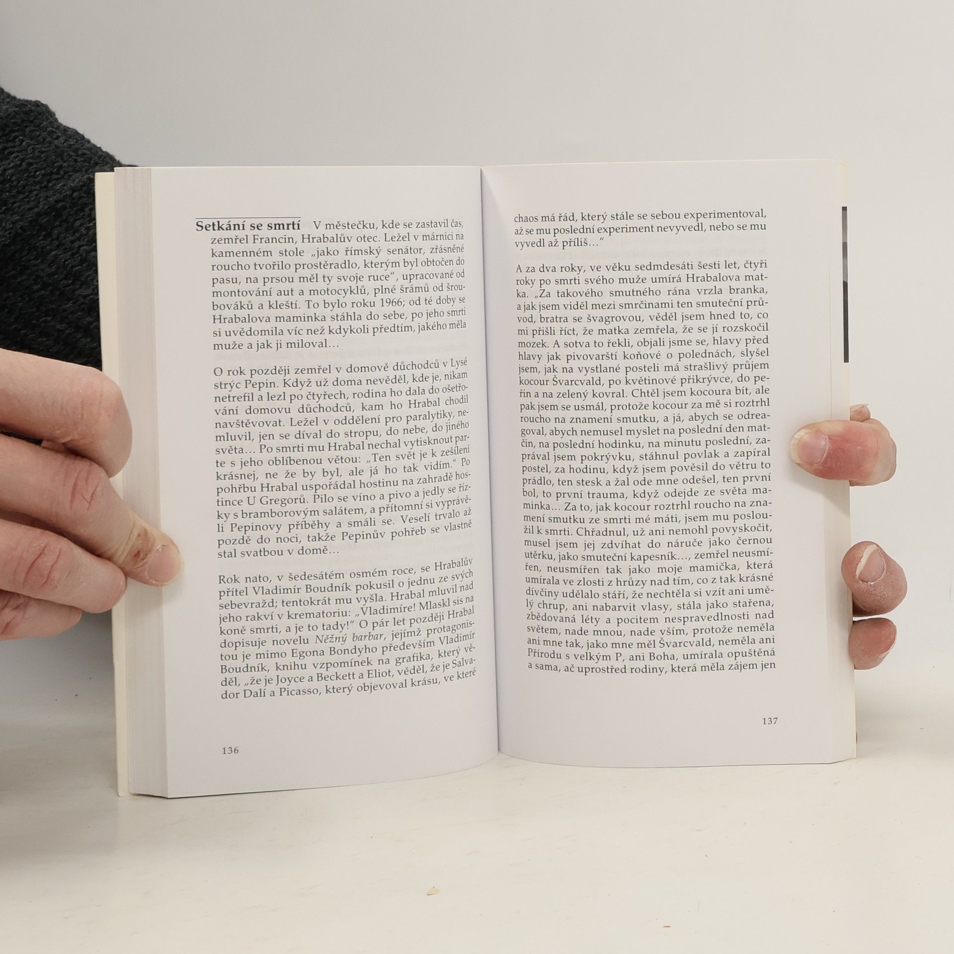 Románový životopis Bohumila Hrabala (1914 1997) vznikl ještě za jeho života; čtyři roky se Zgustová s Hrabalem setkávala a naslouchala jeho vyprávění, a tak nás provází jeho dětstvím a mládím, meziválečným obdobím v Nymburce, druhou světovou válkou, prvními roky po komunistickém převratu ve slévárnách na Kladně a ve Sběrných surovinách v Praze. Zároveň dává nahlédnout do prvních Hrabalových básnických pokusů, do jeho nitra v době slávy v šedesátých letech i v pozdějším období depresí. Vzpomínkami Hrabalovými, jeho přátel i jeho odpůrců, ale především vlastním vyprávěním autorka vykreslila pozoruhodný portrét spisovatele, který zavrhuje jakékoli kázání či moralizování a jehož dílo se stalo jedinečným poselstvím nejen pro českého čtenáře. Kniha vychází při příležitosti 90. výročí Hrabalova narození a je doplněna unikátními, většinou dosud nepublikovanými fotografiemi.