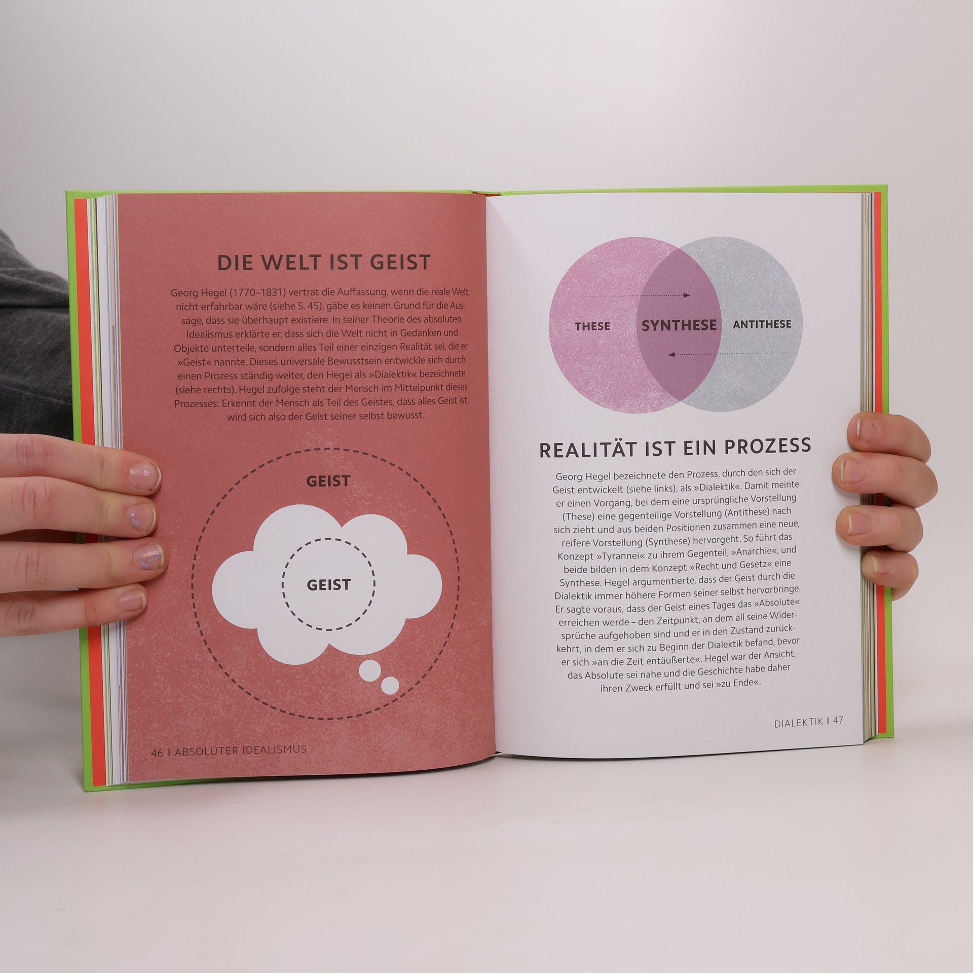 Philosophie überraschend einfach! Visueller kann Wissen nicht sein: Die perfekte Einführung in die theoretischen Grundlagen und praktischen Anwendungen der Philosophie für Wissenshungrige mit wenig Zeit! Durch originelle Grafiken und kurze Texterläuterungen werden philosophische Inhalte auf das Wesentliche reduziert und die wichtigsten Philosoph*innen vorgestellt – von Aristoteles und Sokrates bis Kant und Nietzsche. Die neue Sachbuch-Reihe macht komplizierte Themen anschaulich und leicht verständlich. Jedes Unterthema wird auf einer einzigen Seite visualisiert, mit einer individuellen Text-Bild-Komposition, die zum Inhalt passt. 90 der wichtigsten philosophischen Ideen und Denker*innen unterschiedlicher Denkrichtungen werden in durchdachten Grafiken und komprimierten Texten nachvollziehbar aufbereitet. Ideal für unterwegs: Das handliche Format und der extra-leichte Einband passen in jede Tasche! Das visuelle Nachschlagewerk beleuchtet zentrale Themen der Philosophie und beantwortet spannende Fragen, wie ob eine Maschine denken kann oder wie man Denkfehler erkennt. Anschauliche Grafiken und Diagramme erleichtern den Zugang zu komplexen Theorien und bringen das Wesentliche auf den Punkt. Noch nie war es so einfach, Philosophie zu verstehen!