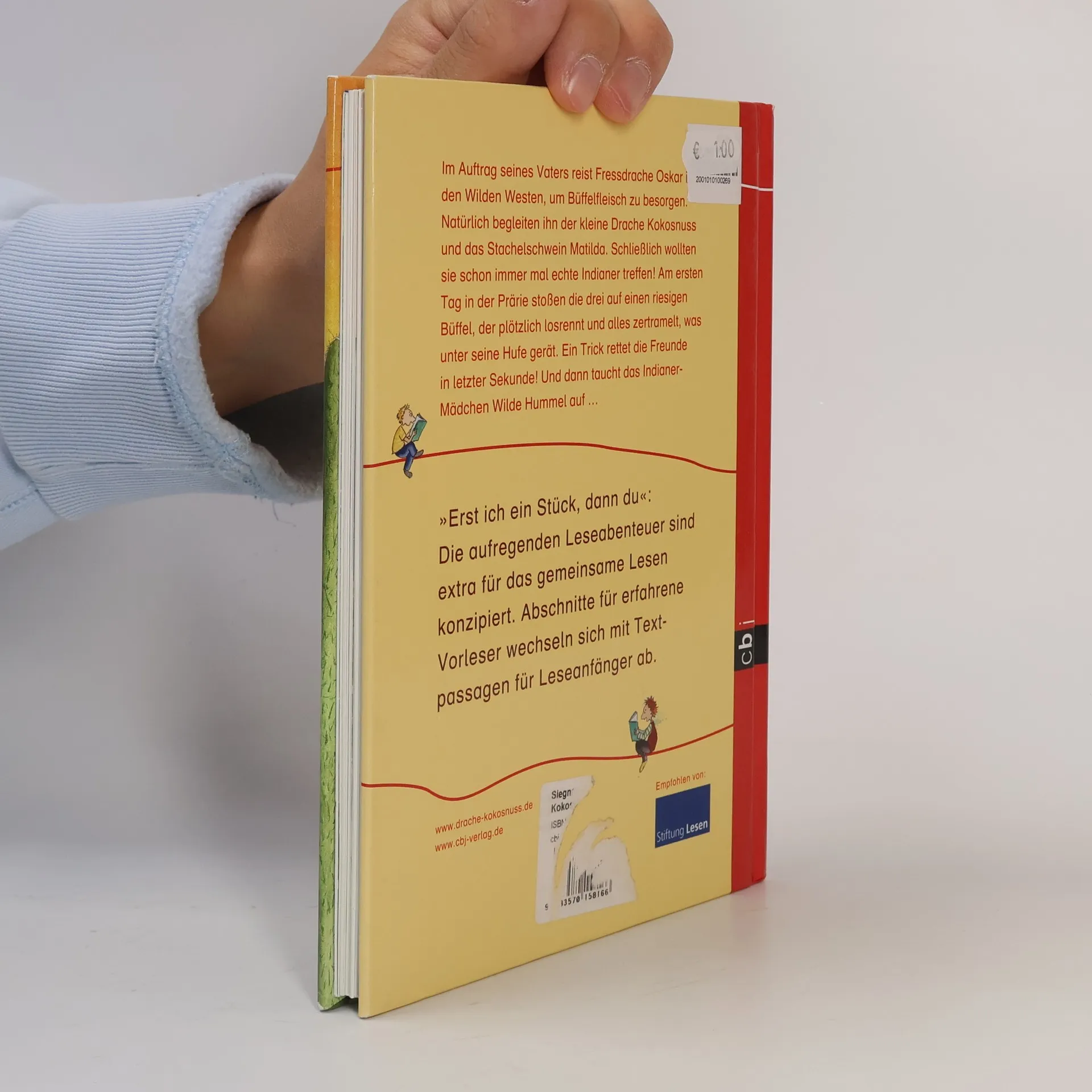 Gemeinsam lesen mit dem kleinen Drachen Kokosnuss! Im Auftrag seines Vaters reist Fressdrache Oskar in den Wilden Westen, um Büffelfleisch zu besorgen. Natürlich kommen Kokosnuss und Matilda mit! Schließlich wollten sie schon immer mal echte Indianer treffen! Bereits am ersten Tag in der Prärie stoßen die drei auf einen riesigen Büffel, der plötzlich losrennt und alles zertrampelt, was unter seine Hufe gerät. Zum Glück ist Indianermädchen »Wilde Hummel« in der Nähe und rettet die drei in letzter Sekunde. Doch das ist nicht das einzige Abenteuer, das die Freunde bestehen müssen.
