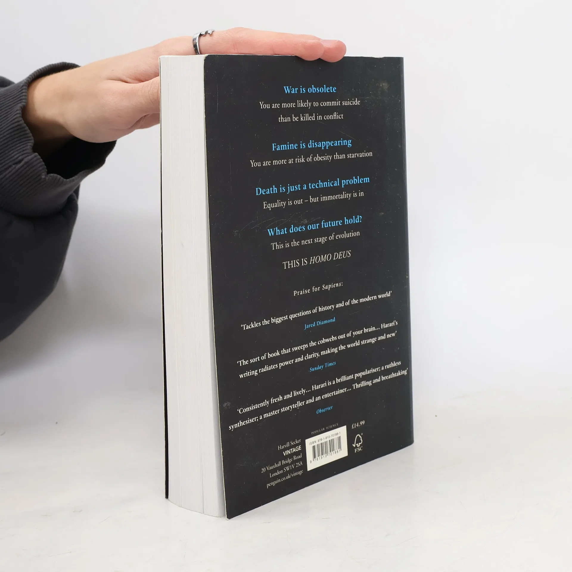 During the 20th century, humankind has managed to do the impossible: we have brought famine, plague and war under control. Today, more people die from obesity than from starvation; more people die from old age than from infectious diseases; and more people commit suicide than are killed in war. We are the only species in earth's long history that has single-handedly changed the entire planet, and we no longer expect any higher being to shape our destinies for us. As the self-made gods of planet earth, which projects should we undertake, and how will we protect this fragile planet and humankind itself from our own destructive powers? Yuval Noah Harari examines the implications of our newly acquired divine capabilities, from our desperate pursuit of happiness to our dogged quest for immortality