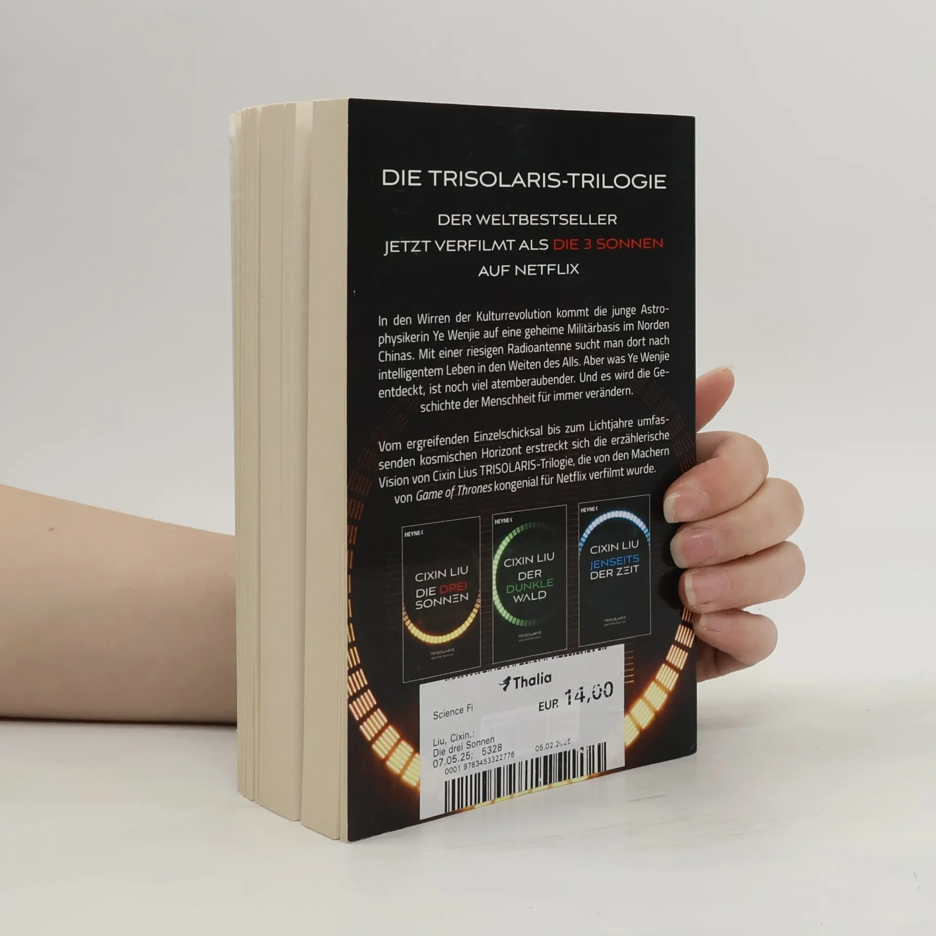 Der Roman zum Netflix-Blockbuster »Three-Body Problem« China, Ende der 1960er-Jahre: Während im ganzen Land die Kulturrevolution tobt, beginnt eine kleine Gruppe von Astrophysikern, Politkommissaren und Ingenieuren ein streng geheimes Forschungsprojekt. Ihre Aufgabe: Signale ins All zu senden und noch vor allen anderen Nationen Kontakt mit Außerirdischen aufzunehmen. Fünfzig Jahre später wird diese Vision Wirklichkeit – auf eine so erschreckende, umwälzende und globale Weise, dass dieser Kontakt das Schicksal der Menschheit für immer verändern wird.