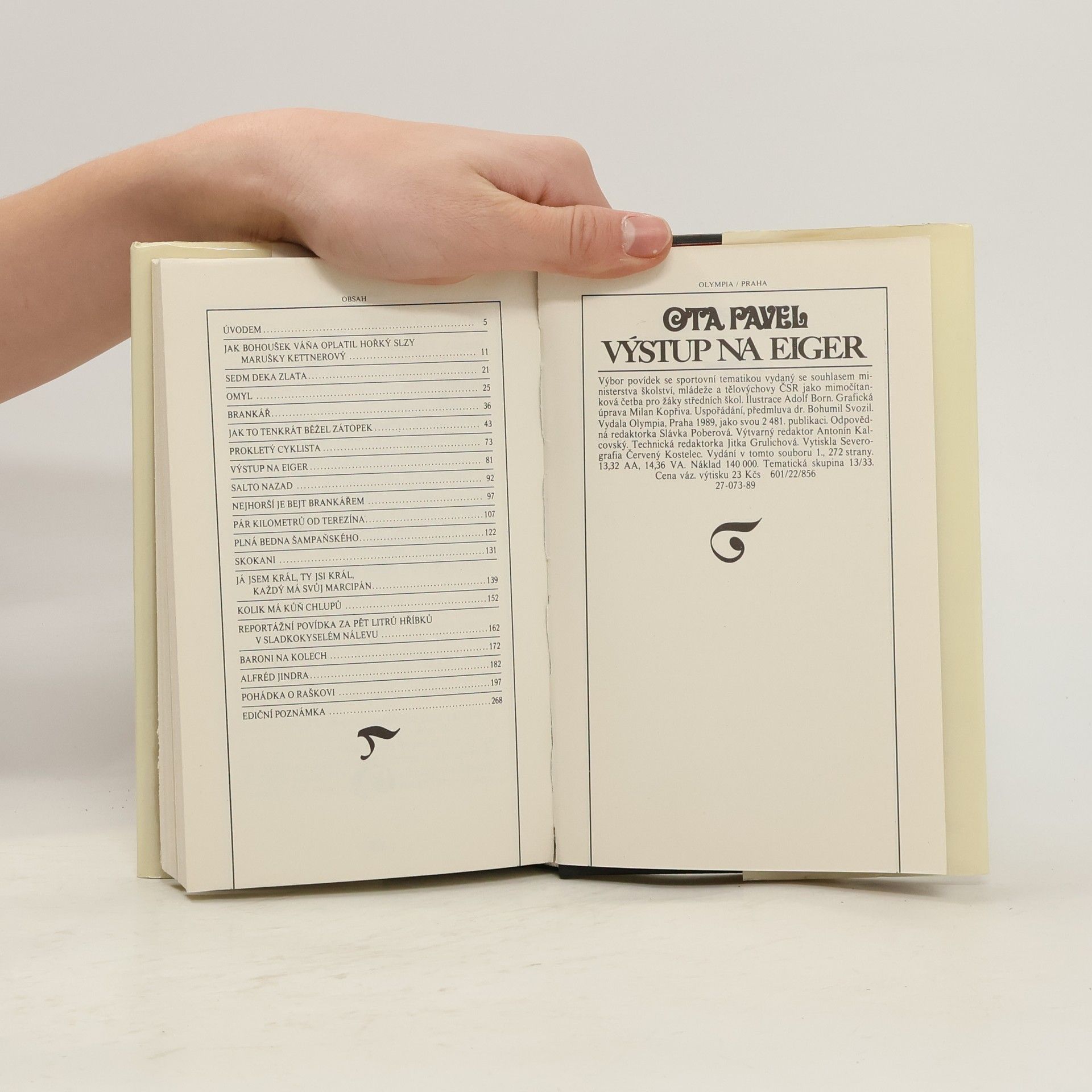 Výbor povídek se sportovní tématikou, určených pro mládež. Ota Pavel, bývalý sportovní žurnalista, v povídkách popisuje cestu sportovců za svým cílem, jejich příběh i pocity. Zdůrazňuje také jejich problémy, ať s nedostatkem talentu či špatného sociálního prostředí. Hrdiny jsou opravdoví sportovci z Čech, jejichž životní příběh spisovatel nepatrně dokresluje. Děj se většinou odehrává ve sportovním prostředí v různých zemích, ve 20. století. Výbor uspořádal a předmluvu napsal Bohumil Svozil.