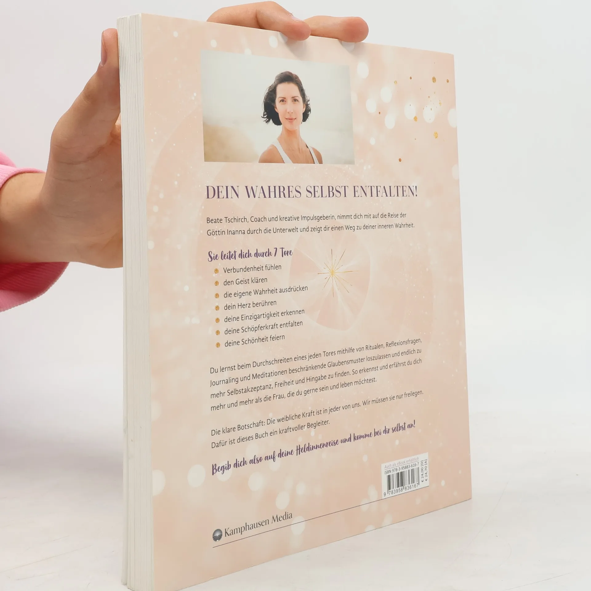 Freiheit, Stärke und Selbstakzeptanz: Setze deine weibliche Urkraft frei! Jede Frau kann eine Kraftquelle anzapfen, um ihr volles Potenzial zu leben. Glaubensmuster und Alltagshindernisse scheinen uns einzuengen, doch Beate Tschirch zeigt in ihrem Praxisbuch, wie du dich von diesen Fesseln befreien kannst. Authentisch leben, zu dir selbst finden und spirituelle Traditionen ins Hier und Jetzt übertragen – mit diesem Buch gelingt dir der Weg zum Female Empowerment! Begib dich auf deine Heldinnenreise und entdecke die göttliche Kraft in dir! Der Weg der Göttin umfasst persönliche Weiterentwicklung durch Meditationen und Übungen. Durchschreite die 7 Tore mit spirituellen Ritualen und kraftvollen Impulsen. Dieser Ratgeber zur Selbstfindung hilft dir, deine weibliche Urkraft freizusetzen. Schluss mit Kleinhalten und Zurückstecken – es ist Zeit für Women-Power! Schritt für Schritt zu deinem wahren Ich: So kommst du in deine Kraft! Sei wie die Göttin Inanna, die sich nicht versteckt und ihren eigenen Weg geht. Überwinde Unsicherheiten und schöpfe dein Potenzial aus. Tschirch, Yoga- und Meditationslehrerin sowie Trainerin für Female Empowerment, zeigt dir, wie du durch Rituale und Reflexionen das hinter dir lässt, was dich bremst. Lerne, spirituell zu leben und die Kraft deiner Weiblichkeit zu erkennen – setze deine innere Göttin frei!