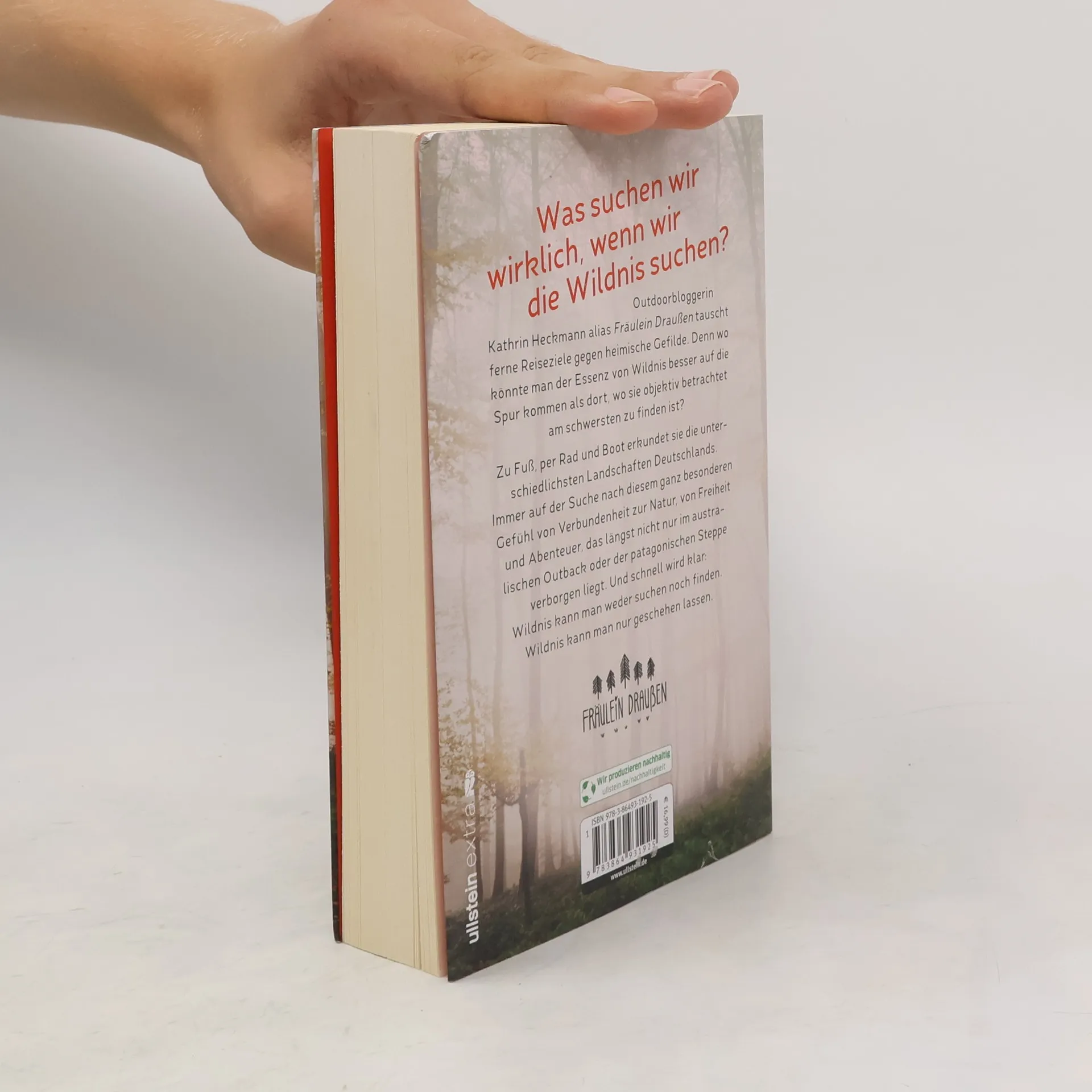 »Kathrin Heckmann ist es gelungen, abstrakte Vorstellungen von Wildnis durch persönliche und lebendige Schilderungen zu bereichern. Das macht Mut und inspiriert.« Thorsten Hoyer, Chefredakteur Wandermagazin Die Sehnsucht nach Wildnis zog Kathrin Heckmann alias Fräulein Draußen jahrelang raus in die Welt. Aber muss man wirklich weit reisen, um die Wildnis zu spüren? Um das herauszufinden, tauscht Kathrin ferne Reiseziele gegen heimische Gefilde. Denn wo könnte man der Essenz von Wildnis besser auf die Spur kommen als dort, wo sie objektiv betrachtet am schwersten zu finden ist? Zu Fuß, per Rad und Boot erkundet sie die unterschiedlichsten Landschaften Deutschlands. Immer auf der Suche nach diesem ganz besonderen Gefühl von Verbundenheit zur Natur, von Freiheit und Abenteuer, das längst nicht nur im australischen Outback oder der patagonischen Steppe verborgen liegt (auch wenn es dort vielleicht leichter zu entdecken ist). Und schnell wird klar: Wildnis kann man weder suchen noch finden. Wildnis kann man nur geschehen lassen.