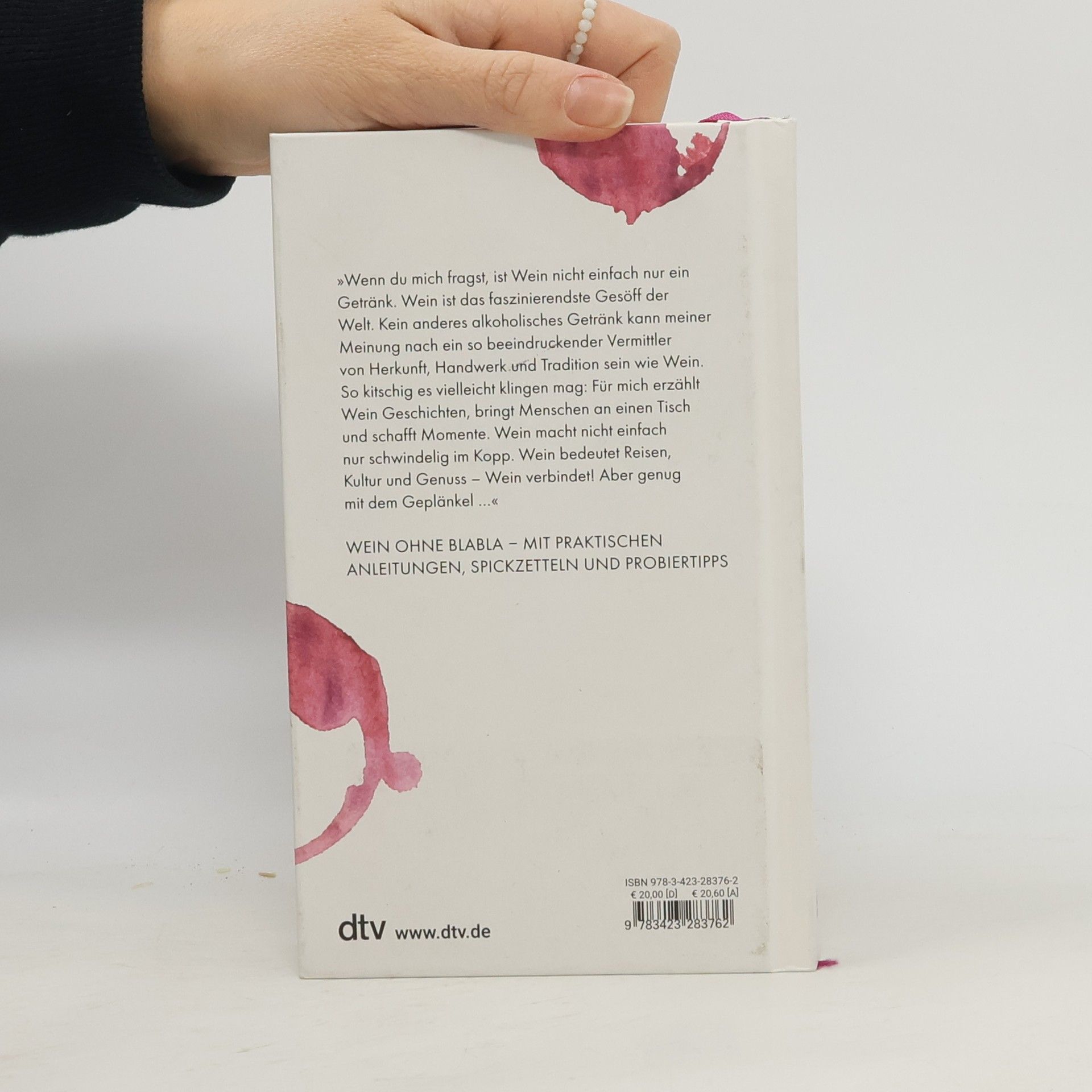 Deutscher Kochbuchpreis 2023 in der Kategorie »Die besten Bücher über Wein« »Wenn du mich fragst, ist Wein nicht einfach nur ein Getränk. Wein ist das faszinierendste Gesöff der Welt. Kein anderes alkoholisches Getränk kann meiner Meinung nach ein so beeindruckender Vermittler von Herkunft, Handwerk und Tradition sein wie Wein. So kitschig es vielleicht klingen mag: Für mich erzählt Wein Geschichten, bringt Menschen an einen Tisch und schafft Momente. Wein macht nicht einfach nur schwindelig im Kopp. Wein bedeutet Reisen, Kultur und Genuss – Wein verbindet! Aber genug mit dem Geplänkel …« Noch ein Buch über Wein? Ja, aber anders als bisher – intelligent, cool und zeitgemäß! Frisch, energisch und mit viel Spaß macht Lou reinen Tisch und zeigt jungen Weinfans, dass man sich vor Wein nicht fürchten muss. Fachlich avisiert führt die studierte Weinexpertin und Weinbloggerin Lou durch die Welt des Weins, nimmt sich dabei selbst nicht so ernst und gibt locker und schwungvoll Anekdoten und Weinwissen zum Besten: Von B wie Bubbles über N wie Naturwein und T wie Tannine. Geballtes Weinwissen eben, aber ohne Blabla! Denn am Ende des Tages soll Wein Spaß machen und Menschen an einen Tisch bringen. Wein ohne Blabla – mit praktischen Anleitungen, Spickzetteln und Probiertipps