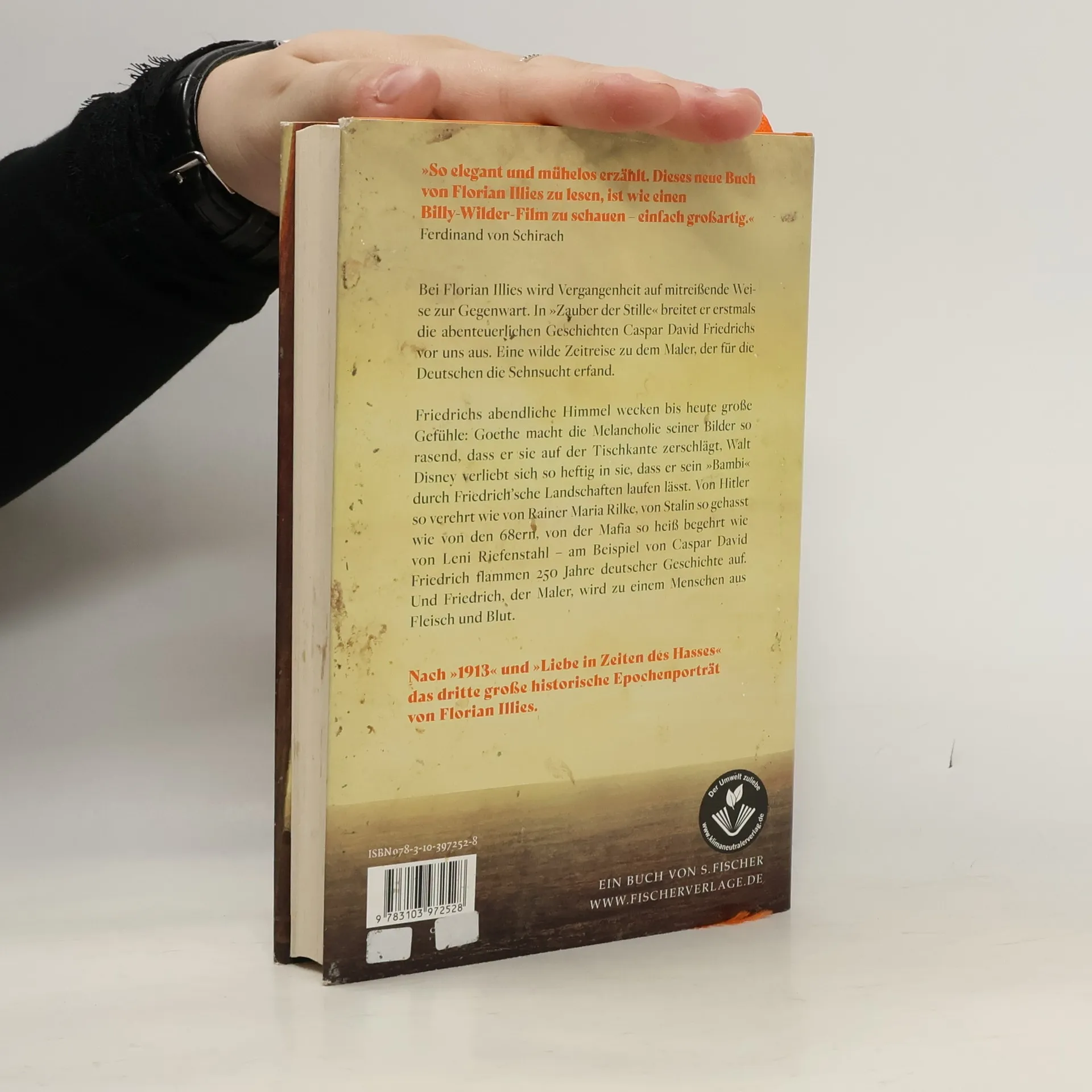 »So elegant und mühelos erzählt. Dieses neue Buch von Florian Illies zu lesen, ist wie einen Billy-Wilder-Film zu schauen – einfach großartig.« Ferdinand von Schirach Mit Florian Illies kann man Vergangenheit plötzlich als Gegenwart erleben. In »Zauber der Stille« breitet er erstmals die abenteuerlichen Geschichten Caspar David Friedrichs vor uns aus. Eine wilde Zeitreise zu dem Mann, der für die Deutschen die Sehnsucht erfand. Friedrichs abendliche Himmel wecken seit Jahrhunderten die leidenschaftlichsten Gefühle: Goethe macht ihre Melancholie so rasend, dass er sie auf der Tischkante zerschlagen will, Walt Disney hingegen verliebt sich so heftig in sie, dass er sein »Bambi« nur durch Friedrich'sche Landschaften laufen lässt. Von Hitler so verehrt wie von Rainer Maria Rilke, von Stalin so gehasst wie von den 68ern, von der Mafia so heiß begehrt wie von Leni Riefenstahl – am Beispiel von Caspar David Friedrich werden in diesem mitreißend erzählten Buch 250 Jahre deutscher Geschichte sichtbar. Und Friedrich, der Maler, wird zu einem Menschen aus Fleisch und Blut. Nach »1913« und »Liebe in Zeiten des Hasses« das dritte große historische Epochenportrait von Florian Illies.
