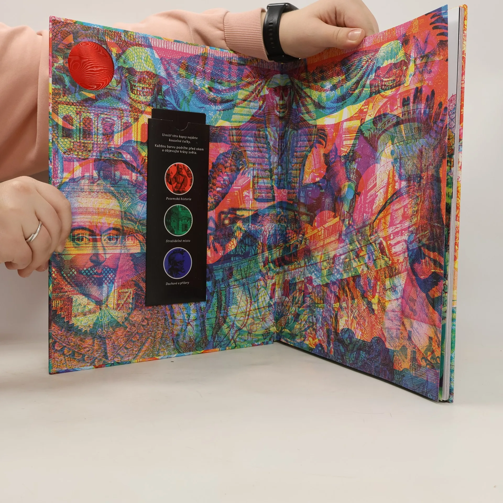 Objevte nejslavnější strašidelná místa na světě pomocí kouzelných trojbarevných čoček. Zelená vám pomůže prohlédnout si světoznámá místa jako Drákulův hrad nebo londýnský Tower, červená vám přiblíží jejich historii. A pokud máte dost odvahy, sáhněte po modré čočce a spatříte duchy a strašidla, která se objevují se západem slunce!
