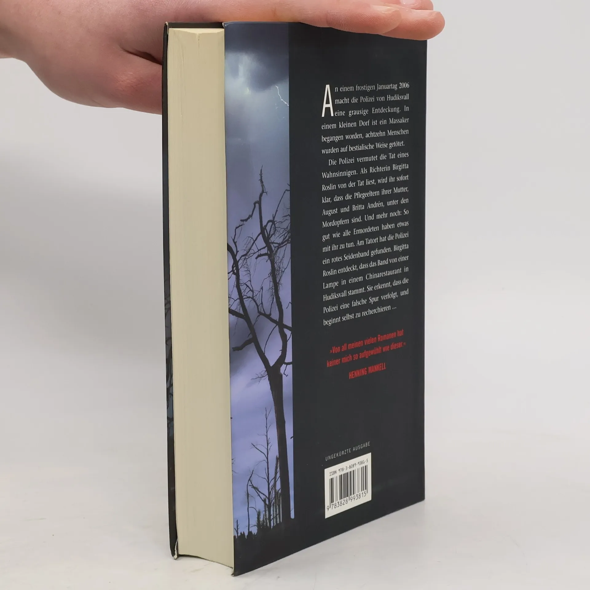 Ein grausiges Massaker An einem frostigen Januartag 2006 macht die Polizei von Hudiksvall eine entsetzliche Entdeckung. In einem kleinen Dorf sind neunzehn Menschen auf bestialische Weise ermordet worden. Die Polizei vermutet dahinter die Tat eines Wahnsinnigen. Als Richterin Birgitta Roslin in der Zeitung von der Tat liest, ist ihr sofort klar, dass die Pflegeeltern ihrer Mutter unter den Mordopfern sind. Mehr noch: Sie erkennt, dass die Polizei eine falsche Spur verfolgt, und beginnt selbst zu recherchieren. Ein Hinweis führt nach China, wo Birgitta auf grausame Machenschaften der politischen Führungselite stößt.