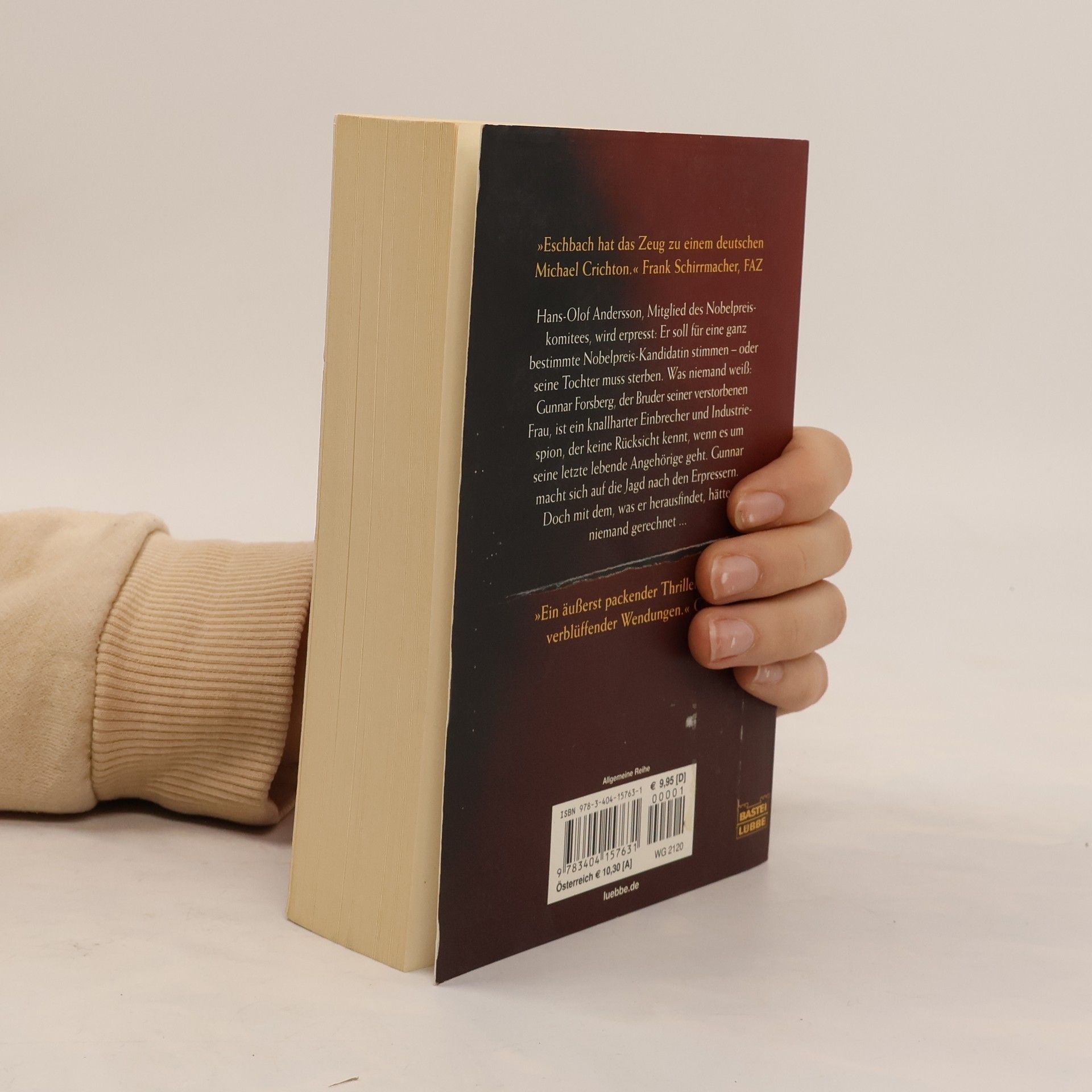 Hans-Olof Andersson, Mitglied des Nobelpreiskomitees, wird erpresst: Er soll für eine ganz bestimmte Nobelpreis-Kandidatin stimmen - oder seine Tochter muss sterben. Was niemand weiß: Gunnar Forsberg, der Bruder seiner verstorbenen Frau, ist ein knallharter Einbrecher und Industriespion, der keine Rücksicht kennt, wenn es um seine letzte lebende Angehörige geht. Gunnar macht sich auf die Jagd nach den Erpressern. Doch mit dem, was er herausfindet, hätte niemand gerechnet ... Der Nobelpreis - spannende Thriller-Unterhaltung von Bestsellerautor Andreas Eschbach!