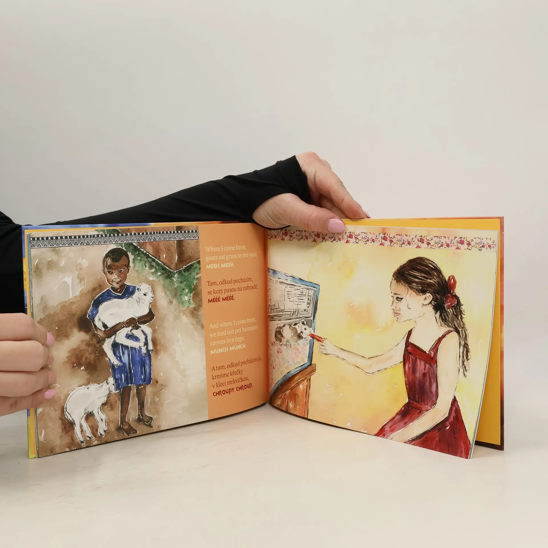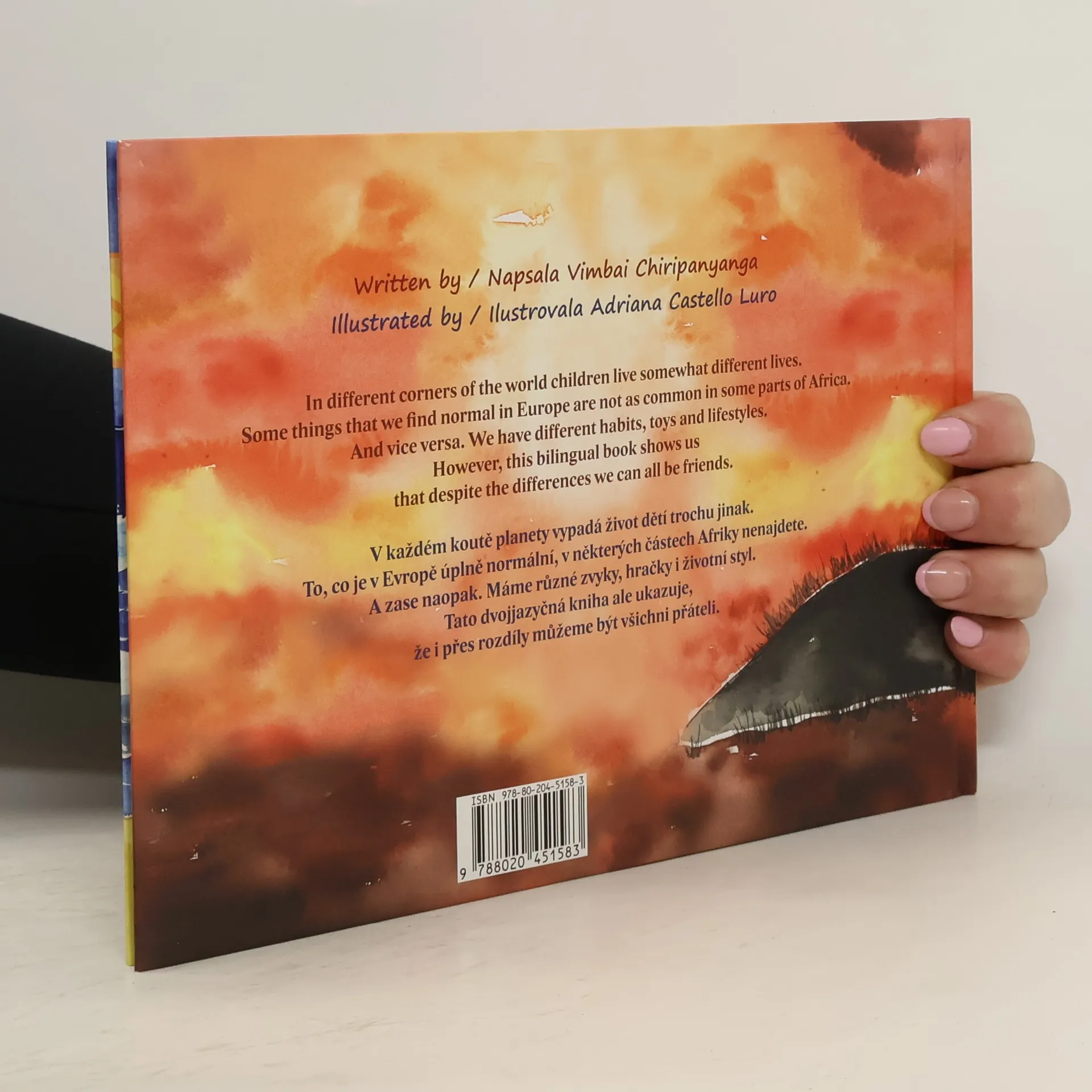 Dvojjazyčná kniha pro děti od 3 let. V každém koutě planety vypadá život dětí trochu jinak. To, co u nás považujeme za úplně normální, například v Africe nenajdete. A zase naopak. Máme různé zvyky, hračky i životní styl. Zajímavě ilustrovaná dvojjazyčná kniha ale dokazuje, že i přes rozdíly můžeme být vlastně všichni přáteli. Autorka i ilustrátorka pracují jako učitelky v anglické škole.