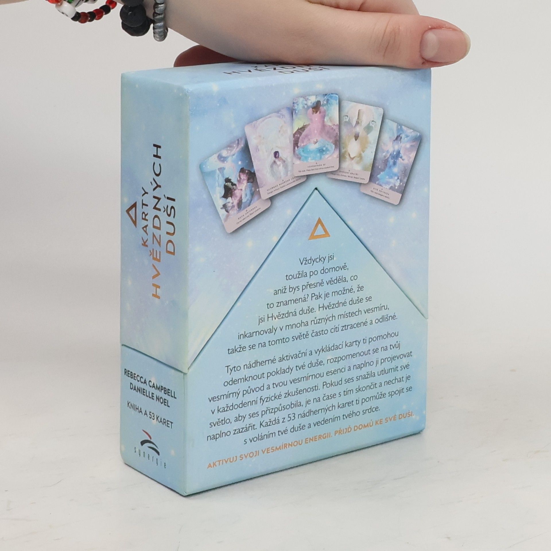 AKTIVUJ SVOJI VESMÍRNOU ENERGII. PŘIJĎ DOMŮ KE SVÉ DUŠI. Vždycky jsi toužila po domově, aniž bys přesně věděla, co to znamená? Pak je možné, že jsi Hvězdná duše. Hvězdné duše se inkarnovaly v mnoha různých místech vesmíru, takže se na tomto světě často cítí ztracené a odlišné. Tyto nádherné aktivační a vykládací karty ti pomohou odemknout poklady tvé duše, rozpomenout se na tvůj vesmírný původ a tvou vesmírnou esenci a naplno ji projevovat v každodenní fyzické zkušenosti. Pokud ses snažila utlumit své světlo, aby ses přizpůsobila, je na čase s tím skončit a nechat je naplno zazářit. Každá z 53 nádherných karet ti pomůže spojit se s voláním tvé duše a vedením tvého srdce.