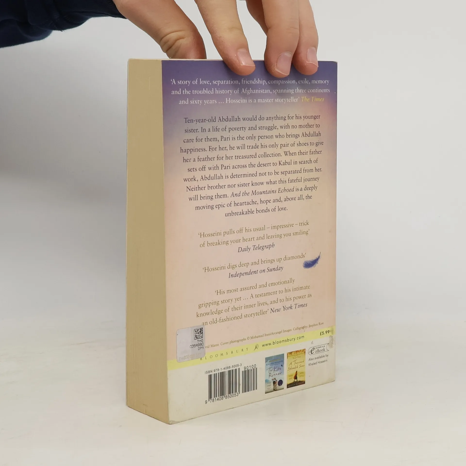 So, then. You want a story and I will tell you one... Afghanistan, 1952. Abdullah and his sister Pari live in the small village of Shadbagh. To Abdullah, Pari, as beautiful and sweet-natured as the fairy for which she was named, is everything. More like a parent than a brother, Abdullah will do anything for her, even trading his only pair of shoes for a feather for her treasured collection. Each night they sleep together in their cot, their skulls touching, their limbs tangled. One day the siblings journey across the desert to Kabul with their father. Pari and Abdullah have no sense of the fate that awaits them there, for the event which unfolds will tear their lives apart; sometimes a finger must be cut to save the hand. Crossing generations and continents, moving from Kabul, to Paris, to San Francisco, to the Greek island of Tinos, Khaled Hosseini writes about the bonds that define us and shape our lives, and how the choices we make resonate through history.