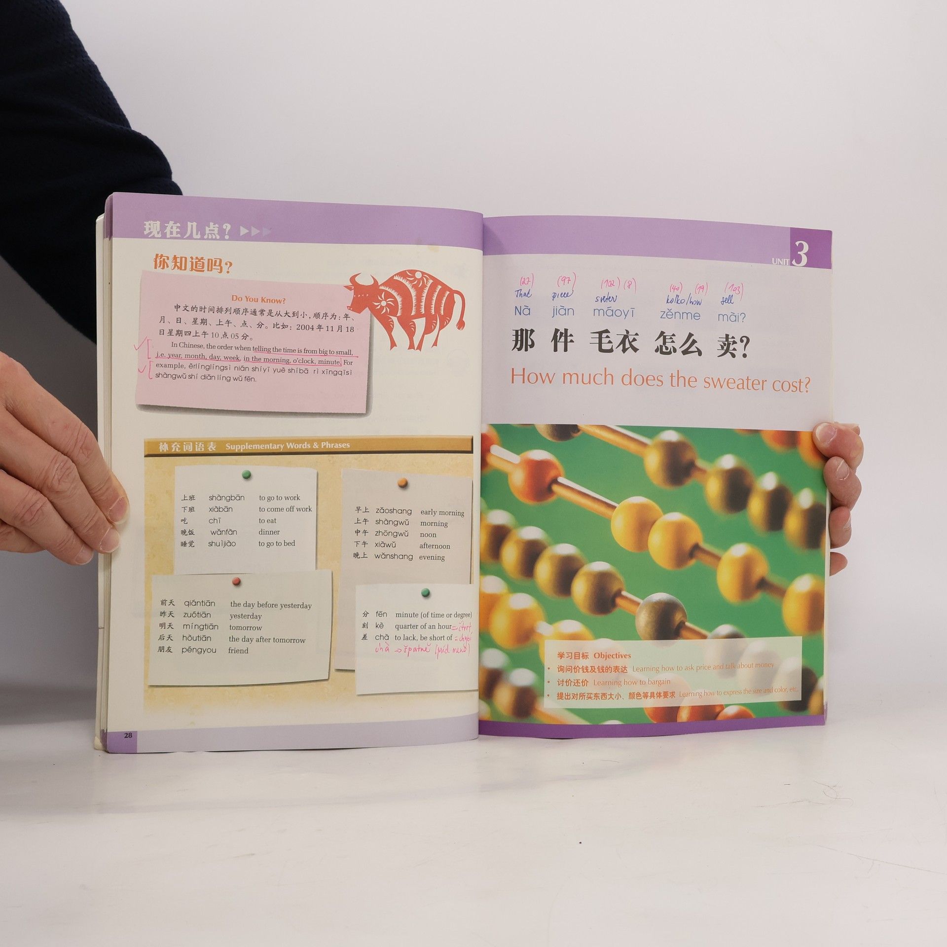 Experiencing Living in China is a language book especially written for foreign beginners of the Chinese language. It is suitable for adults who want a short course for learning Chinese. It provides material suitable both for short-term classes and for one-on-one teaching. The book incorporates the concept of learning-through-experience and functional language learning. It is designed to meet the basic requirements for daily social communication, and focuses on the training and listening and speaking skills. The book consists of one Pronunciation cap, and 12 units, totaling 40-50 teaching hours. Lesson 1: Hello; Lesson 2: What time is it now; Lesson 3: How much does the sweater cost; Lesson 4: I'd like a fried diced chicken with peanuts; Lesson 5: What do you do; Lesson 6: Is Jenny in; Lesson 7: Go straight ahead; Lesson 8: Where is your new house; Lesson 9: What's the matter with you; Lesson 10: Can you repair a Lesson 11: It's too cold; Lesson 12: Please clean the table.