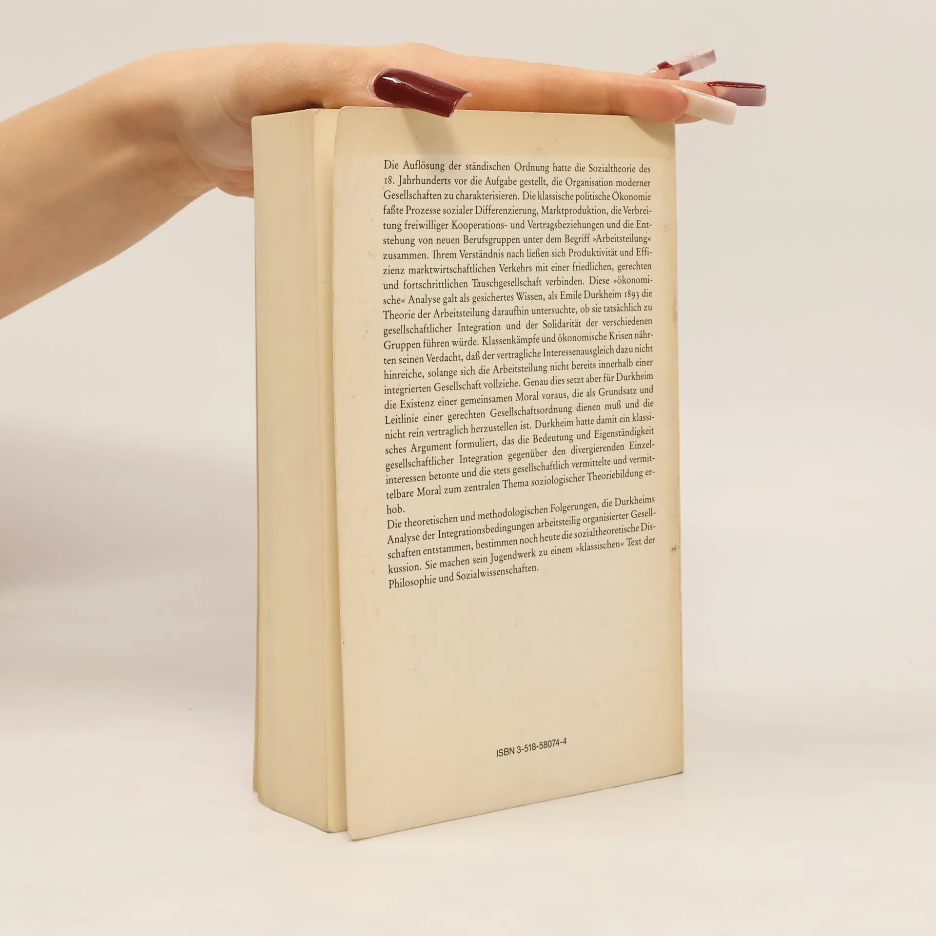 Enth.: Ueber soziale Arbeitsteilung / E. Durkheim. Arbeitsteilung und Moral / Niklas Luhmann. Arbeitsteilung, Solidarität und Moral / Hans-Peter Müller und Michael Schmid.