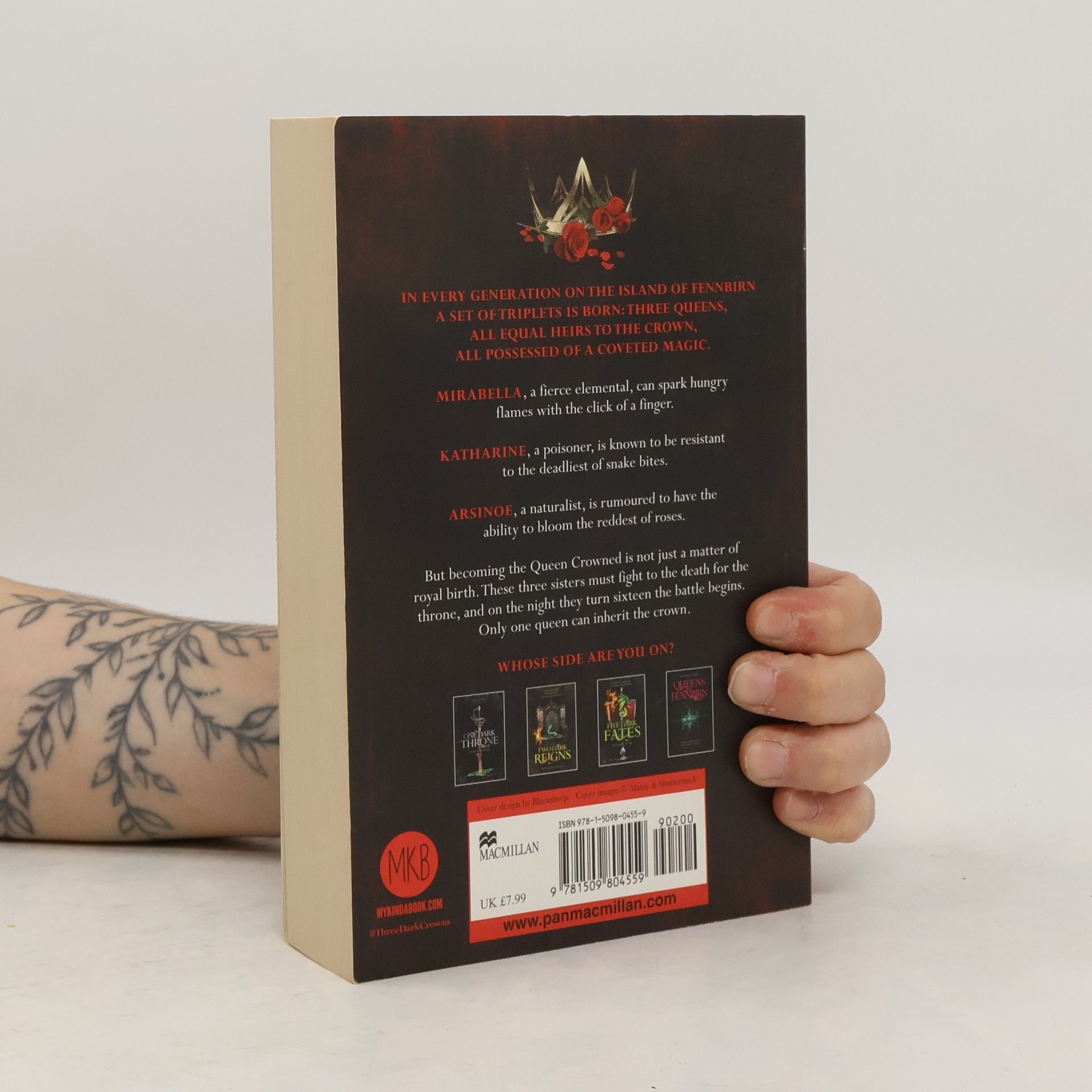 THREE SISTERS. ONE THRONE. A FIGHT TO THE DEATH."Gorgeous and bloody, tender and violent, elegant, precise, and passionate; above all, completely addicting." Kirkus"... a superb start to what promises to be a new exciting young adult fantasy book series." The Book BagIn every generation on the island of Fennbirn, a set of triplets is born: three queens, all equal heirs to the crown and each possessor of a coveted magic. Mirabella is a fierce elemental, able to spark hungry flames or vicious storms at the snap of her fingers. Katharine is a poisoner, one who can ingest the deadliest poisons without so much as a stomach ache. Arsinoe, a naturalist, is said to have the ability to bloom the reddest rose and control the fiercest of beasts.But becoming the Queen Crowned isn't solely a matter of royal birth. Each sister has to fight for it. And it's not just a game of win or lose... it's life or death. The night the sisters turn sixteen, the battle begins.The last queen standing gets the crown.