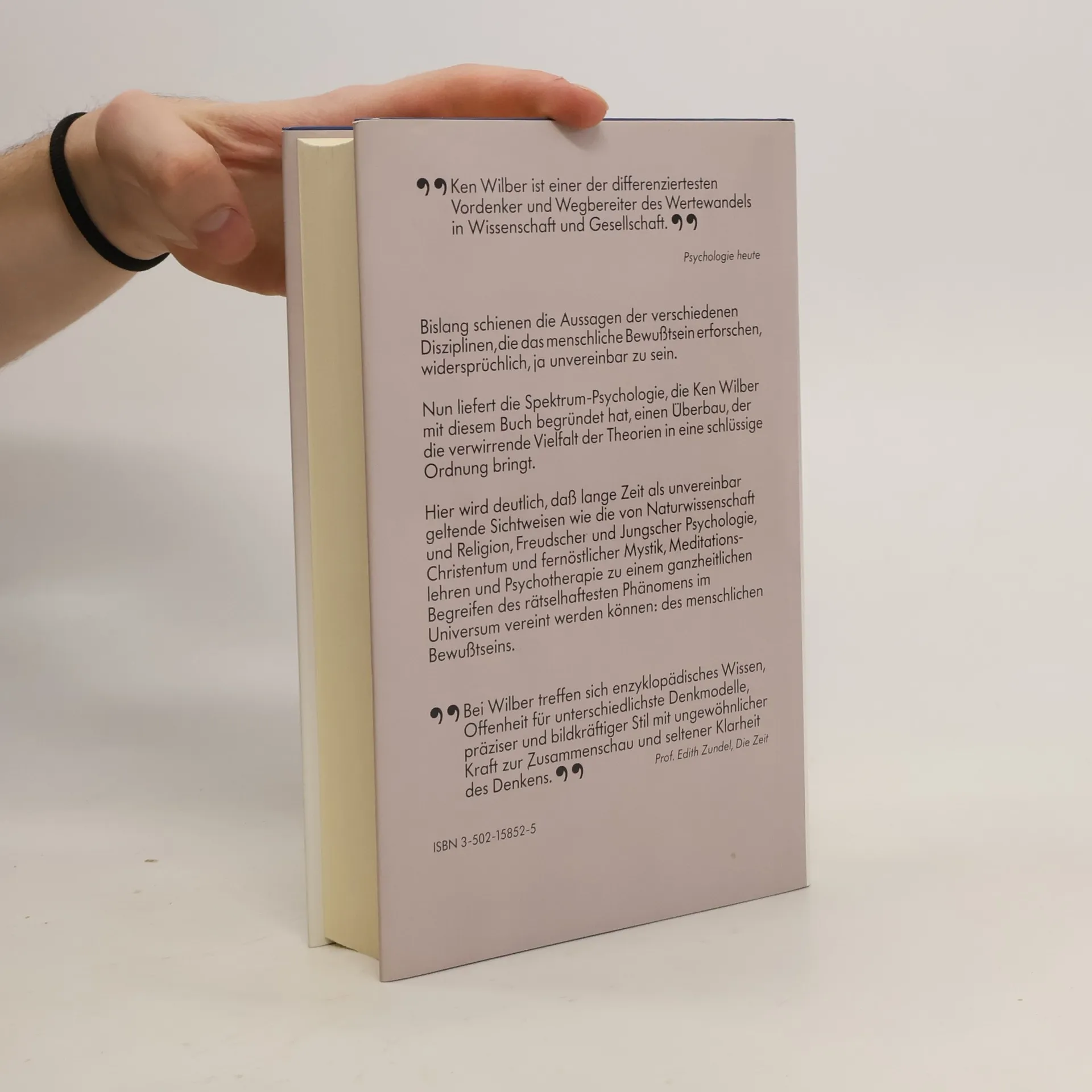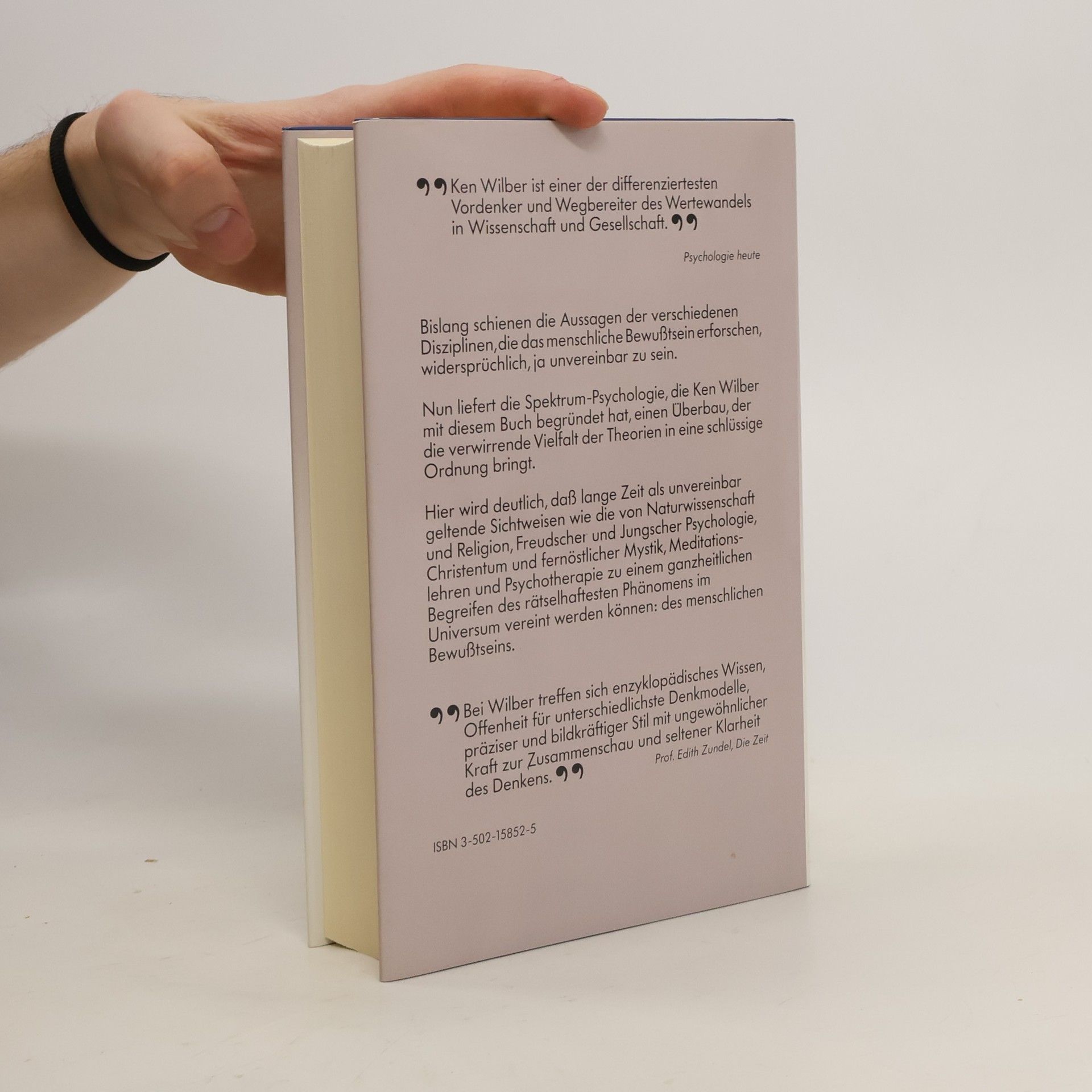 Bislang schienen die verschiedenen geisteswissenschaftlichen Disziplinen - von der Psychologie über die Bewußtseinsforschung bis hin zu den Traditionen mystischer Erfahrung und den meditativen Schulungswegen - unvereinbar zu sein. Dieses Dilemma löst Wilber mit seinem Spektrum-Modell. Er liefert ein interdisziplinäres Modell, das die verwirrende Vielfalt der Theorien in eine schlüssige Ordnung bringt. Er zeigt, daß ALLE geisteswissenschaftlichen Schulen recht haben. aber jede nur in einem Teilbereich.