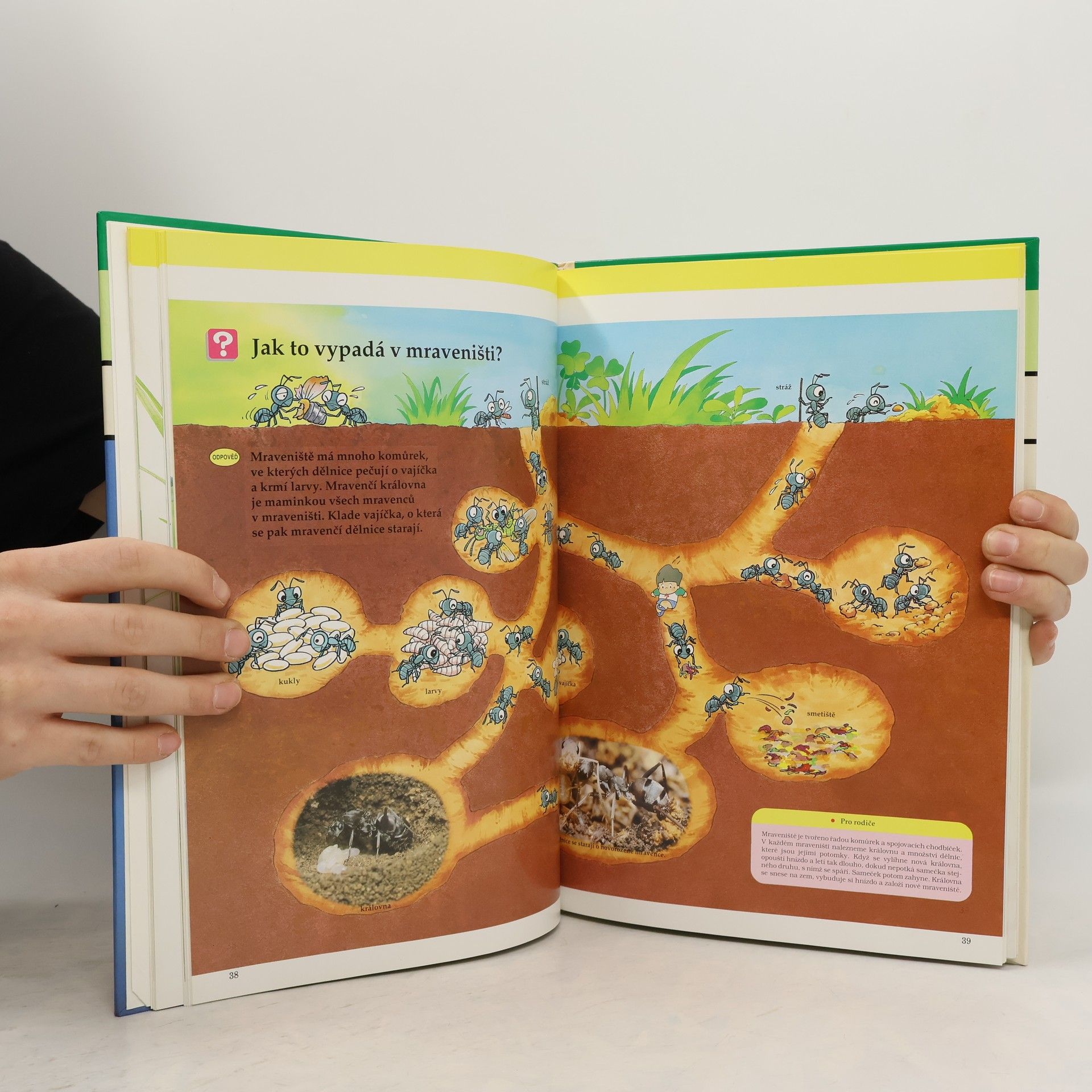Mají cvrčci uši? Proč moucha sedí na stropě a nespadne? Proč má hlemýžď na zádech domeček? Co jedí žížaly? Také vám děti kladou takové otázky? Odpovědi na ně a na mnoho dalších najdete a stránkách této knihy.