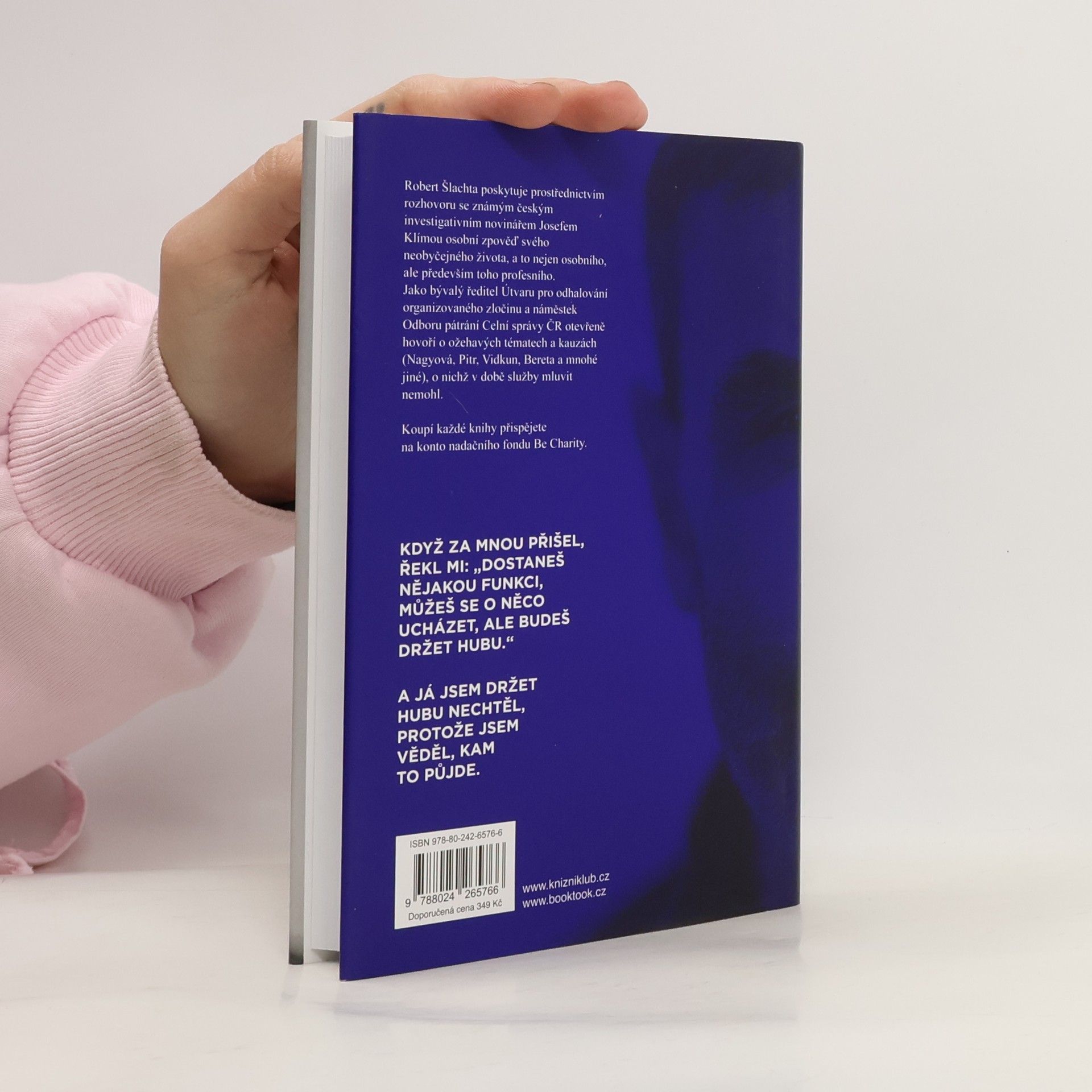 Robert Šlachta poskytuje prostřednictvím rozhovoru se známým českým investigativním novinářem Josefem Klímou osobní zpověď svého neobyčejného života, a to nejen osobního, ale především toho profesního. Jako bývalý ředitel Útvaru pro odhalování organizovaného zločinu a náměstek Odboru pátrání Celní správy ČR otevřeně hovoří o ožehavých tématech a kauzách (Nagyová, Pitr, Vidkun, Bereta a mnohé jiné), o nichž v době služby mluvit nemohl. Koupí každé knihy přispějete 50 Kč na konto nadačního fondu Be Charity.