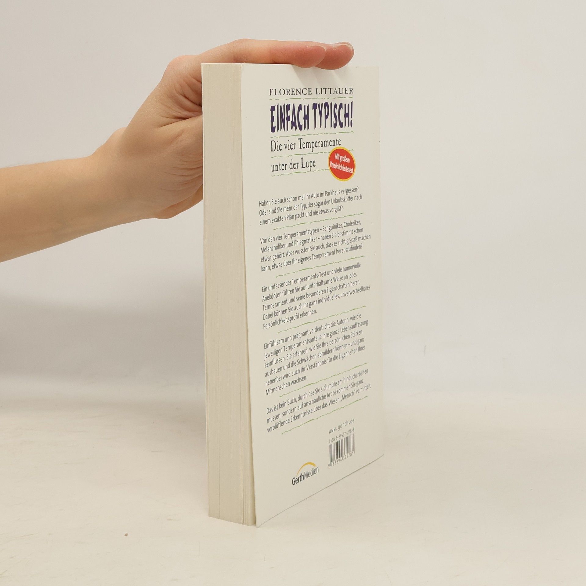 Haben Sie auch schon mal Ihr Auto im Parkhaus vergessen? Oder sind Sie mehr der Typ, der sogar den Urlaubskoffer nach einem exakten Plan packt und nie etwas vergisst? Von den vier Temperamentstypen - Sanguiniker, Choleriker, Melancholiker und Phlegmatiker - haben Sie bestimmt schon etwas gehört. Aber wussten Sie auch, dass es richtig Spaß machen kann, etwas über Ihr eigenes Temperament herauszufinden? Ein umfassender Temperaments-Test und viele humorvolle Anekdoten führen Sie auf unterhaltsame Weise an jedes Temperament und seine besonderen Eigenschaften heran. Dabei können Sie auch Ihr ganz individuelles, unverwechselbares Persönlichkeitsprofil erkennen. Einfühlsam und prägnant verdeutlicht die Autorin, wie die jeweiligen Temperamentsanteile Ihre ganze Lebensauffassung beeinflussen. Sie erfahren, wie Sie Ihre persönlichen Stärken ausbauen und die Schwächen abmildern können - und ganz nebenbei wird auch Ihr Verständnis für die Eigenheiten Ihrer Mitmenschen wachsen. Dies ist kein Buch, durch das Sie sich mühsam hindurcharbeiten müssen, sondern auf anschauliche Art und Weise bekommen Sie ganz verblüffende Erkenntnisse über das Wesen „Mensch“ vermittelt.